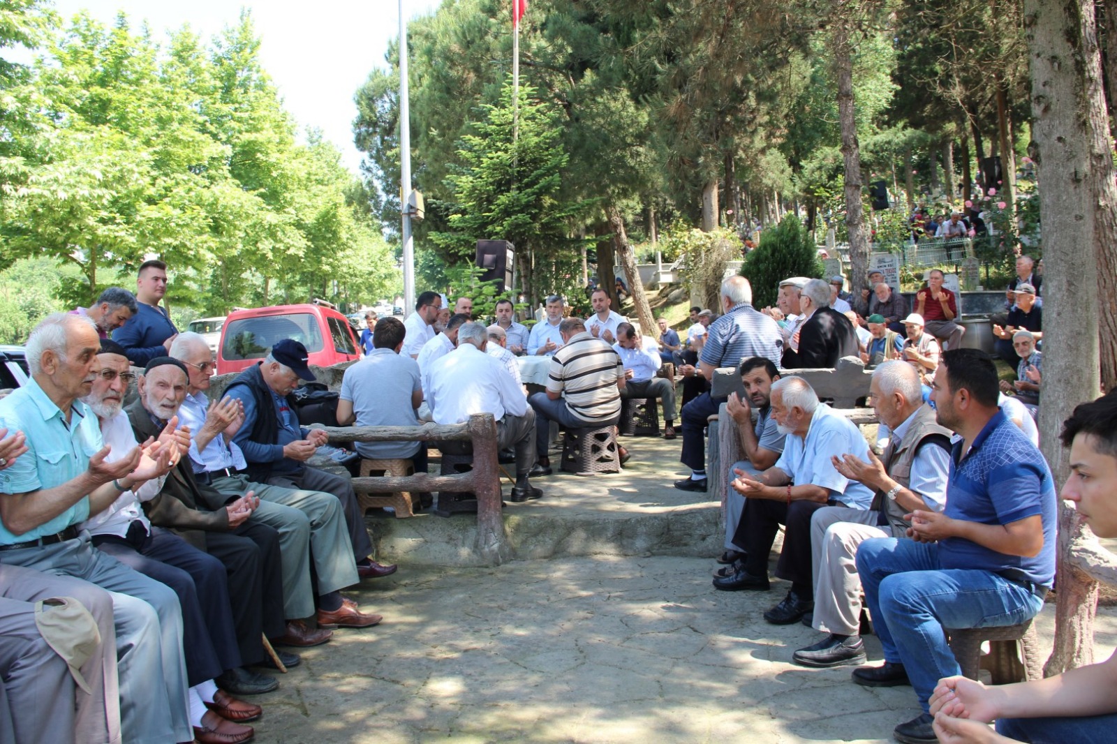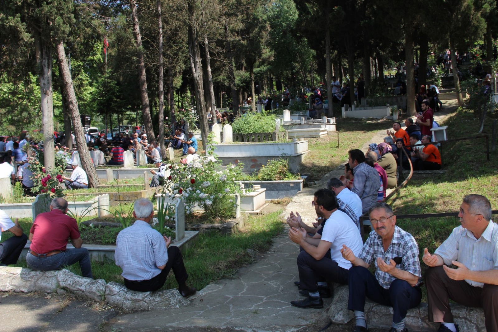Kabir ziyareti yapan vatandaşlar bu ziyaretlerini toplu okunan Kuran-ı Kerim ve dua eşliğinde gerçekleştirdiler. Huşu içerisinde dinlenen Kuran-ı Kerim tilavetinin ardından hep birlikte dua edildi. Mezarları başlarında toplu duaya katılan vatandaşlar diğer yandan kabirlerini düzenleyerek çiçek diktiler. Belediye ekipleri de ziyaretçilere yardımcı oldular.