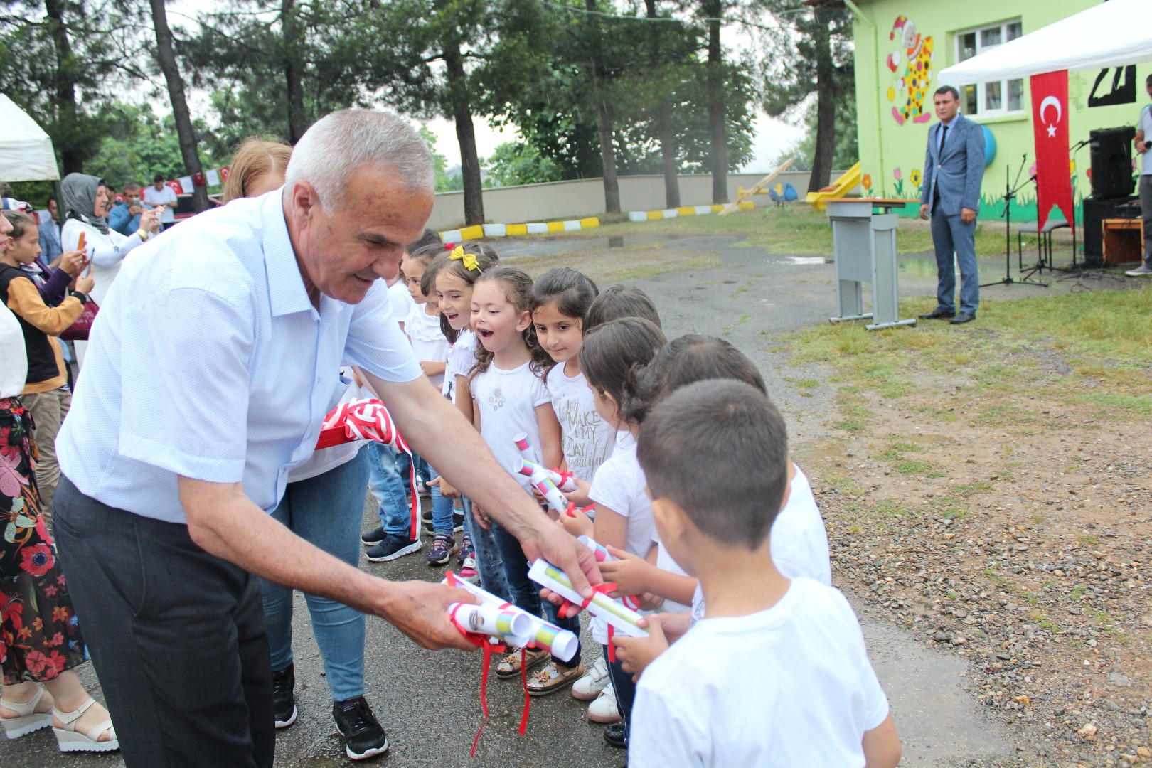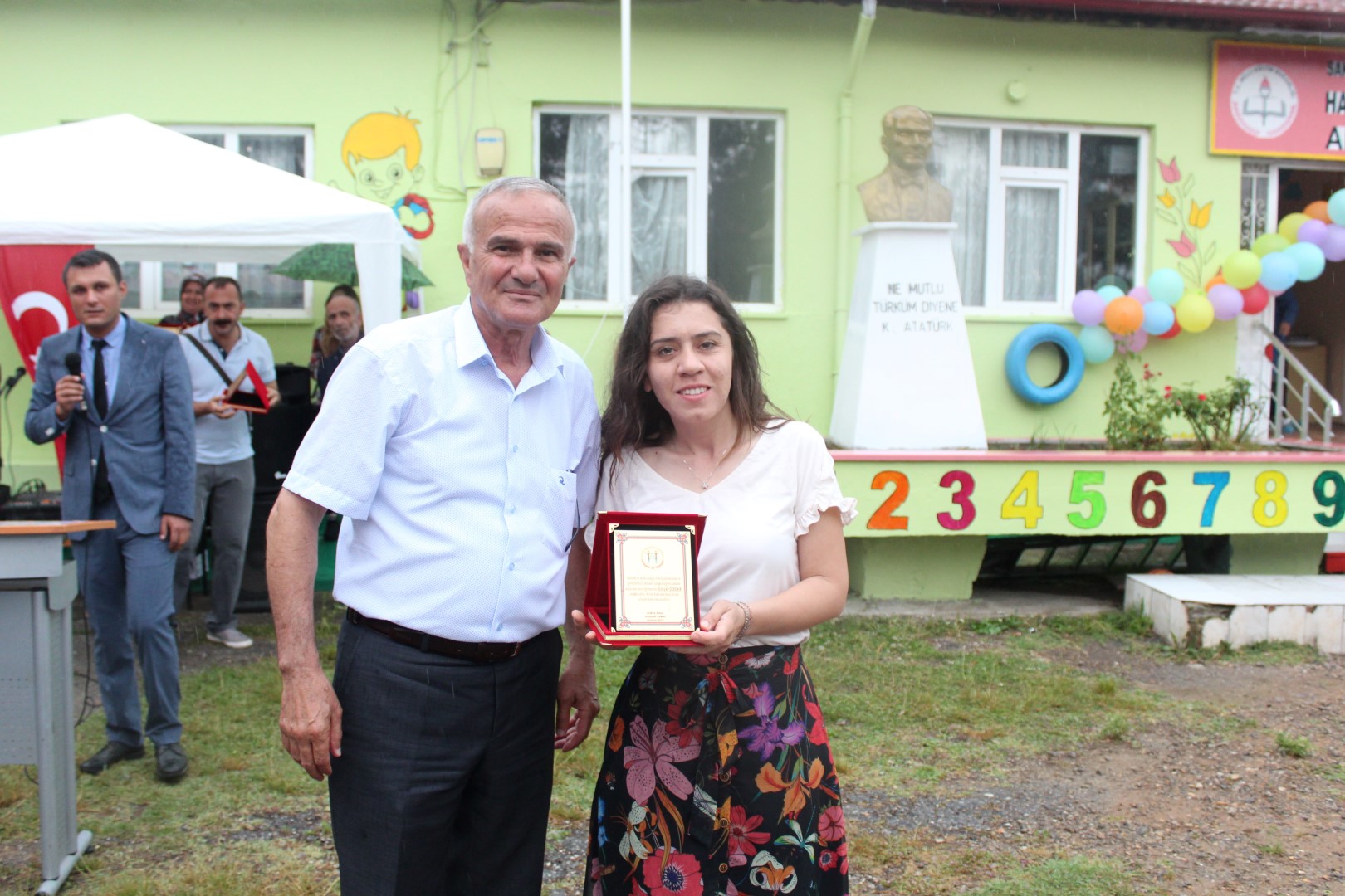 Programın son kısmında ise sırasıyla; okul öncesi eğitim alan öğrencilere katılım belgeleri ve madalya takdim edildi. Yine eğitim-öğretim yılı boyunca hiçbir fedakarlıktan kaçınmayarak öğrencilerin gelişimine katkı sağlayan, okulun ihtiyaçları için koşuşturan öğretmenlere, stajyer öğretmenlere ve emeği geçenlere plaketleri verildi. Son olarak ise protokol tarafından kurdelesi kesilen kermesin açılışı yapıldı.