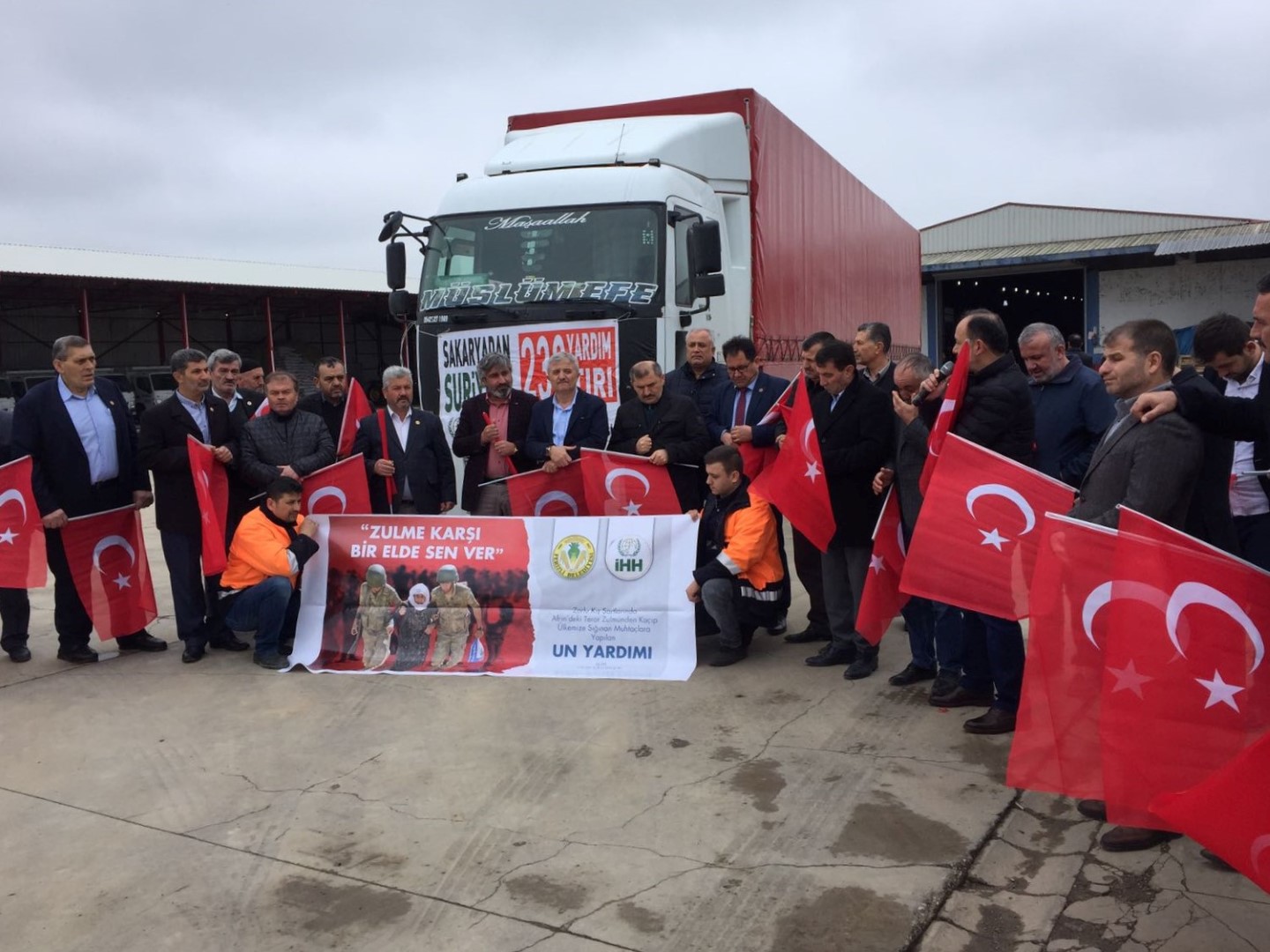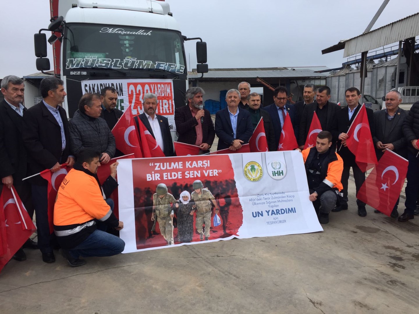 Hocalar tarafından yapılan duaların ardından, Ferizli halkının katkılarıyla toplanan 1 tır un daha Suriye'ye gönderilmek üzere yola çıktı.
