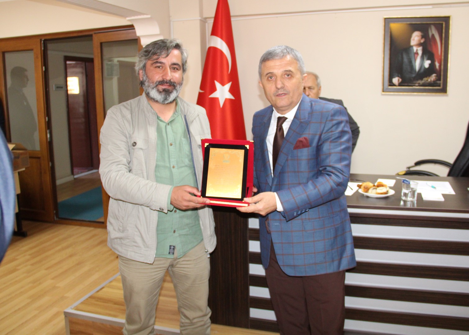 Ardından Sebahattin Aydın, meclis üyelerine teşekkür belgelerini takdim etti. Ayrıca bölgeyi yerinde inceleyerek yardım başlatma kararı alan Belediye Başkanı Ahmet Soğuk’a bir plaket takdim etti. Belediye Başkanı Ahmet Soğuk ise yaptığı güzel çalışmalardan dolayı Sebahattin Aydın’a teşekkür ederek kendilerine bir plaket takdim etti. Plaket takdiminin ardından Aydın salondan ayrıldı.
