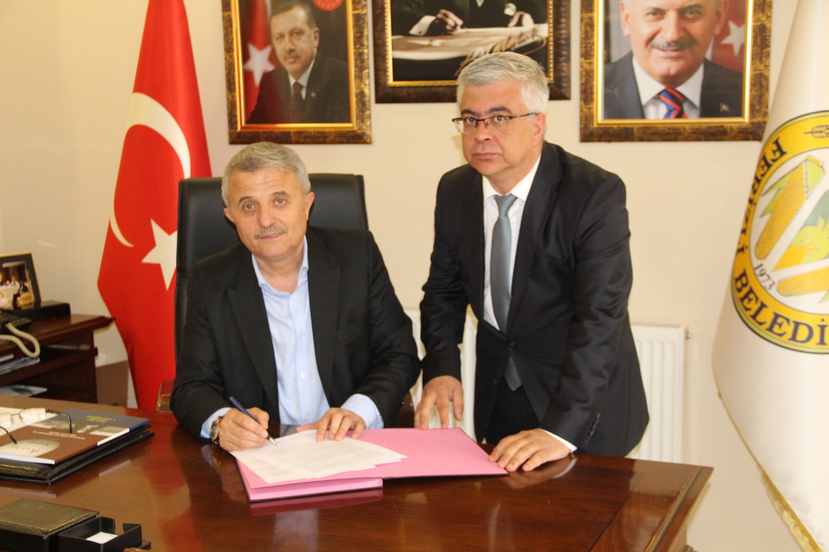 Sosyal Güvenlik Kurumu İl Müdürlüğü Yetkilileri belediyeye geldiler. Başkan Soğuk ile birlikte SGK için hazırlanan yerin protokolünü imzaladılar.