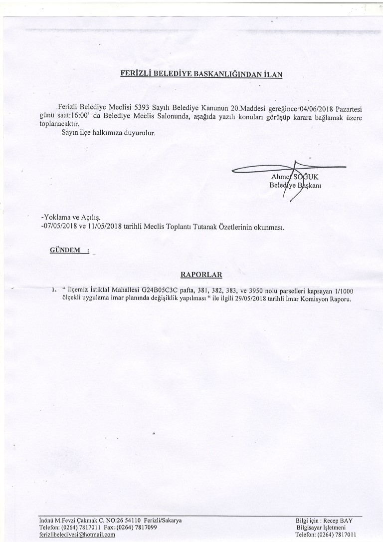 Ferizli Belediyesi Haziran Ayı Meclis Gündemi (04 Haziran 2018 Pazartesi) Foto Galeri için tıklayın...