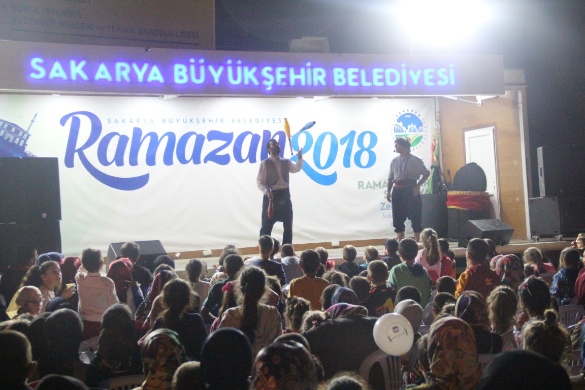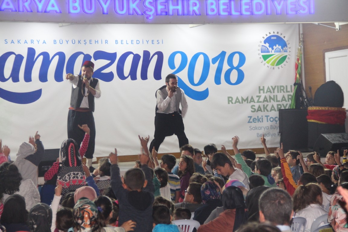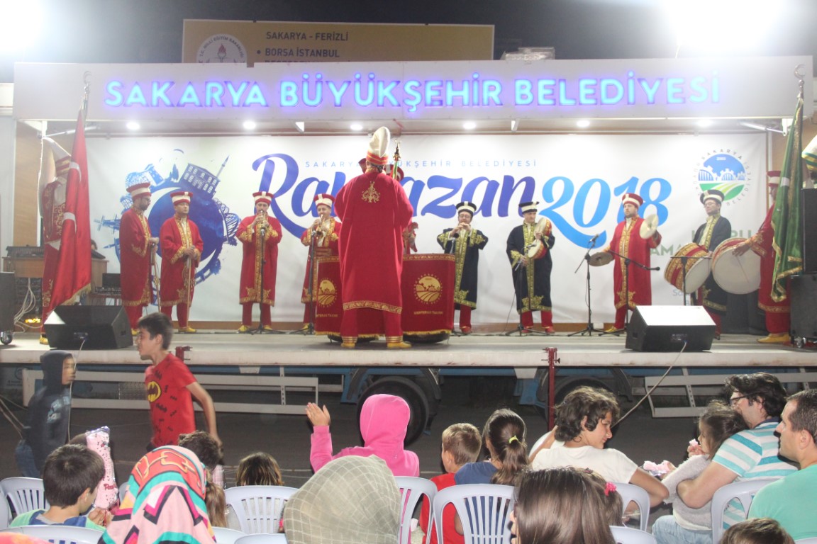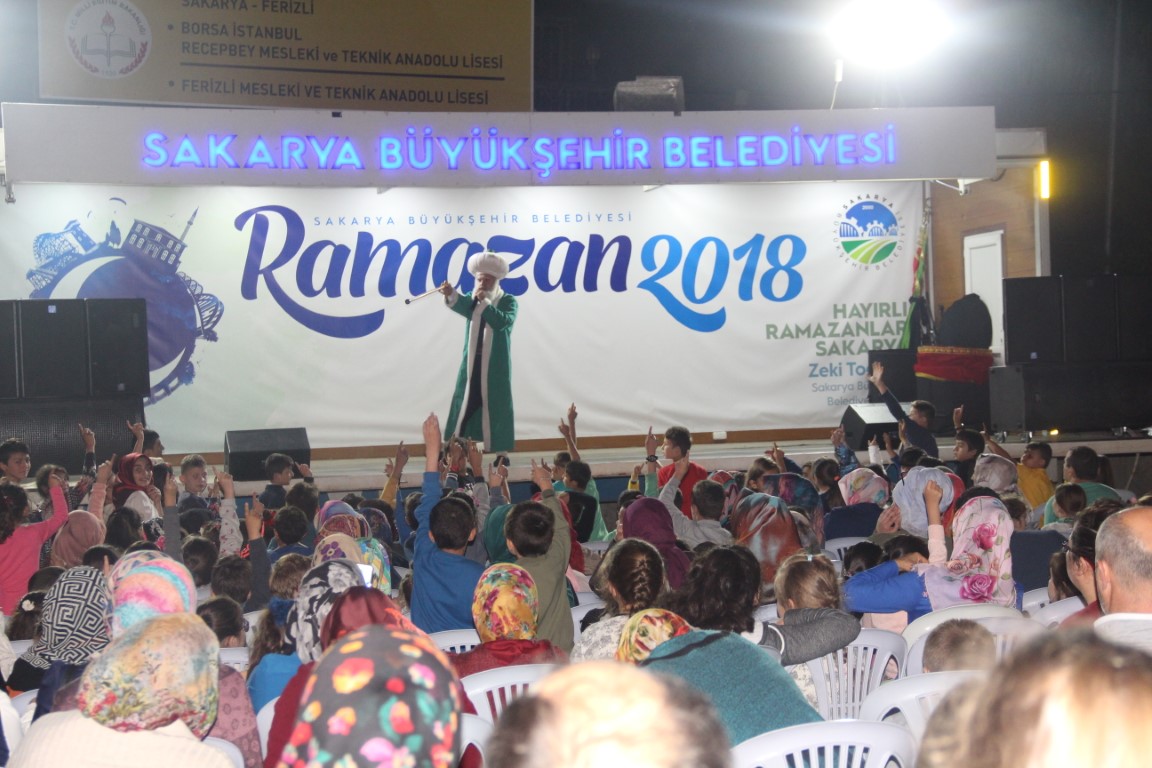 İlçeleri gezen ve Ramazan coşkusuna ortak olan mobil sahne Ferizli’de Pazar yerine kuruldu. Program saat 21.00’de Mehteran gösterisi ile başladı. Halkı coşturan Büyükşehir Mehteran takımı uzun uzun alkışlandı. Çocuklara yönelik eğlencelerin sergilendiği ramazan 2018 etkinliklerine gelen çocuklar; aileleri ve yakınlarıyla beraber keyifli ve güzel bir gece yaşadılar. Hacivat’la Karagöz, Nasreddin Hoca, Tuzsuz Deli Bekir ve keloğlan oyunları ile coşan ve eğlencenin doyumsuz tadını alan çocuklar, adeta gece bitmesin diye dua ettiler. Ayrıca bu güzel gecede çocuklara yönelik eğlenceli yarışmalar yapılarak hediyelerde verildi.