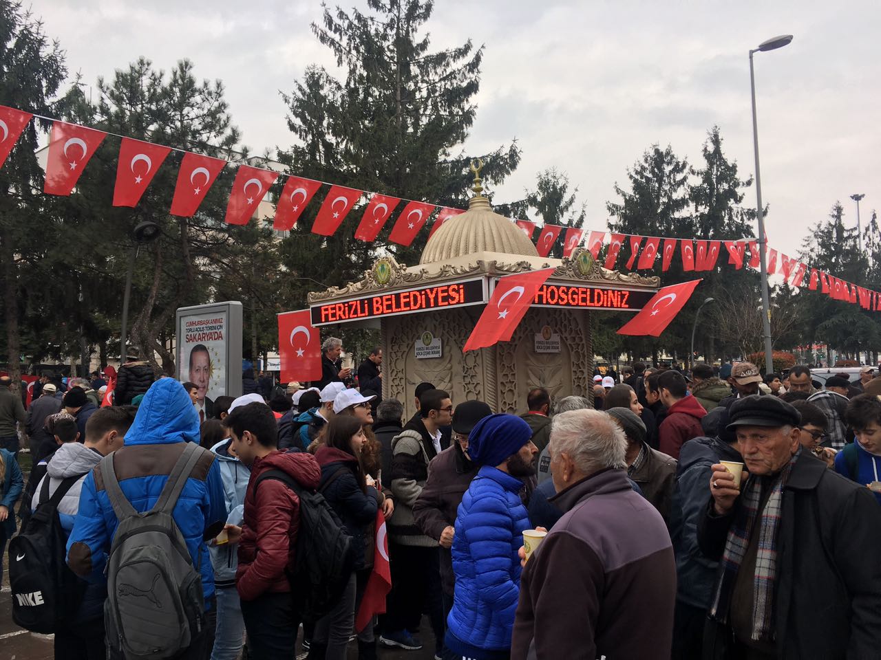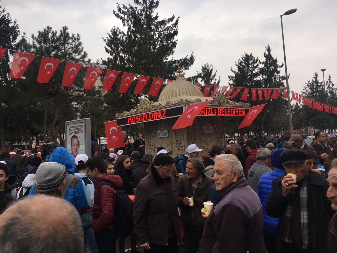 Ferizli Belediye Başkanı Ahmet Soğuk, ‘bugün Sakarya’mız tarihi günlerinden birini yaşıyor. Kendisini milleti ve ülkesi için adamış Cumhurbaşkanımız Sayın Recep Tayyip Erdoğan’ı büyük kalabalıkla coşku içerisin de ağırlıyoruz. İkram çeşmemizi özel günlerde halkımızın hizmetine sunuyoruz. 15 Temmuz demokrasi nöbetleri boyunca da çeşmemizi demokrasi meydanında vatandaşlarımızın hizmetine sunduk. Ne yaparsak yapalım ne Cumhurbaşkanımızın ne de bu aziz milletimizin hakkını ödeyemeyiz. Şu kabalık gösteriyor ki Sakarya çoktan evet demiş. İnşallah 16 Nisandan sonra yepyeni bir Türkiye ile uyanacağız,’’ şeklinde konuştu.