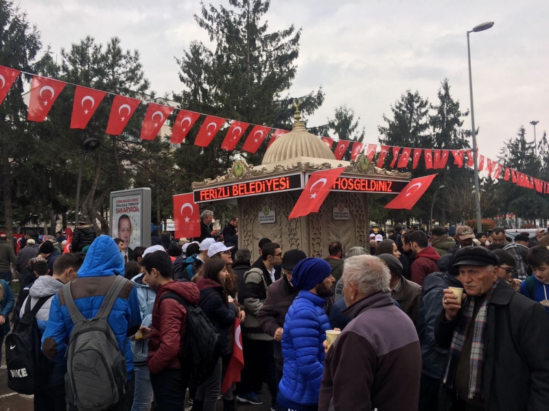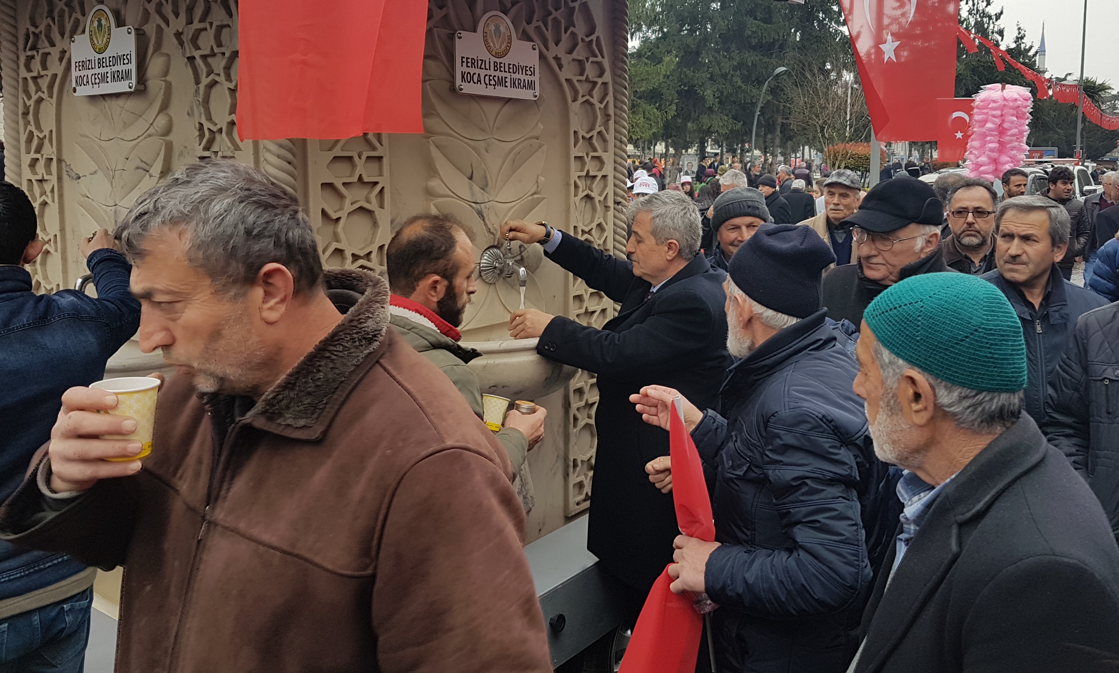 Bu tarihi günde Ferizli Belediyesi ikram çeşmesini Sakarya Demokrasi Meydanına kurdu. Binlerce salep dağıtarak miting alanındaki vatandaşların içini ısıttı. Bazı vatandaşlar ikram çeşmesiyle fotoğraf çekilip sosyal paylaşım sitelerinden paylaştılar. Ferizli Belediyesi’ne teşekkür ettiler. Belediye Başkanı Ahmet Soğuk kendi eliyle vatandaşlara salep ikram etti. Belediyenin bu hizmetinden memnun kalan vatandaşlar Belediye Başkanı Ahmet Soğuk ’a teşekkür ettiler.