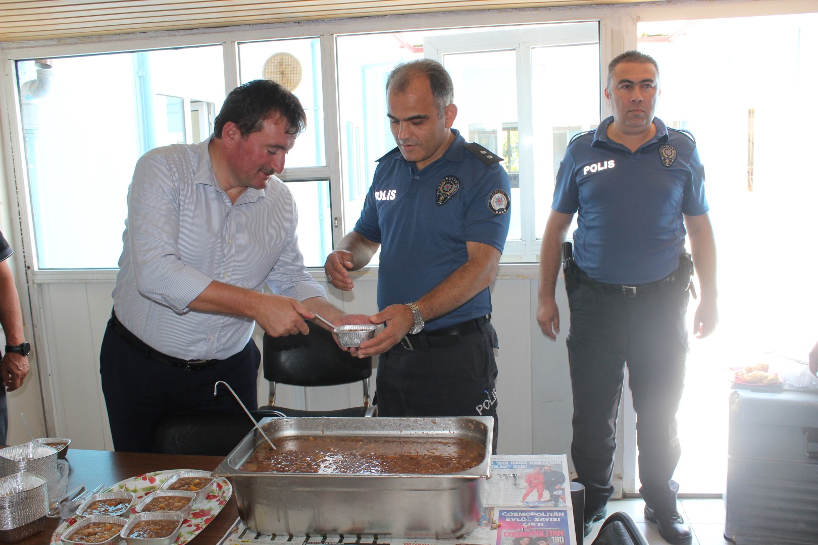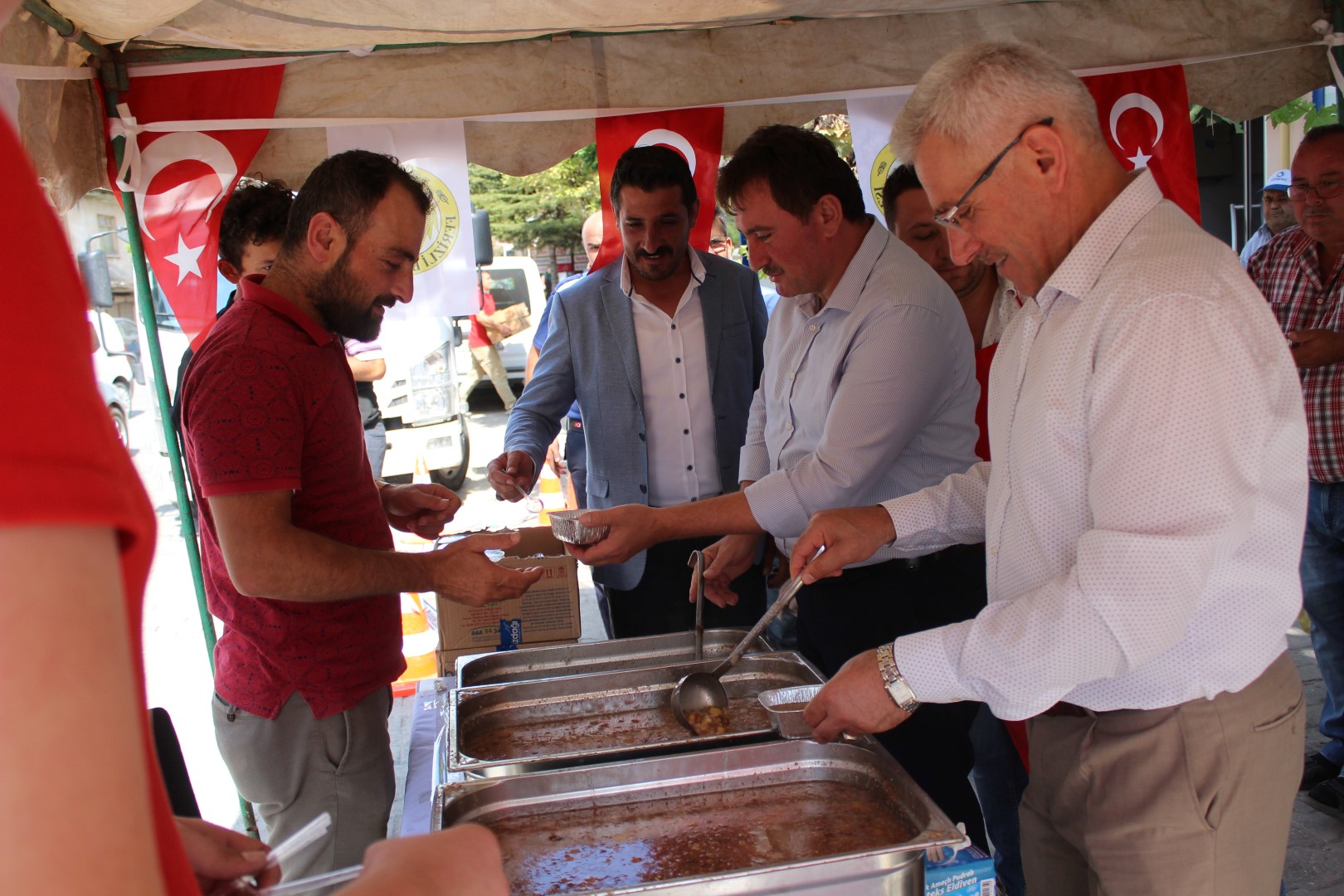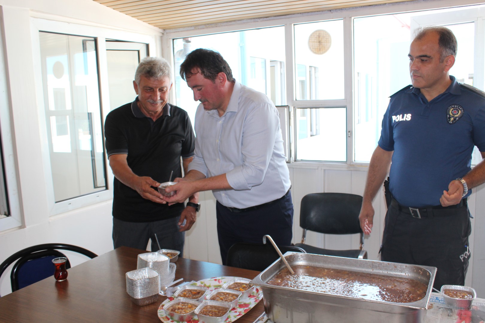 Belediye Başkanımız İsmail Gündoğdu, başkan yardımcıları ve meclis üyeleri ile birlikte aşure kazanının başına geçerek vatandaşlara aşure dağıttı. Daha sonra kurum ve kuruluşları gezen Başkanımız Gündoğdu, Muharrem ayının hayırlar getirmesini temenni ederek, çalışanlara aşure ikram etti.