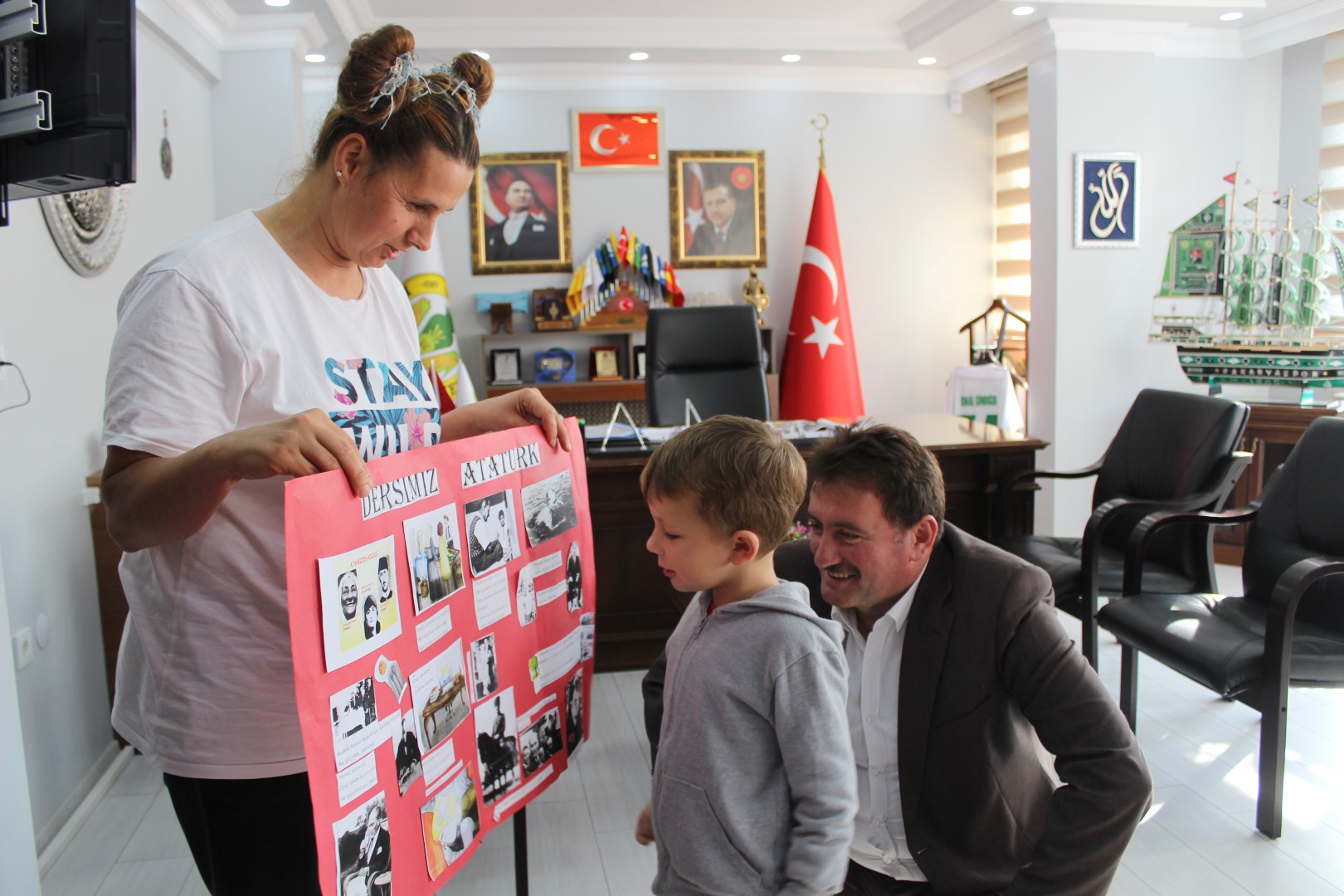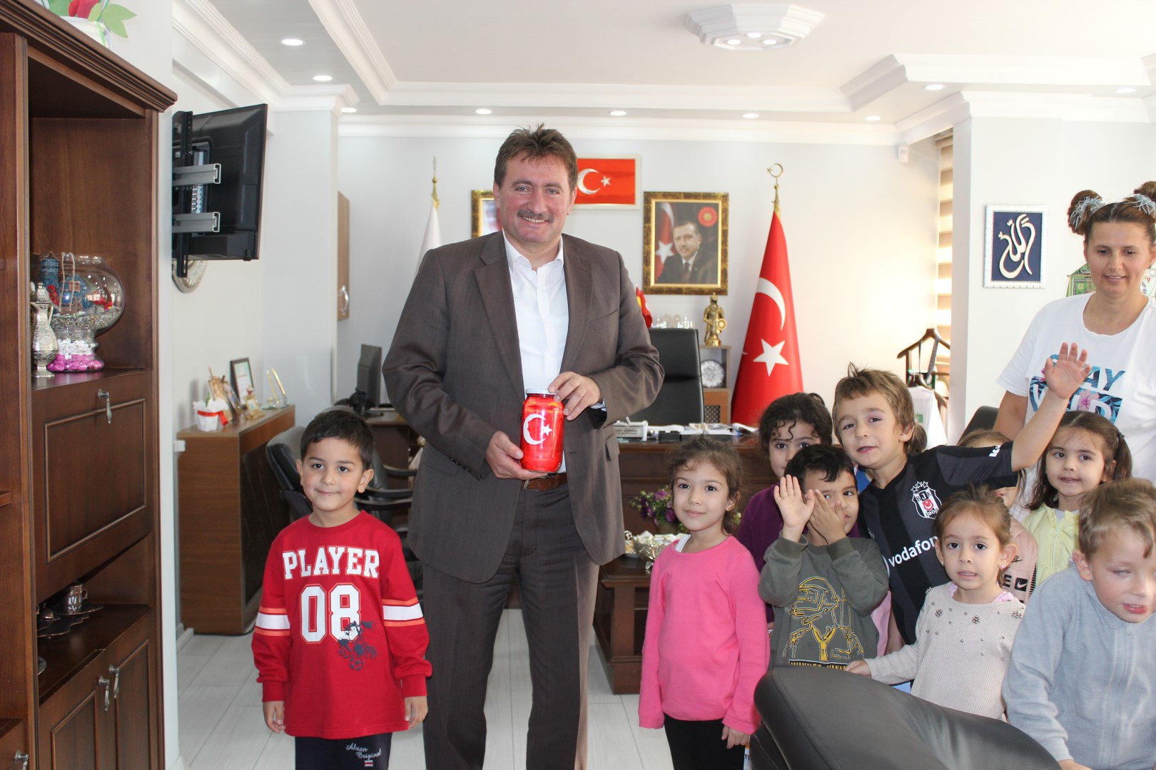 Ferizli Harikalar Diyarı Kreş ve Gündüz Bakımevi öğrenci ve öğretmenleri 29 Ekim Cumhuriyet Bayramı nedeniyle Belediye Başkanımız İsmail Gündoğdu’ya ziyarette bulundu. Neşeli dakikaların yaşandığı ziyarette minik öğrenciler Başkanımız Gündoğdu’ya, üzerinde Cumhuriyetimizin kurucusu Atatürk ve ailesinin resmi olan karton pano takdim etti.
