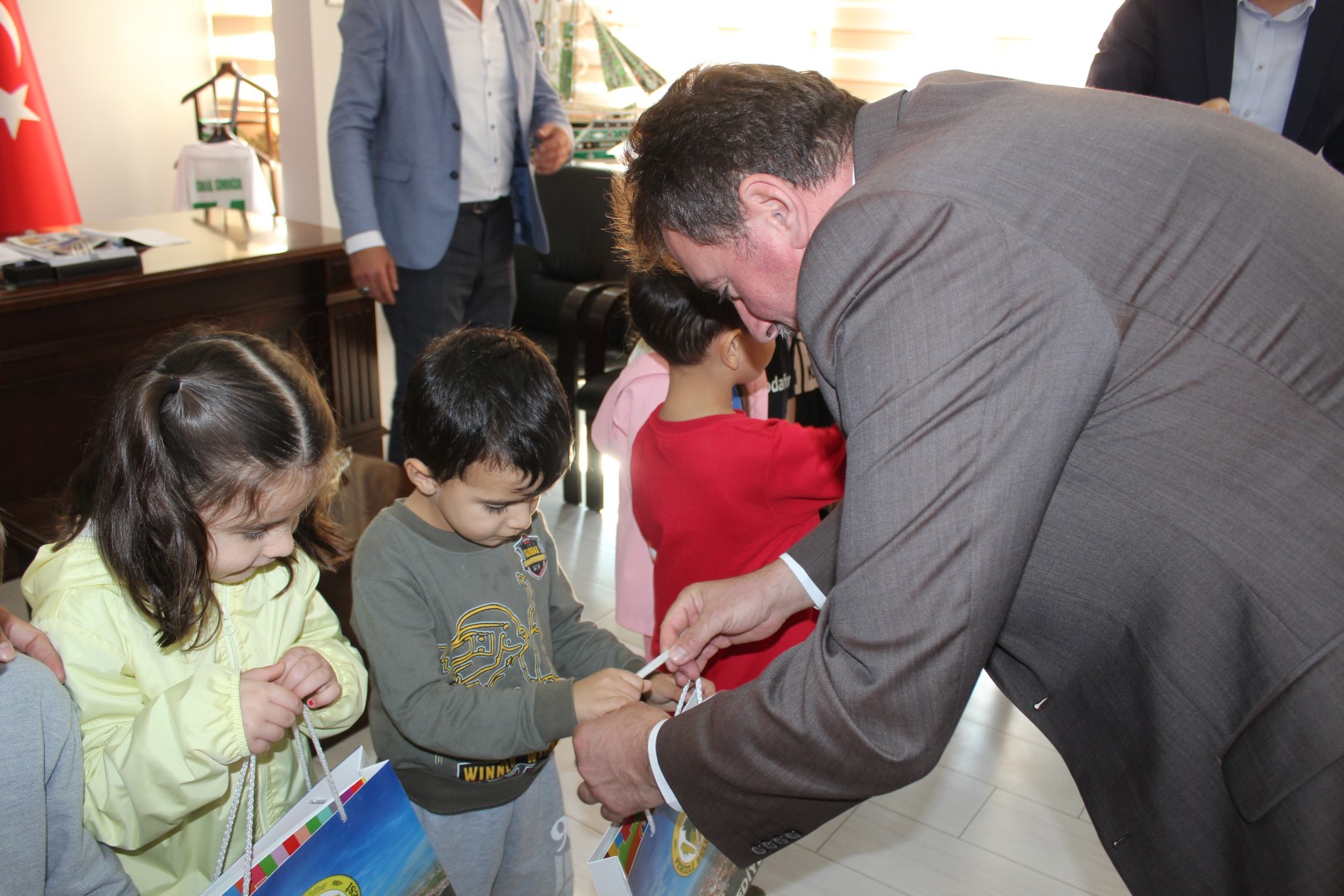 MİNİK ÖĞRENCİLER BAŞKAN GÜNDOĞDU’YU ZİYARET ETTİ