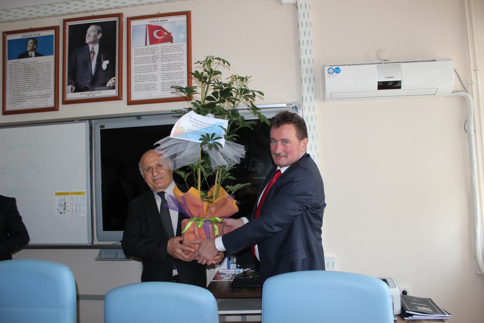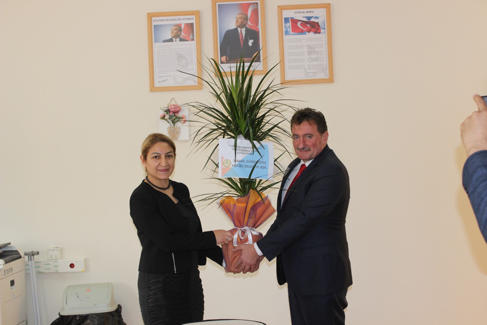Belediye Başkanımız İsmail Gündoğdu, 24 Kasım Öğretmenler Günü dolayısıyla ilçedeki okullarda öğretmenleri ziyaret etti. Öğretmenler odasında öğretmenlerle bir araya gelen Başkanımız Gündoğdu öğretmenler gününü kutlayarak çiçek ve hediye takdim etti.