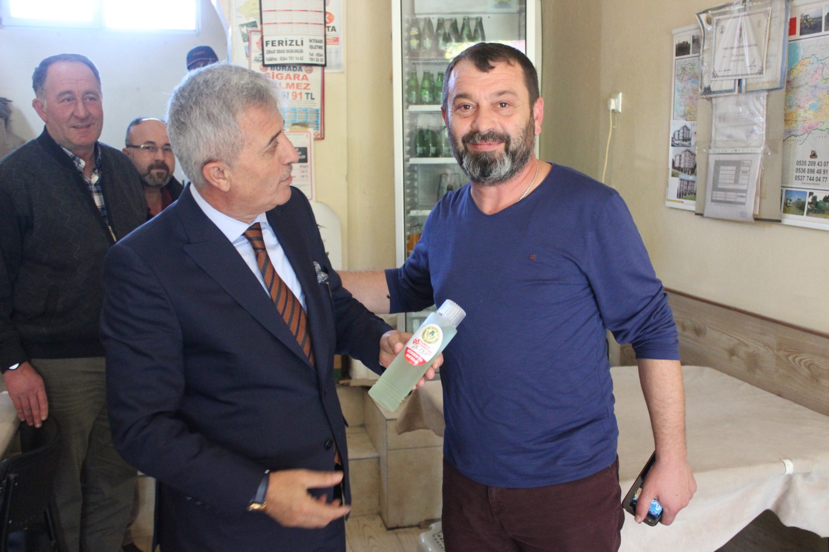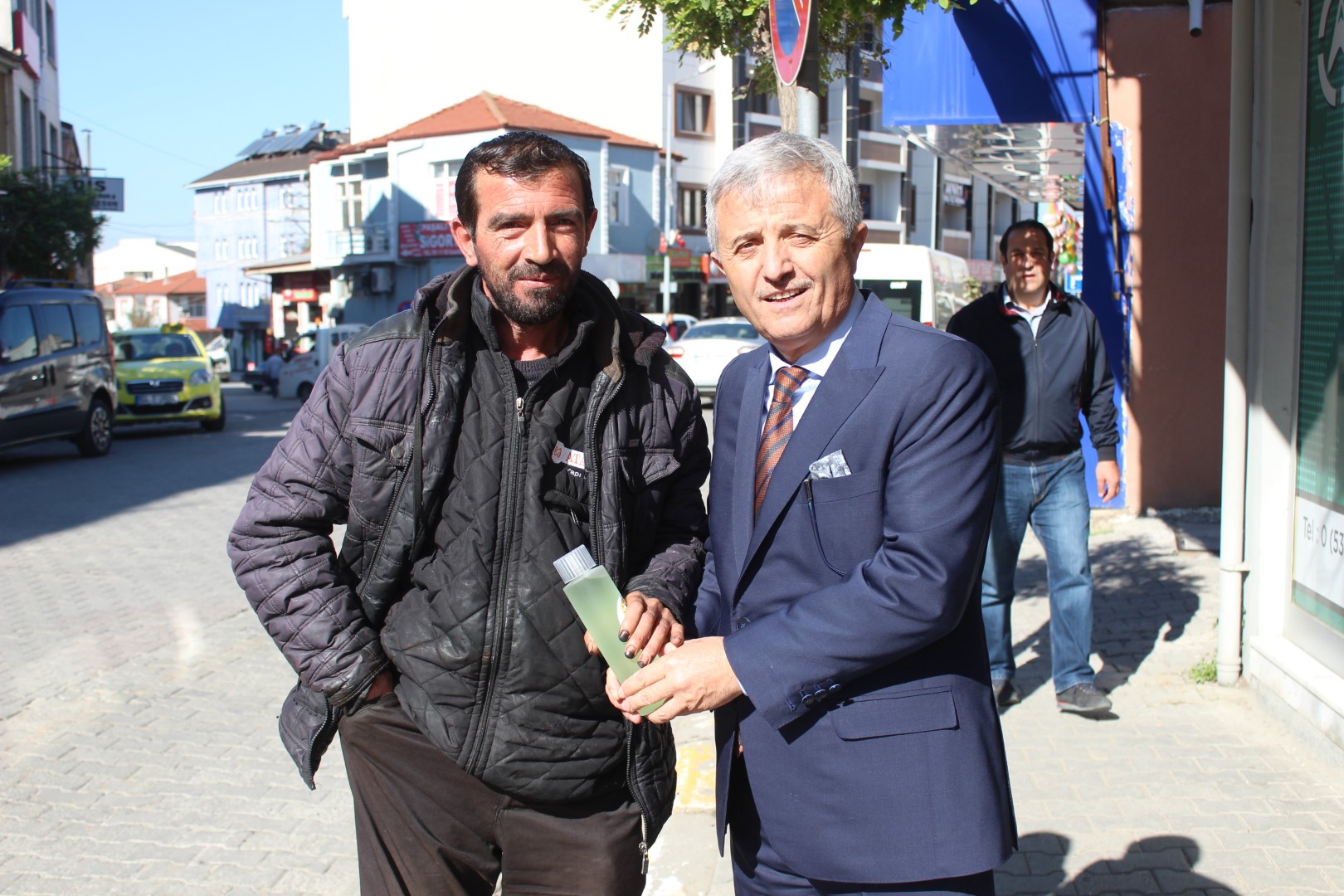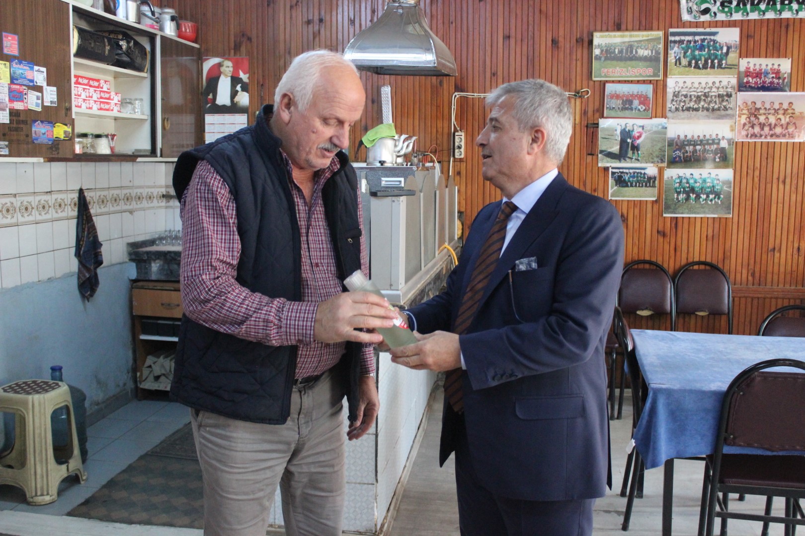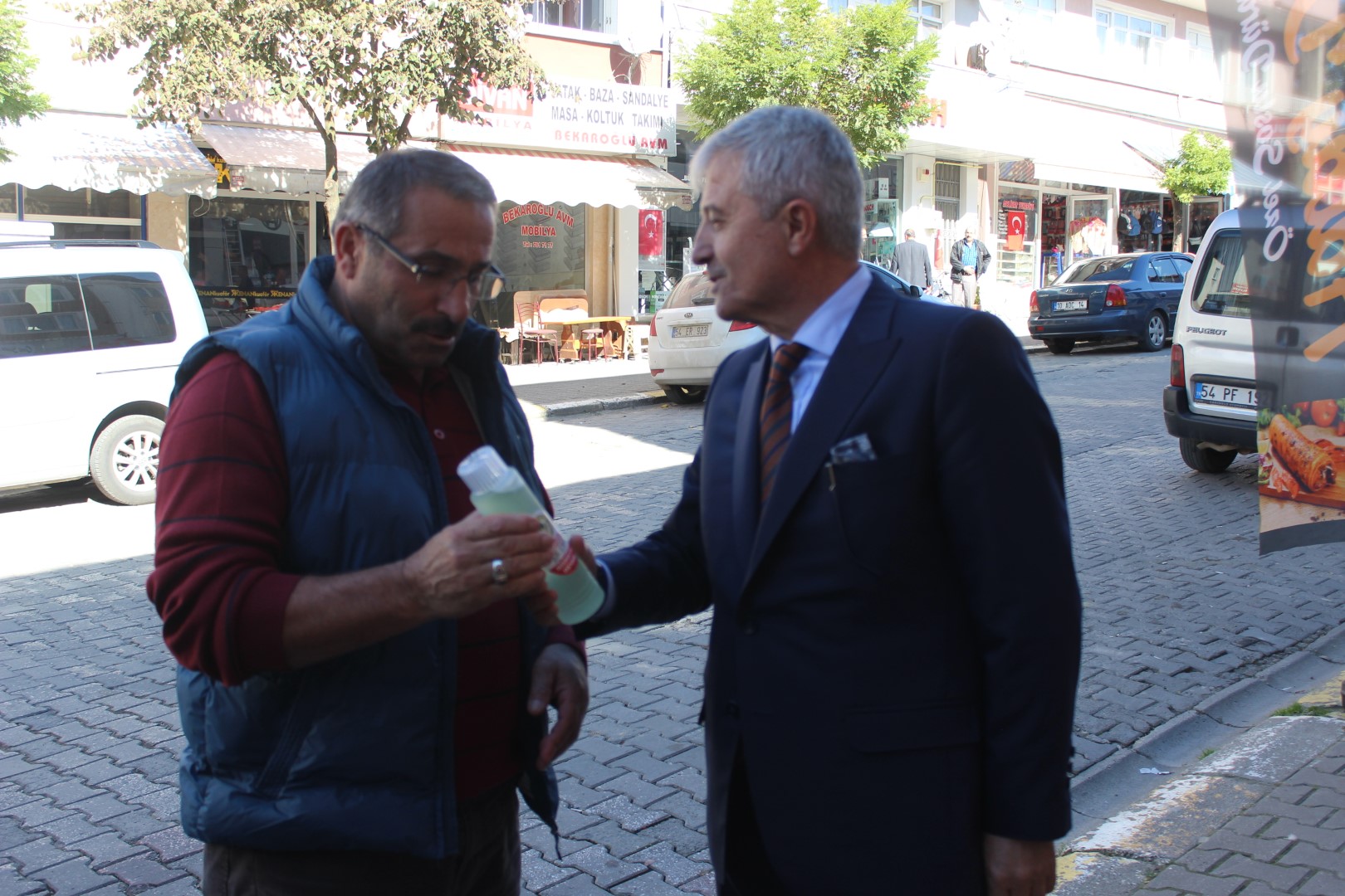 Ferizli Belediye Başkanı Ahmet Soğuk, Cumhuriyetimizin 95. Yıldönümü münasebetiyle tüm esnaflara kolonya dağıttı.