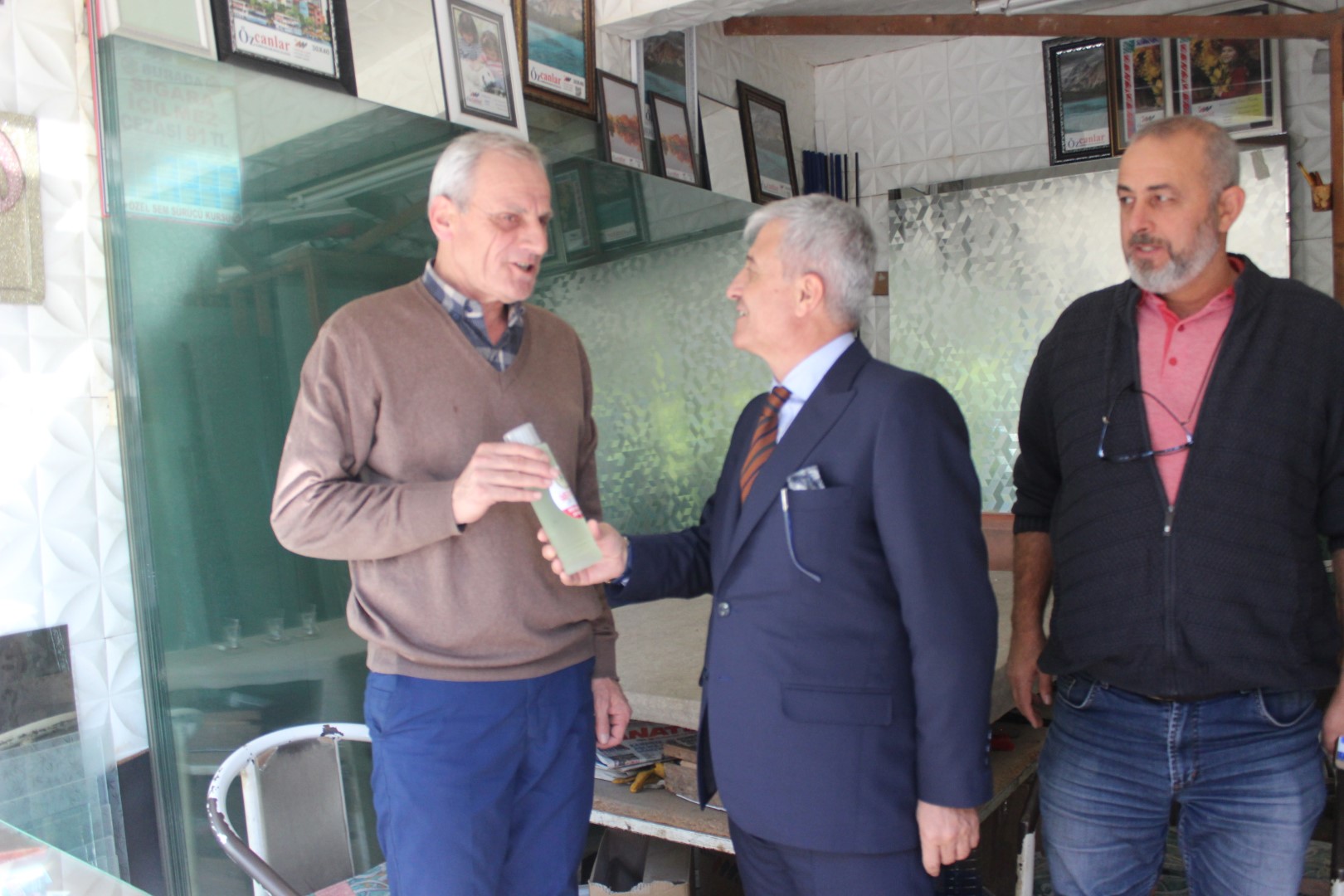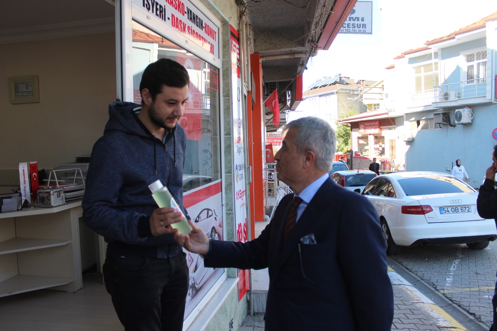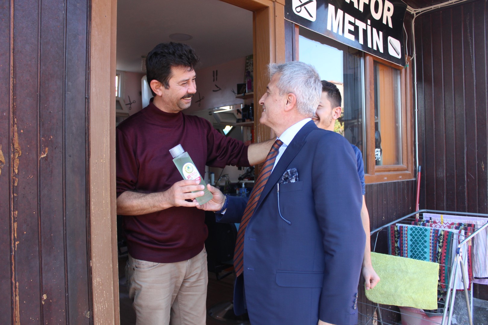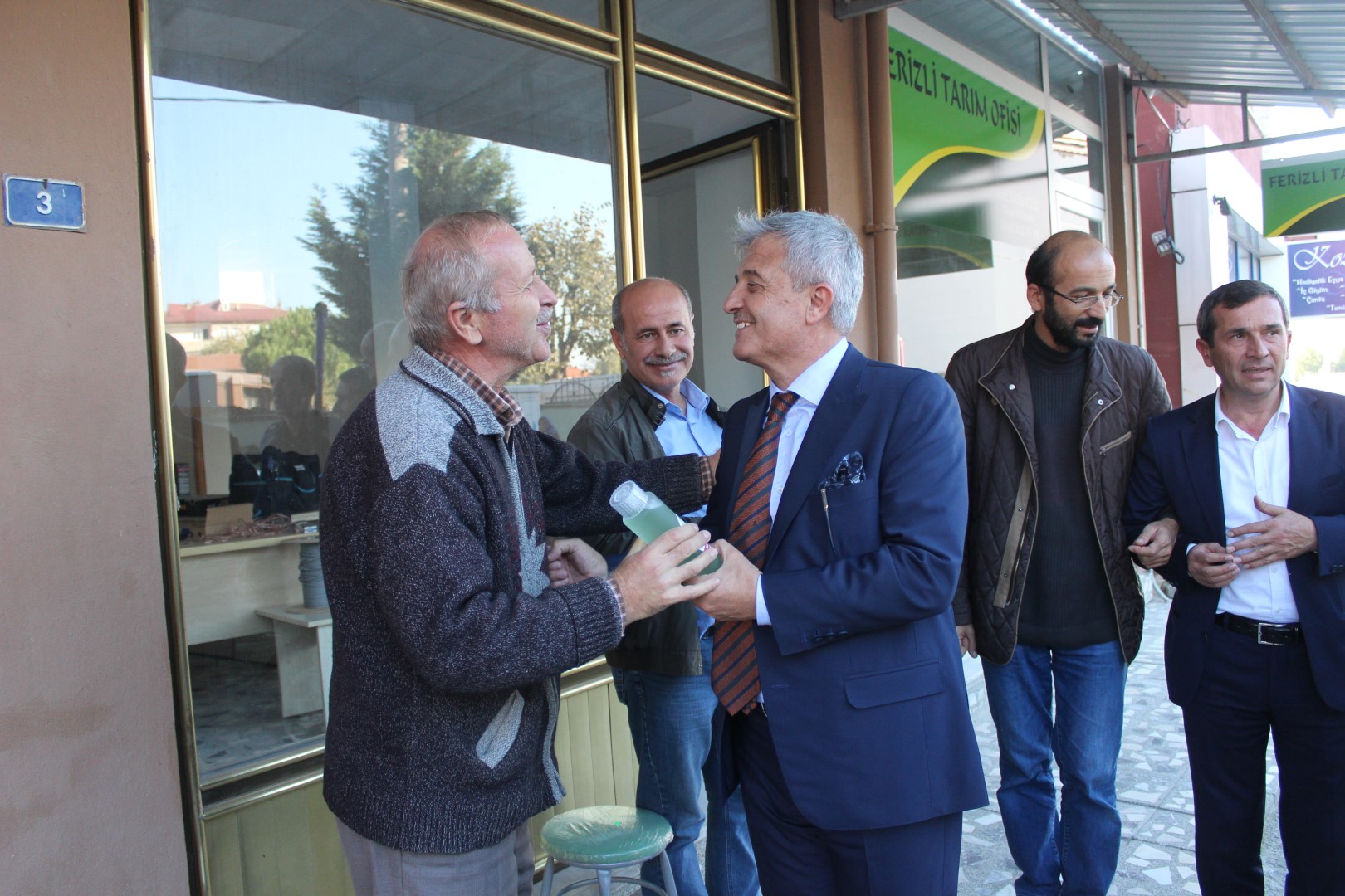Ferizli Belediye Başkanı Ahmet Soğuk, Cumhuriyetimizin 95. Yıldönümü münasebetiyle tüm esnaflara kolonya dağıttı.