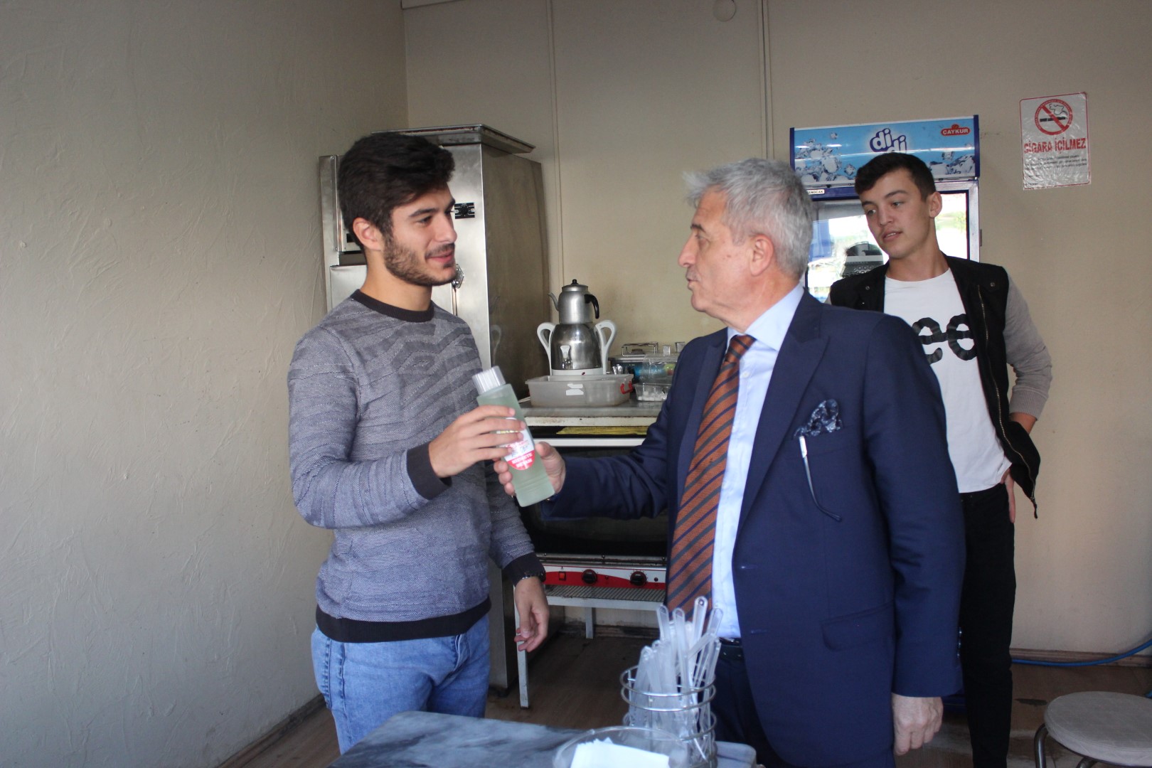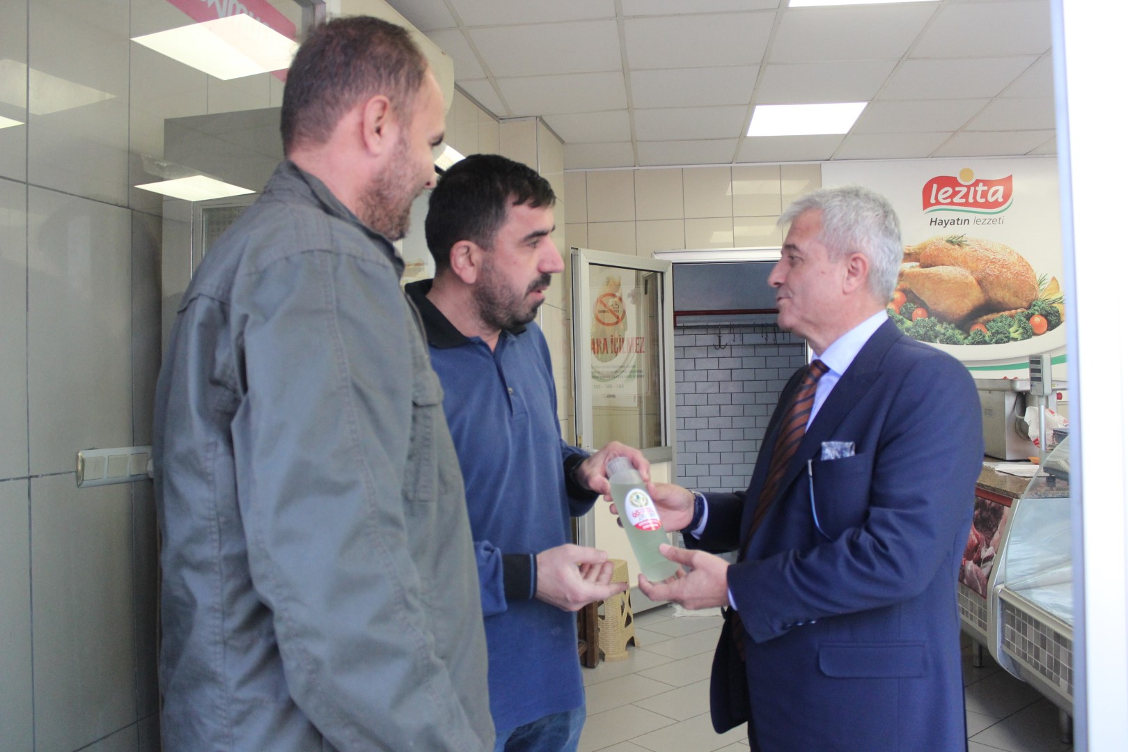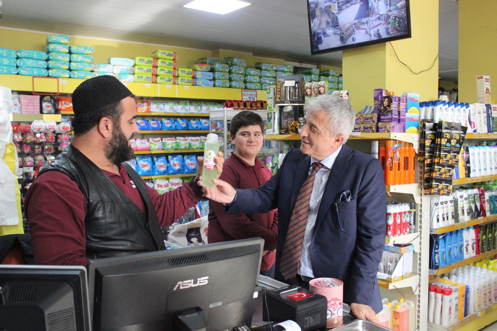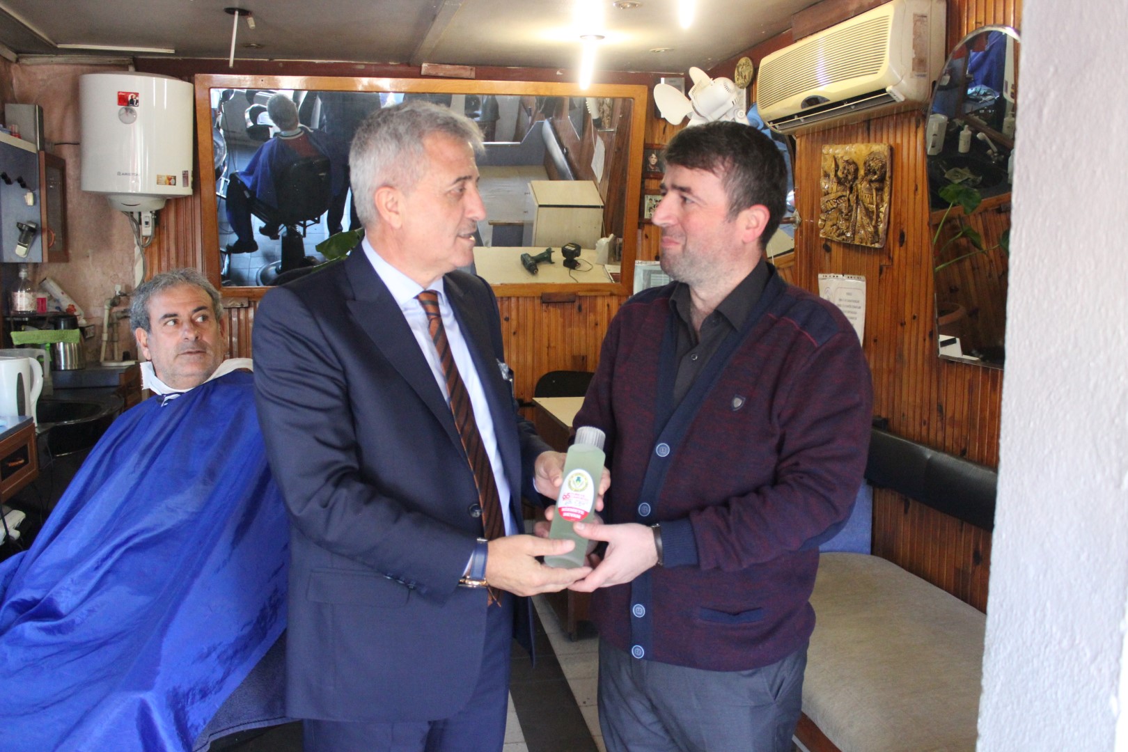 Ferizli Belediye Başkanı Ahmet Soğuk, Cumhuriyetimizin 95. Yıldönümü münasebetiyle tüm esnaflara kolonya dağıttı.