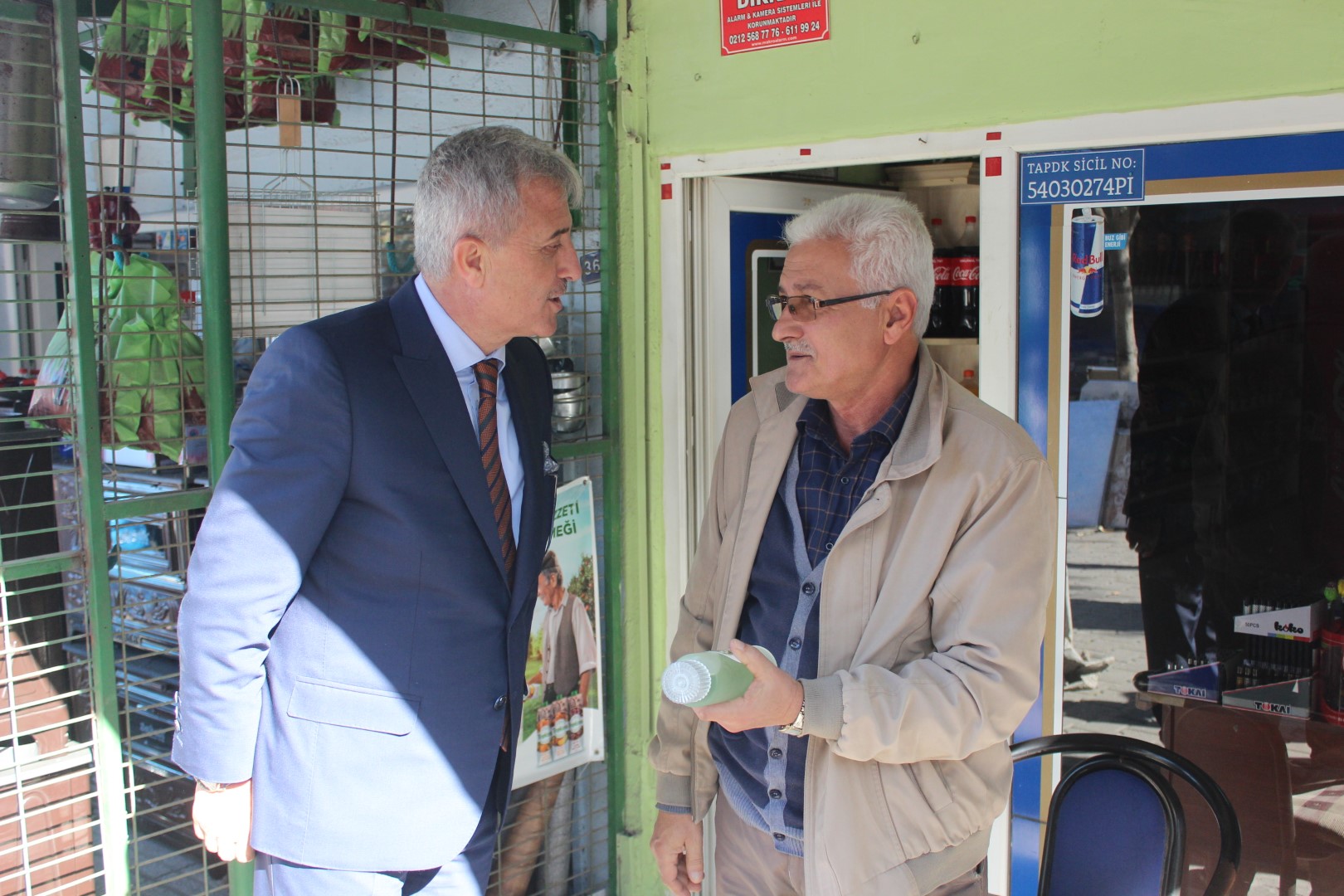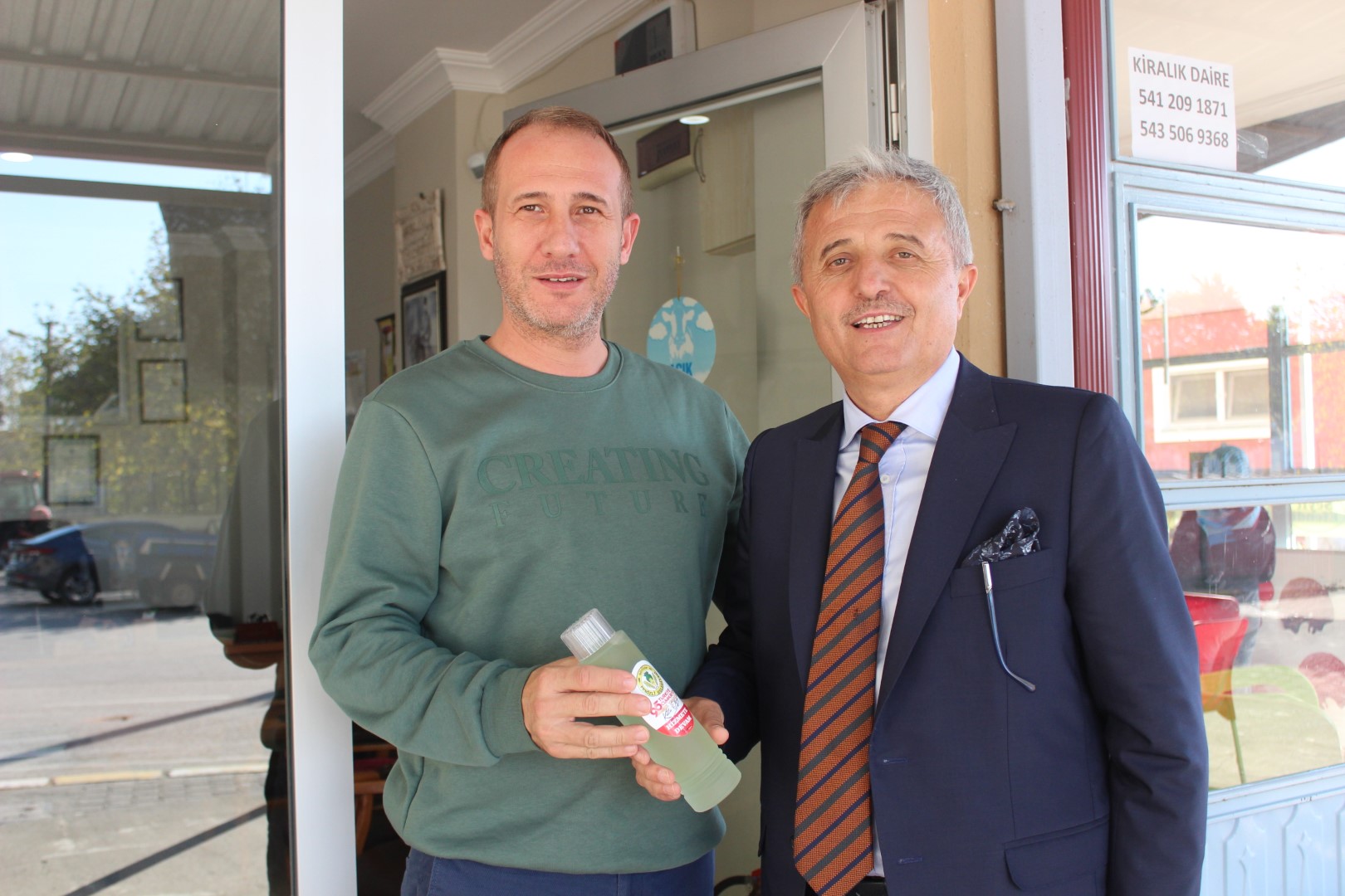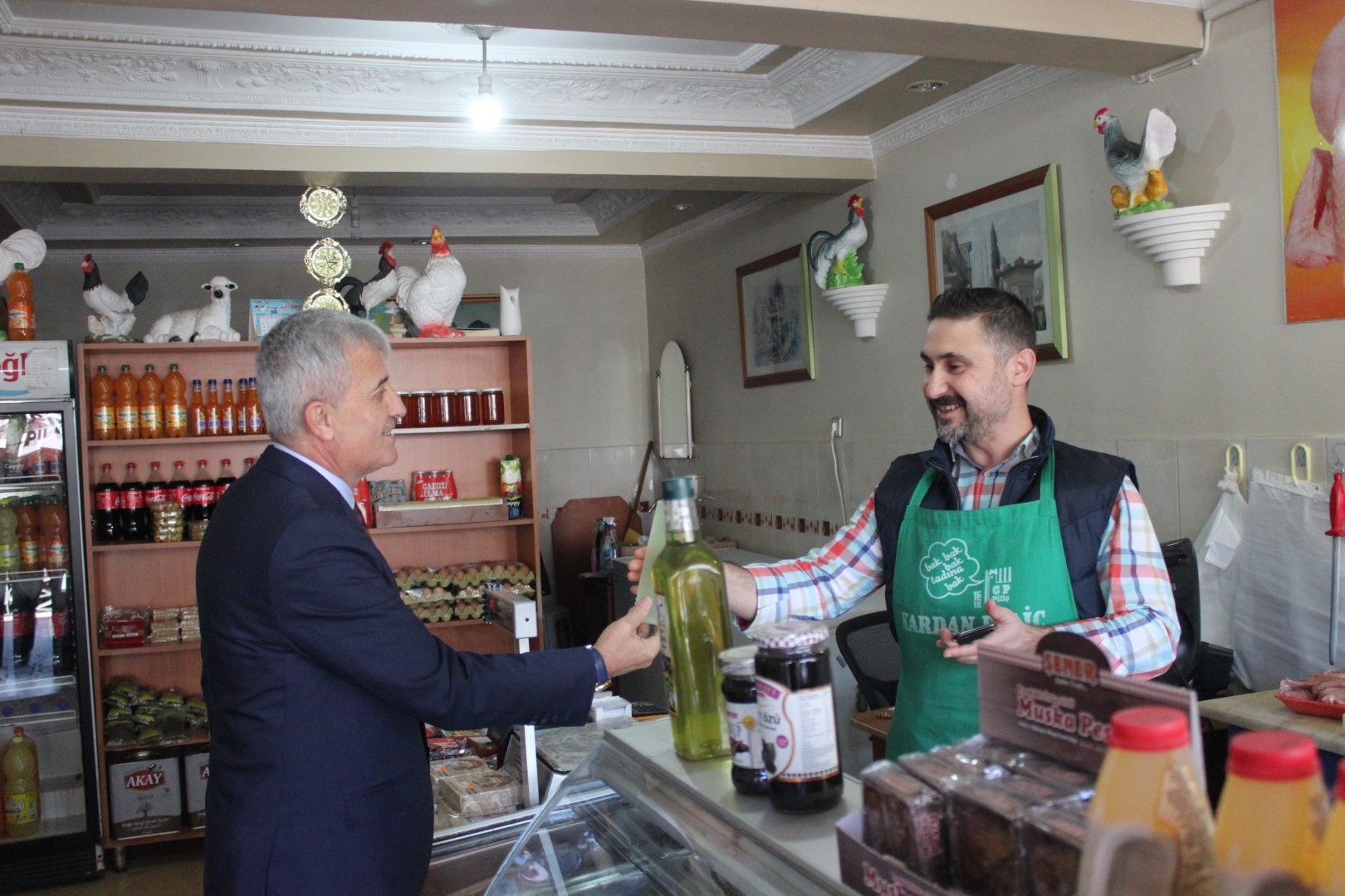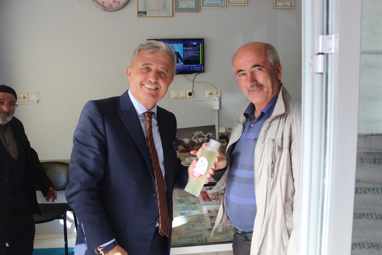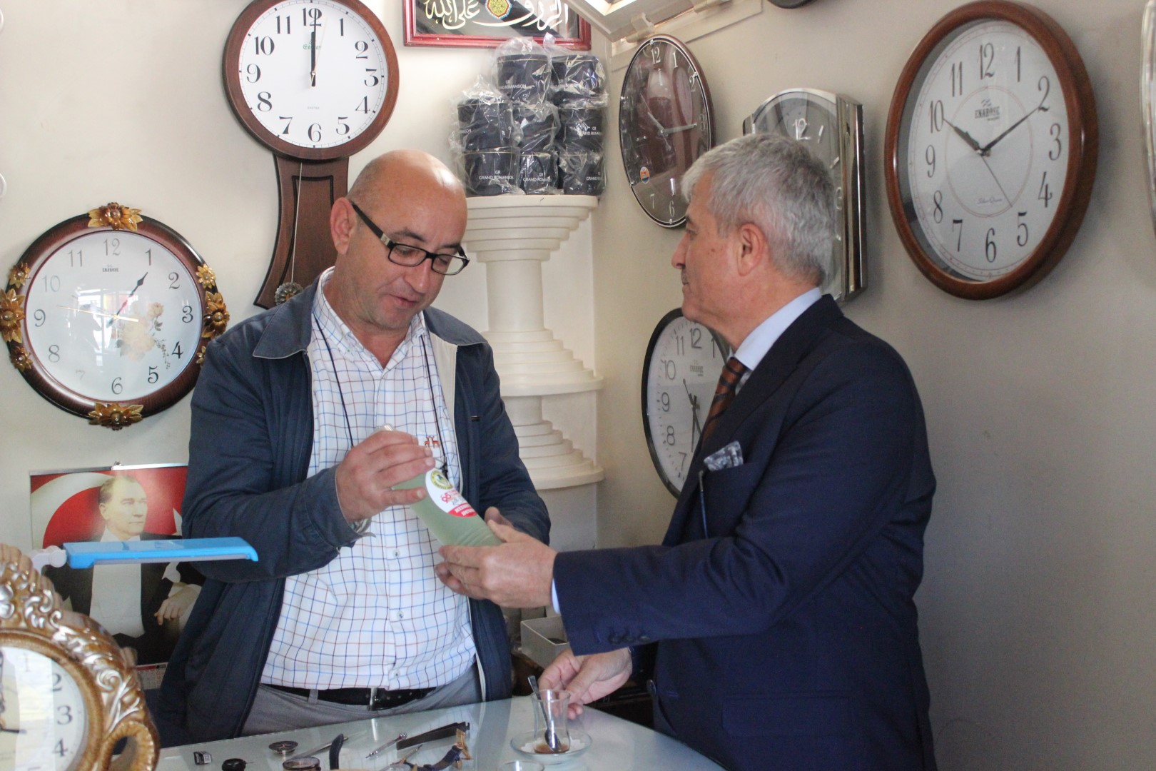 Tüm esnafları tek tek dolaşan Belediye Başkanı Ahmet Soğuk, esnaflara kolonya dağıtarak, Cumhuriyet Bayramı’nı kutladı.