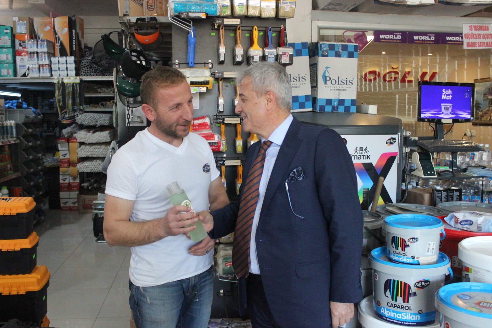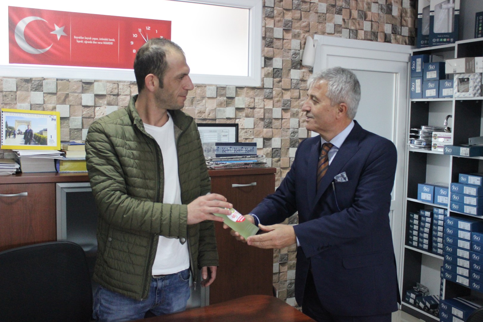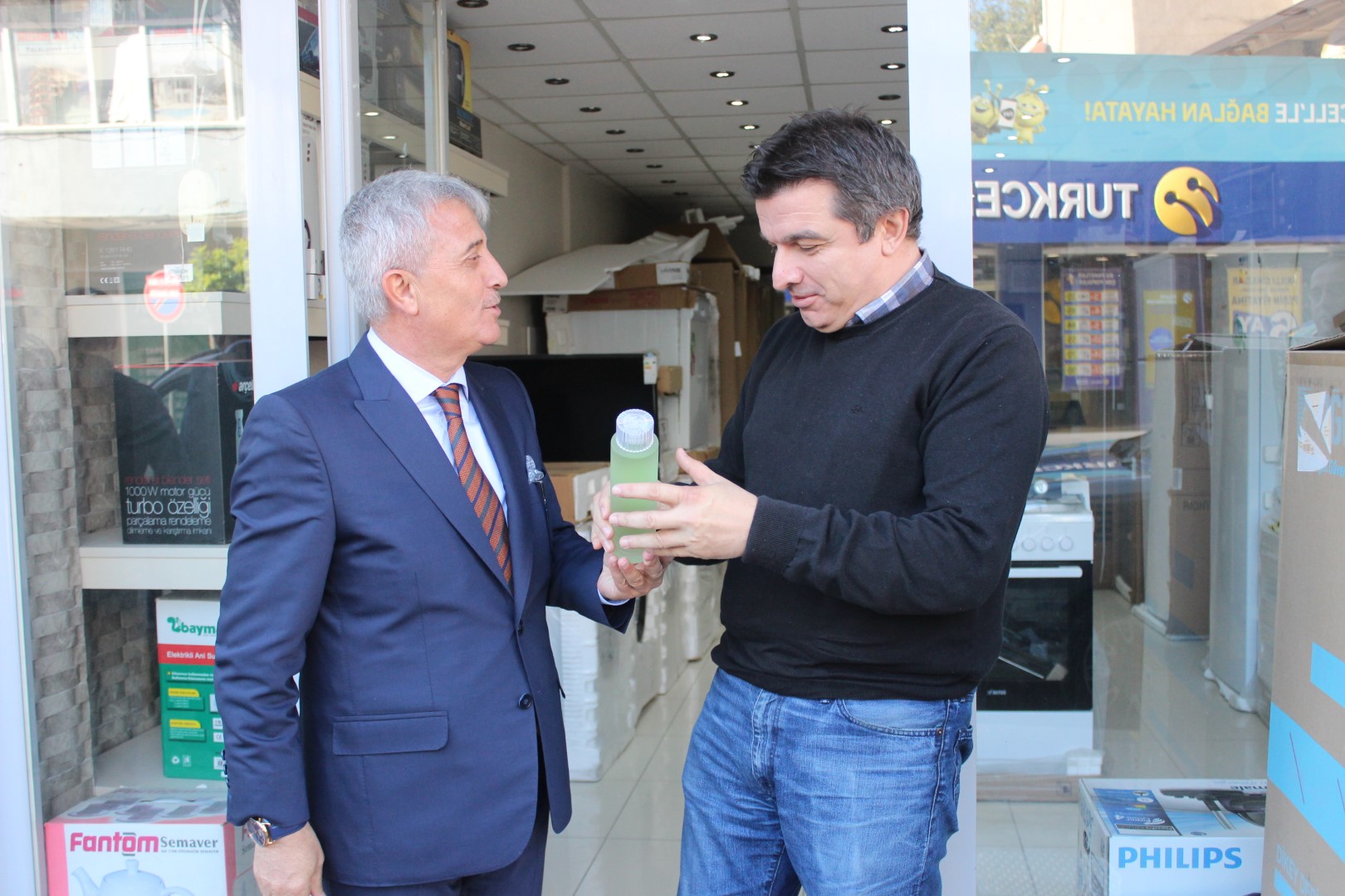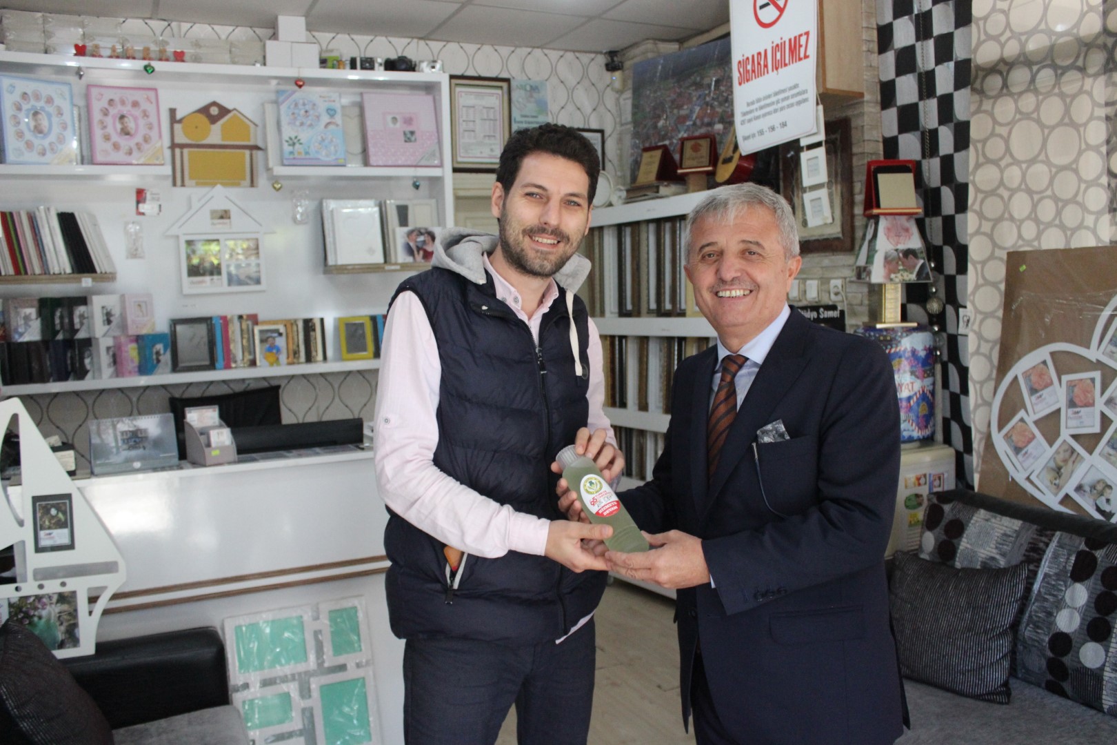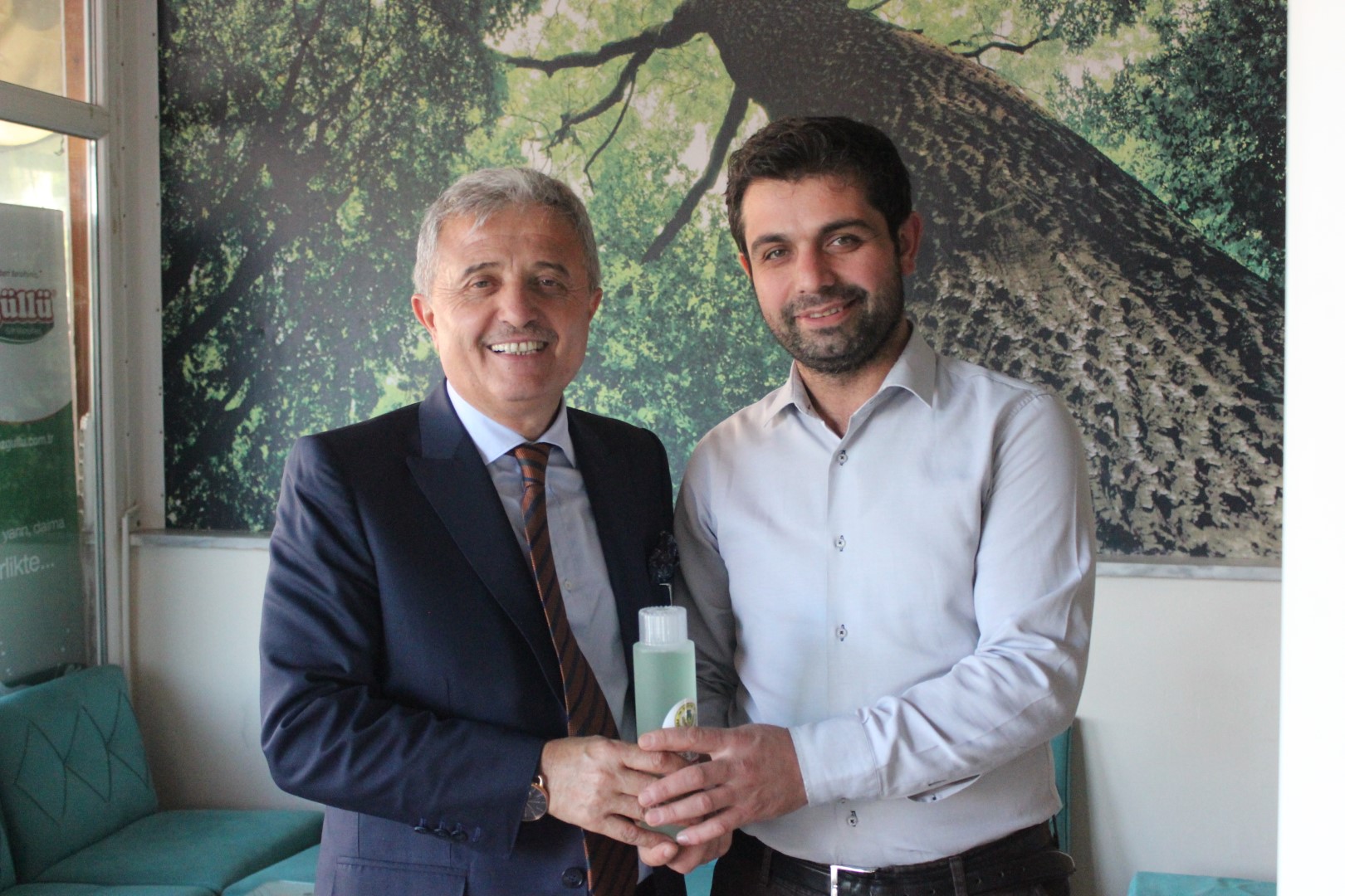 Tüm esnafları tek tek dolaşan Belediye Başkanı Ahmet Soğuk, esnaflara kolonya dağıtarak, Cumhuriyet Bayramı’nı kutladı.