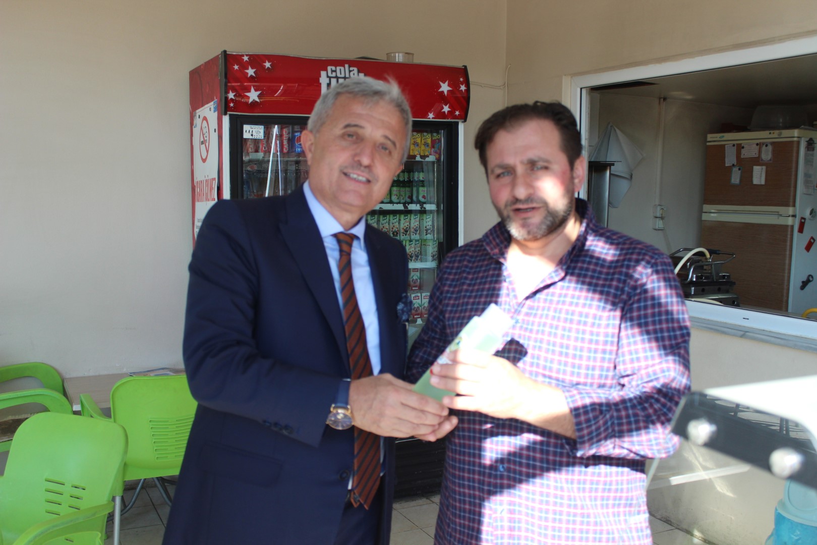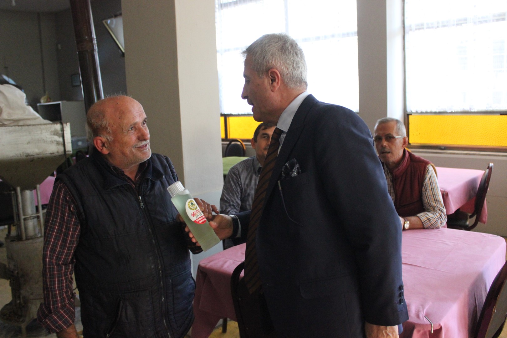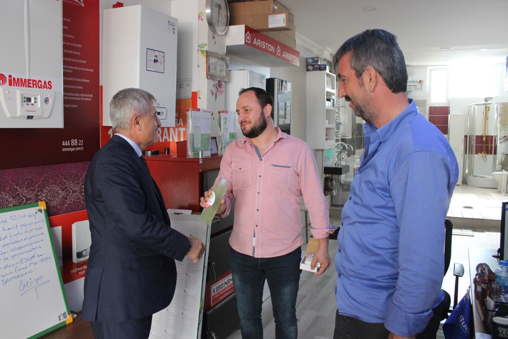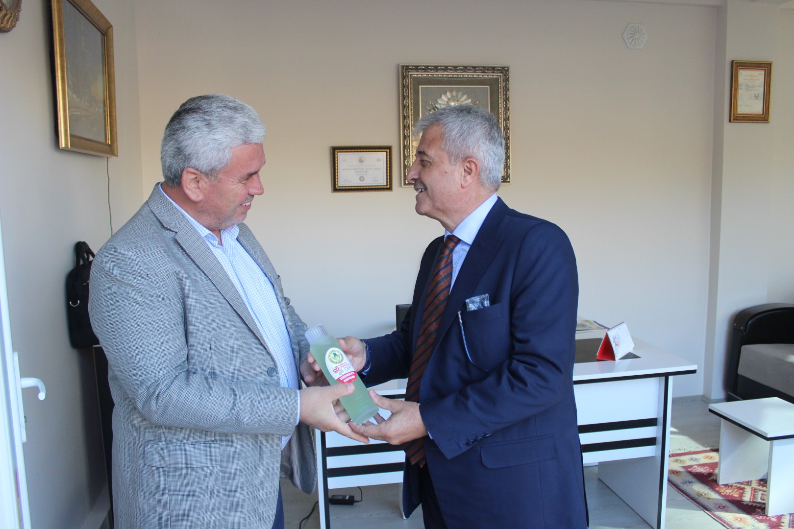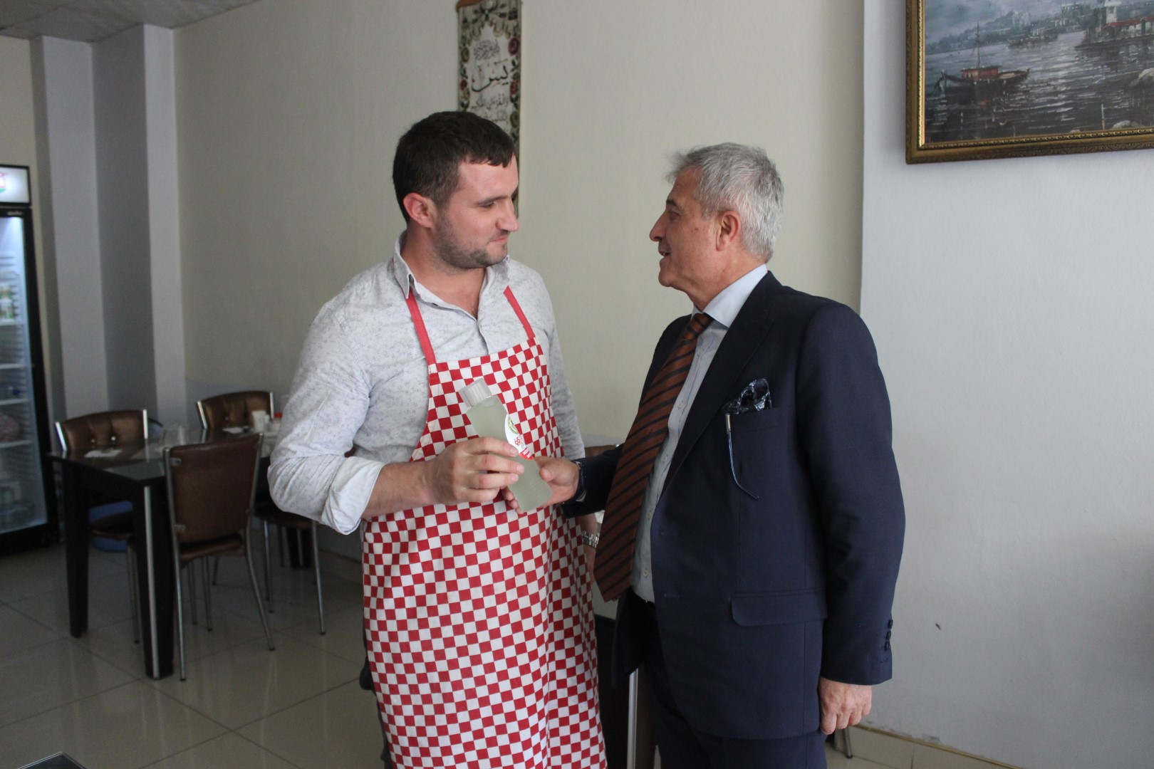 Tüm esnafları tek tek dolaşan Belediye Başkanı Ahmet Soğuk, esnaflara kolonya dağıtarak, Cumhuriyet Bayramı’nı kutladı.