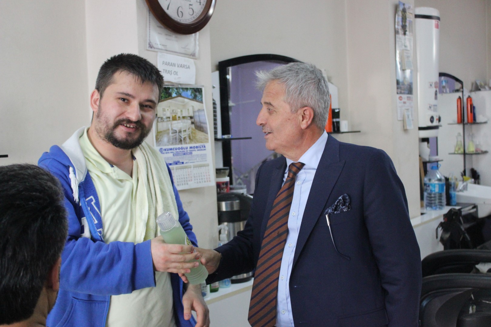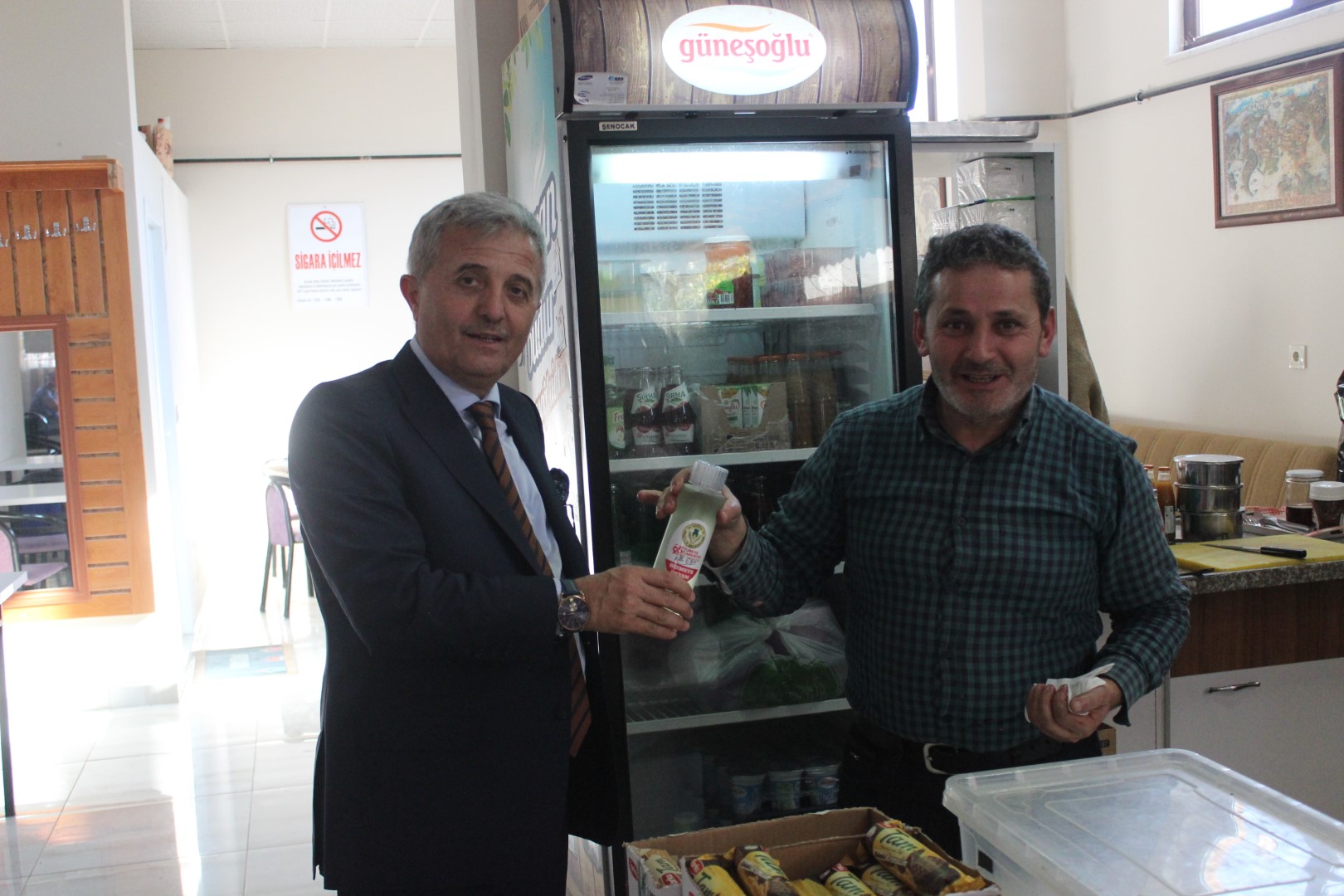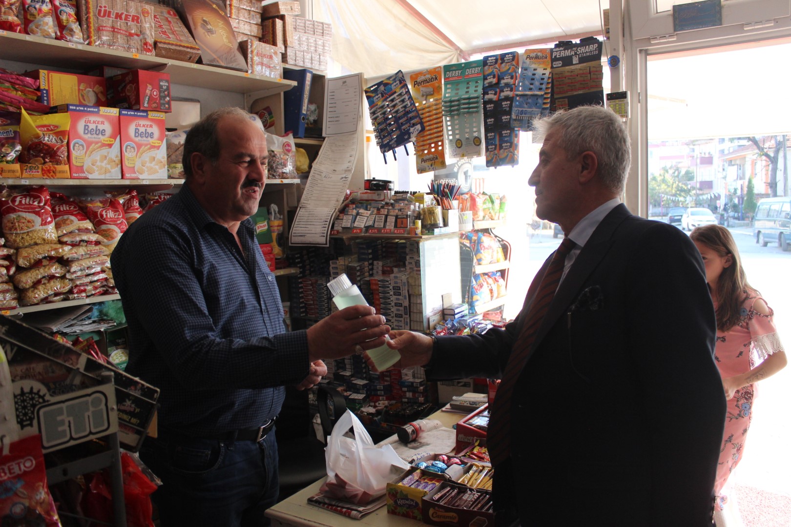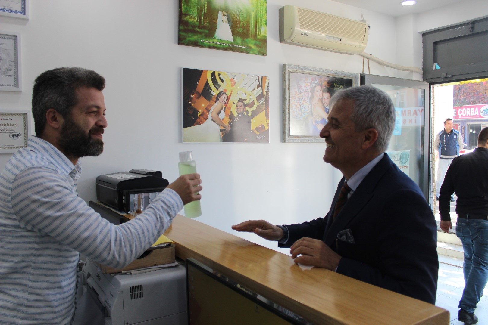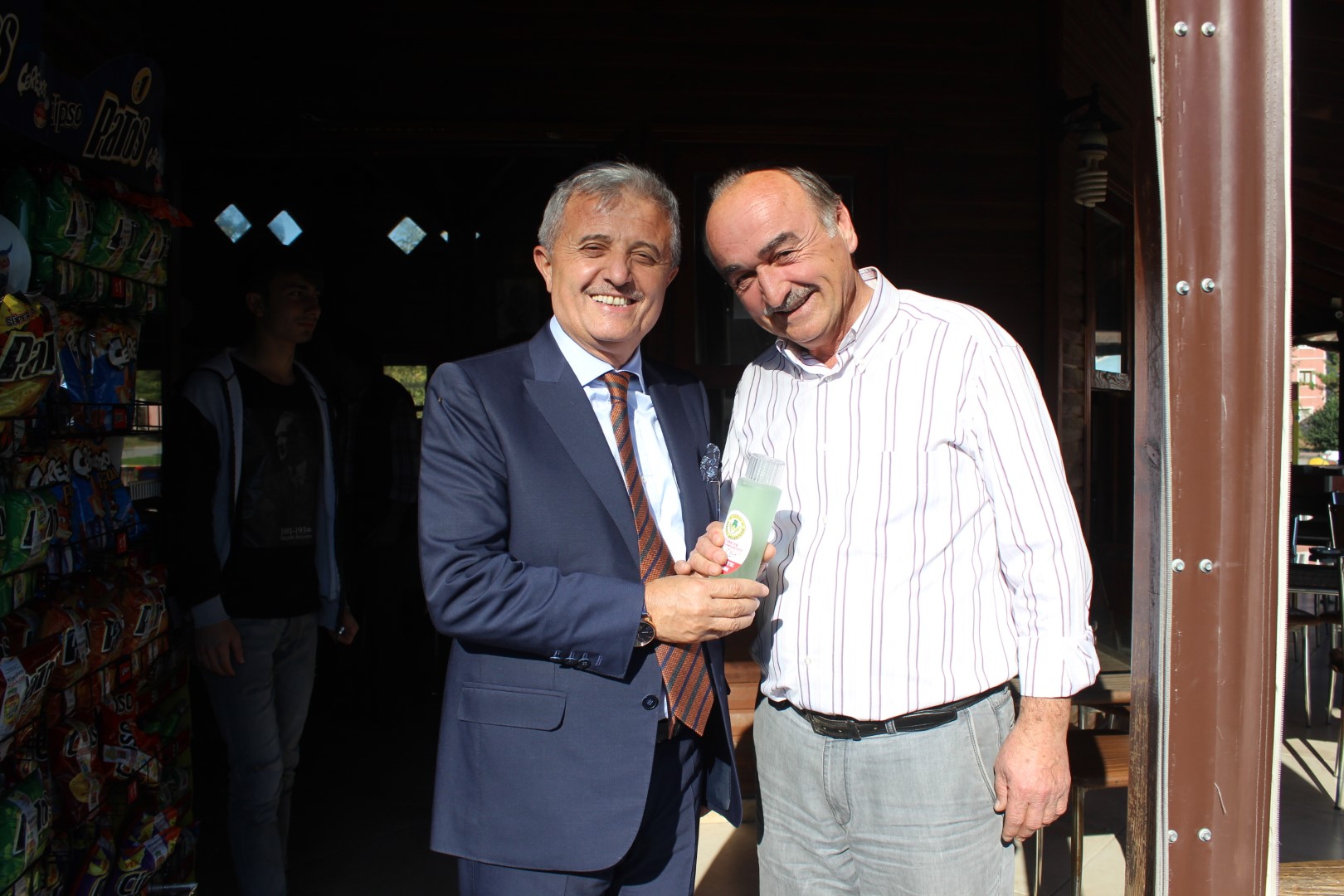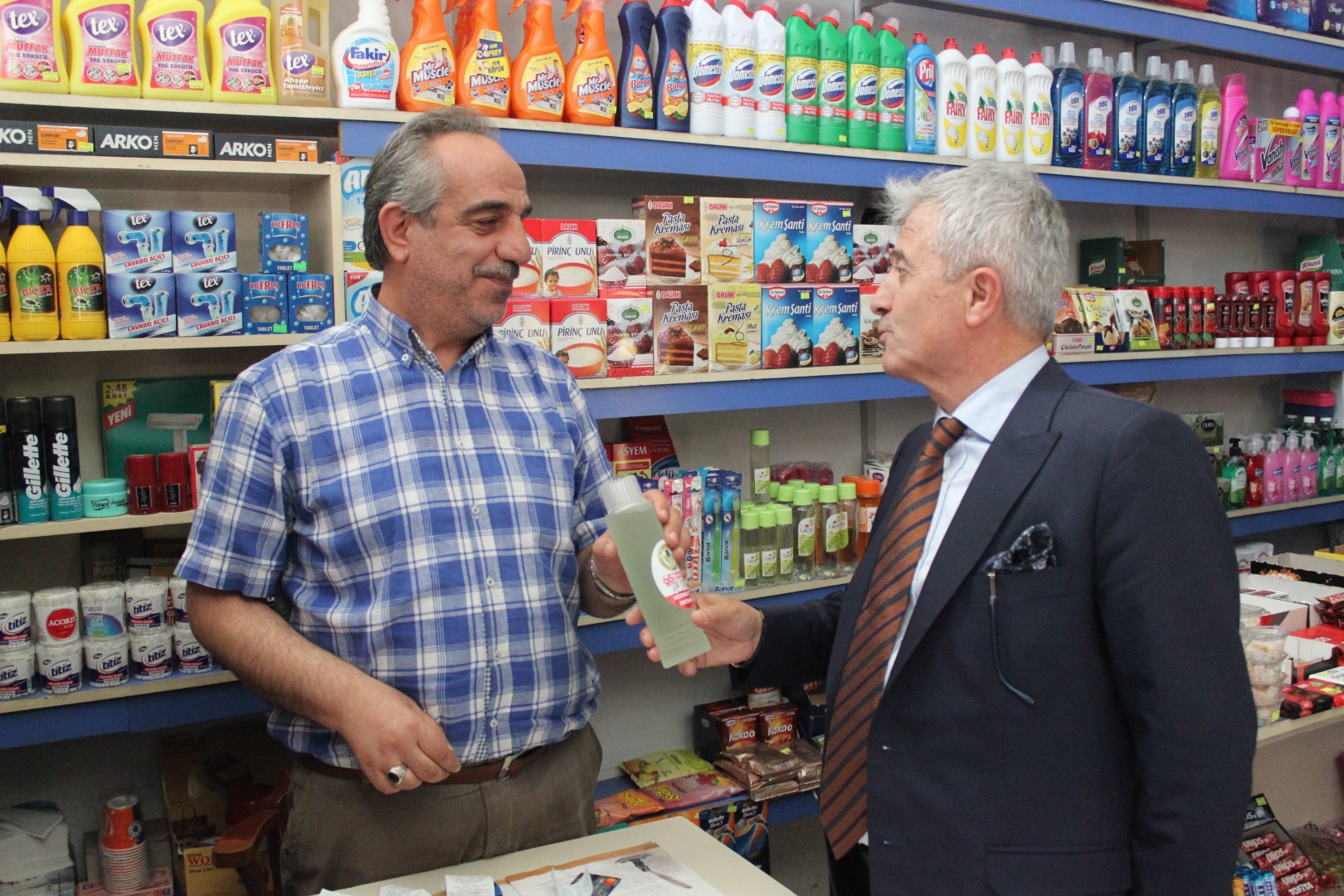 Tüm esnafları tek tek dolaşan Belediye Başkanı Ahmet Soğuk, esnaflara kolonya dağıtarak, Cumhuriyet Bayramı’nı kutladı.