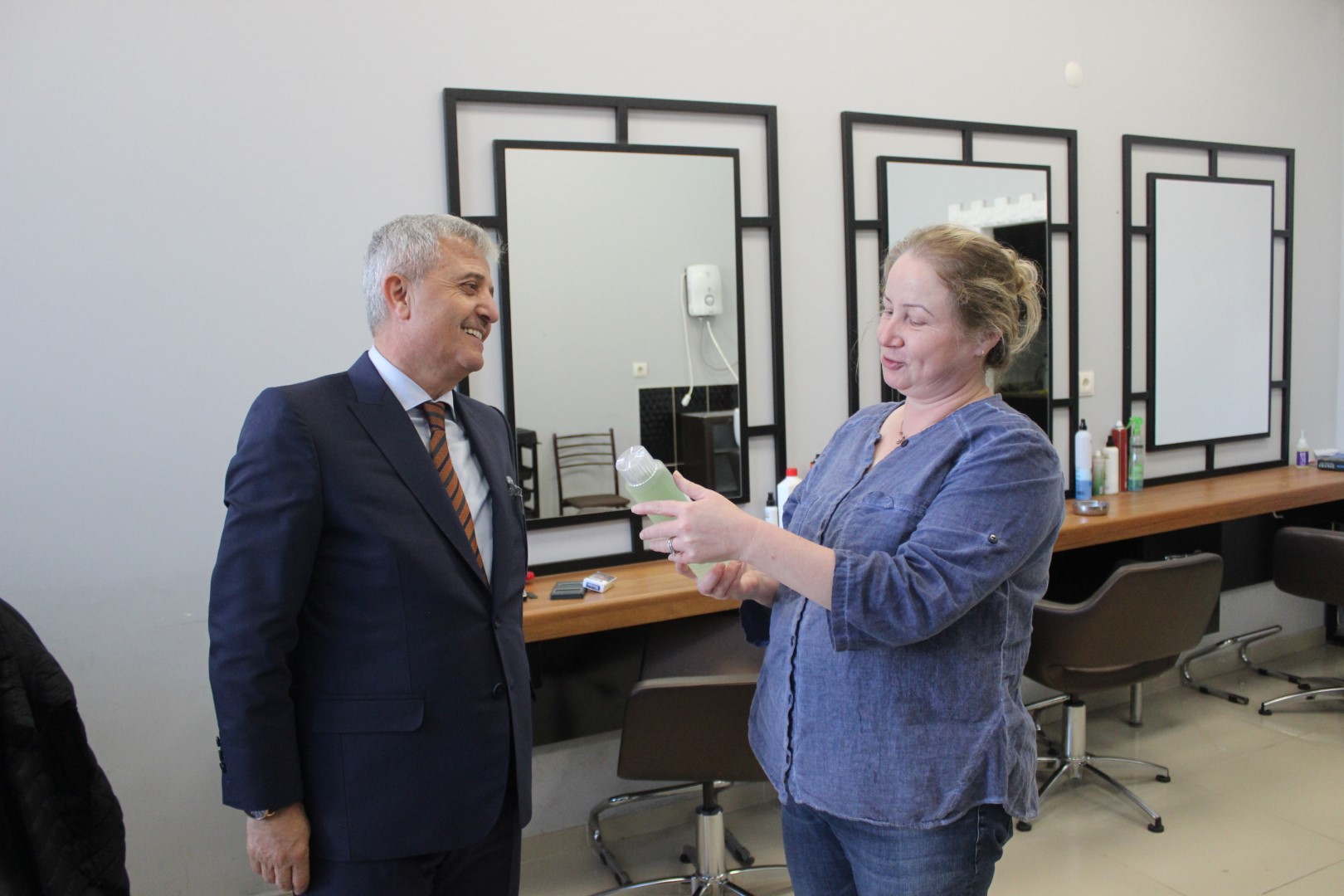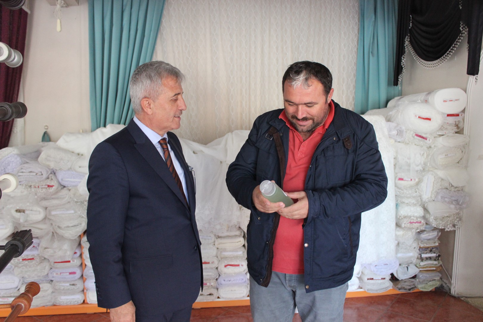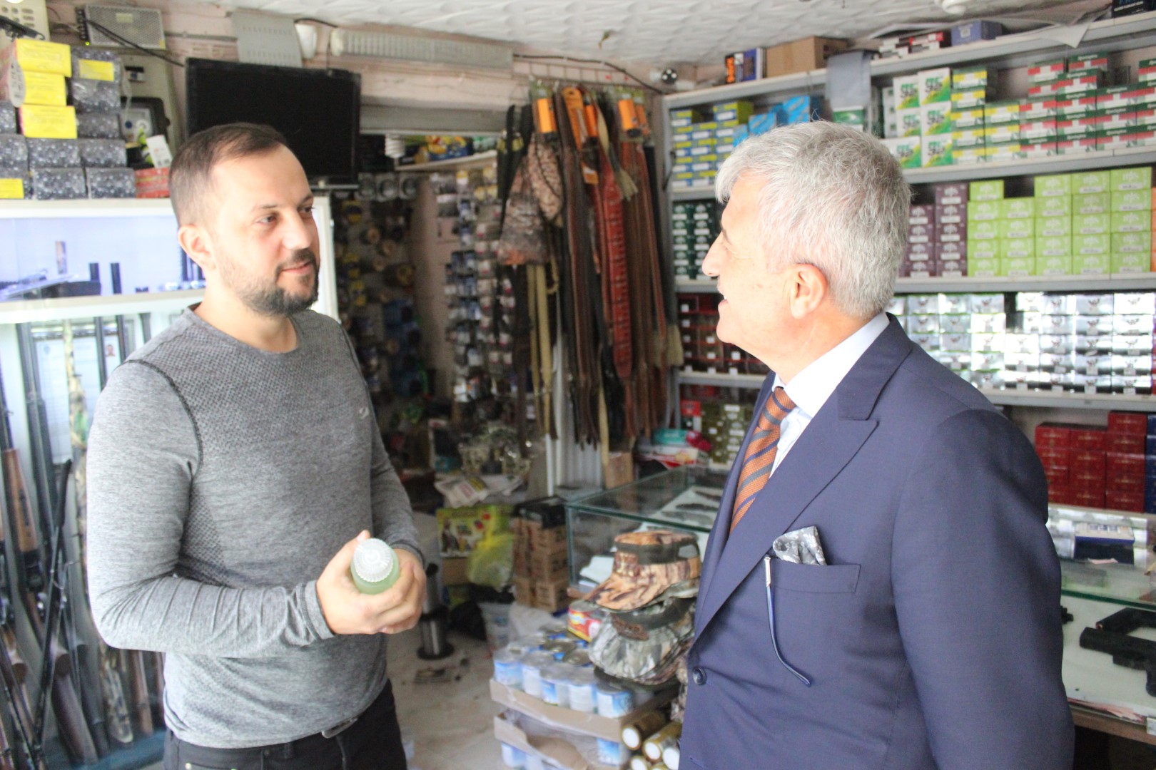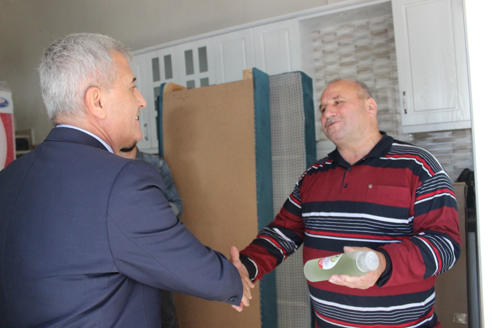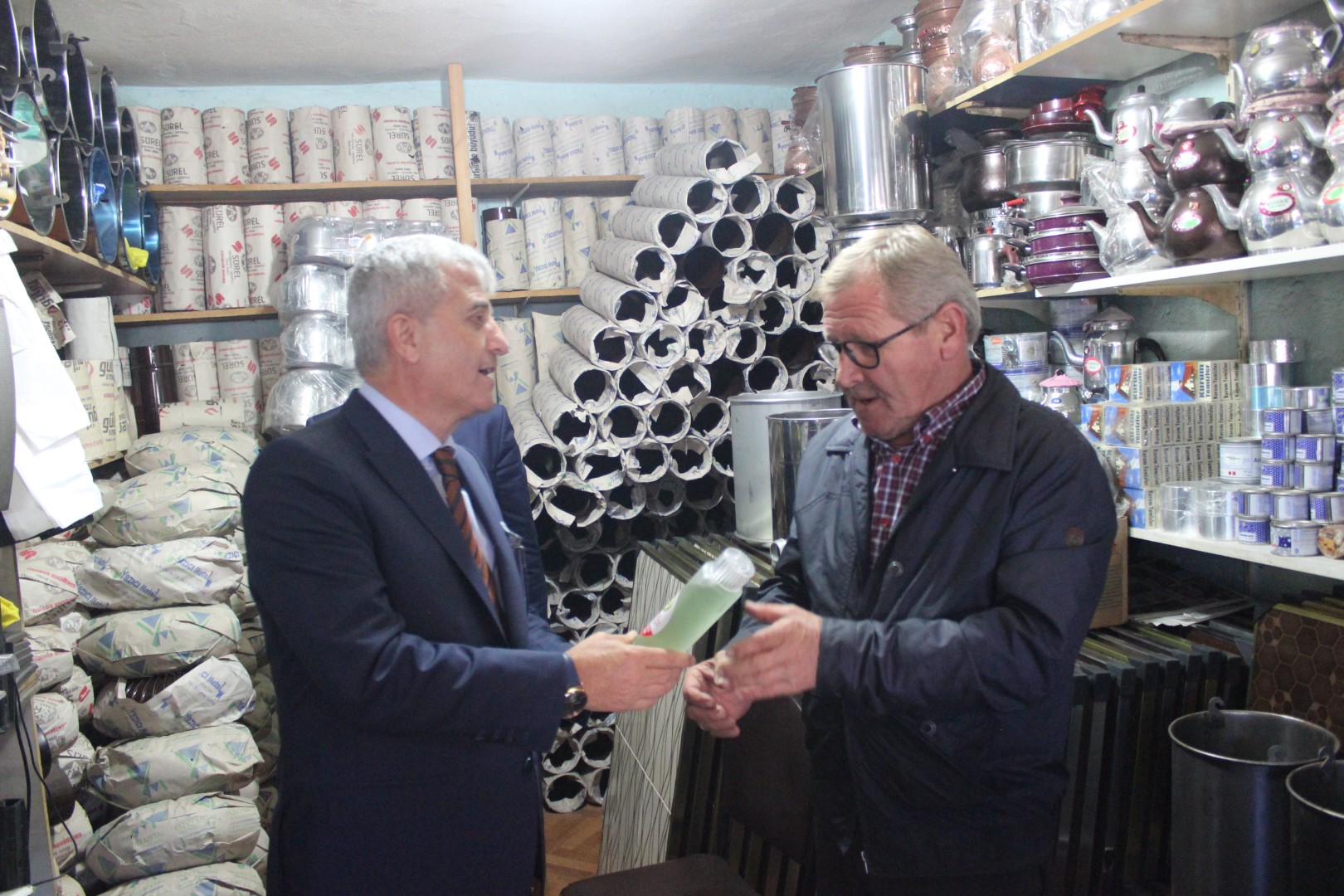 Tüm esnafları tek tek dolaşan Belediye Başkanı Ahmet Soğuk, esnaflara kolonya dağıtarak, Cumhuriyet Bayramı’nı kutladı.