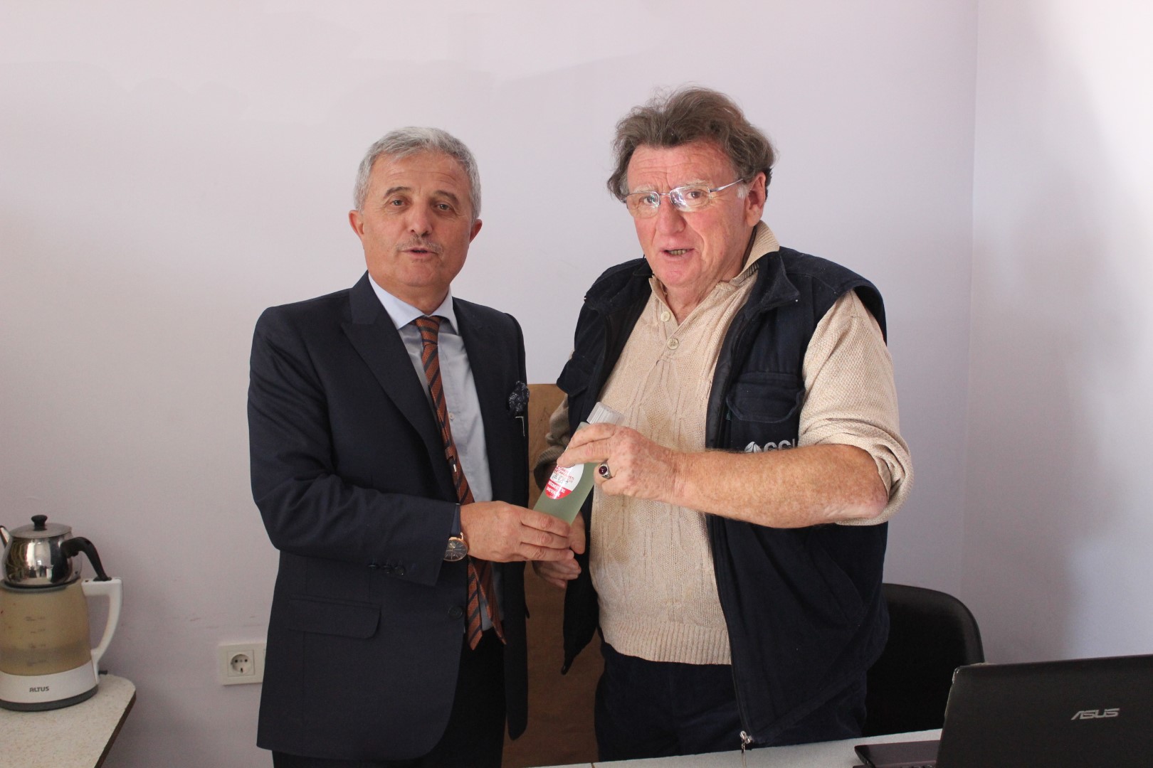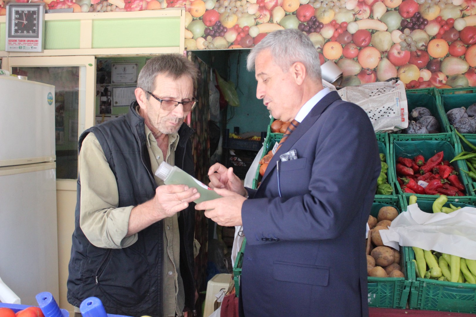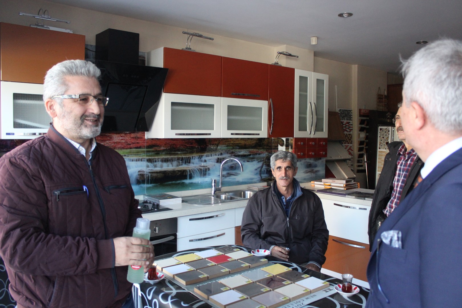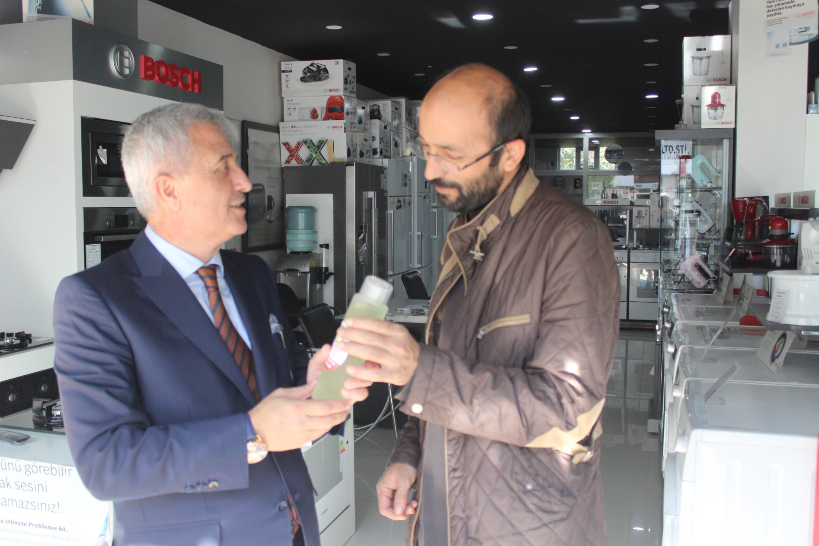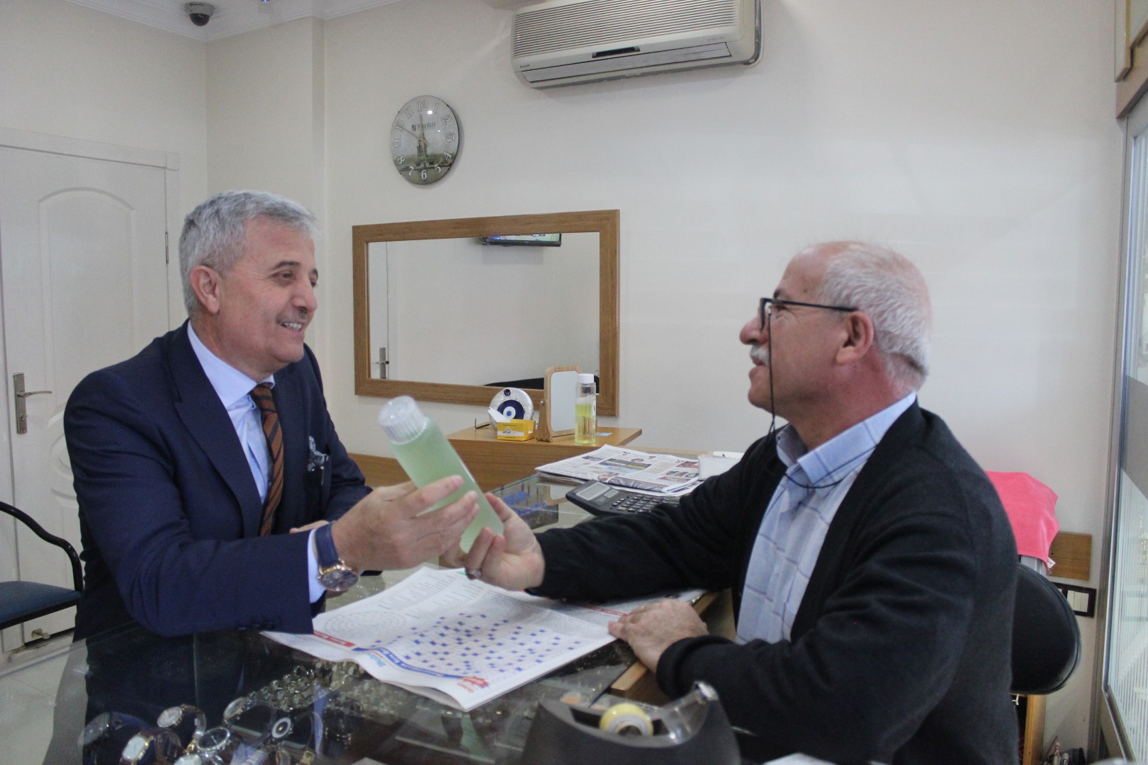 Tüm esnafları tek tek dolaşan Belediye Başkanı Ahmet Soğuk, esnaflara kolonya dağıtarak, Cumhuriyet Bayramı’nı kutladı.