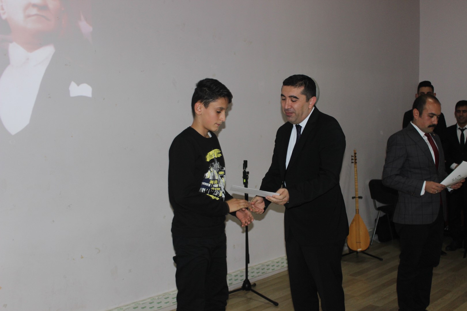Buradaki törenin ardından Atatürk’ü anma programı saat 9.30’da Halit Narin İlköğretim Okulu konferans salonunda sürdü.