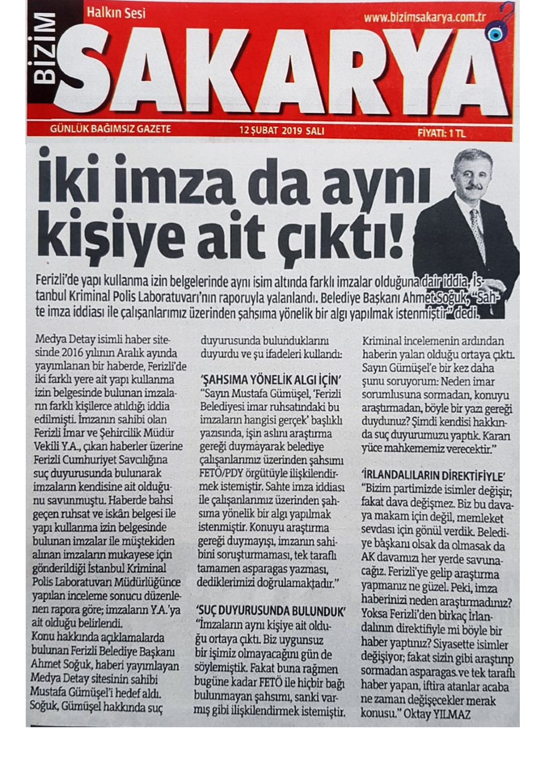 İKİ İMZADA AYNI KİŞİYE AİT ÇIKTI