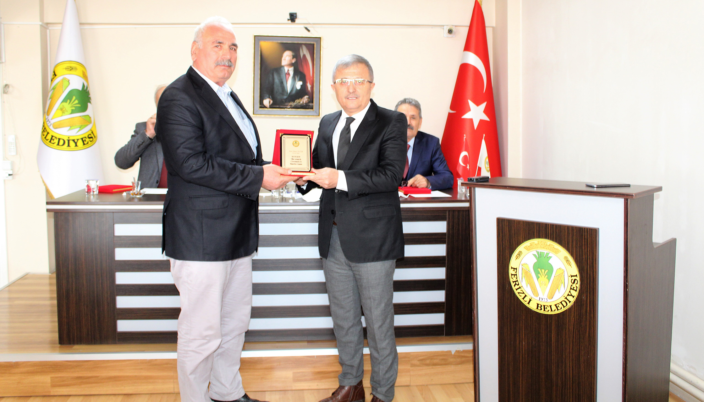 Meclis üyeleri adına meclisin en yaşlı ismi Bahattin Sözer, Belediye Başkanı Ahmet Soğuk’a 10 yıldır yaptığı güzel hizmetler anısına plaket takdim etti.
