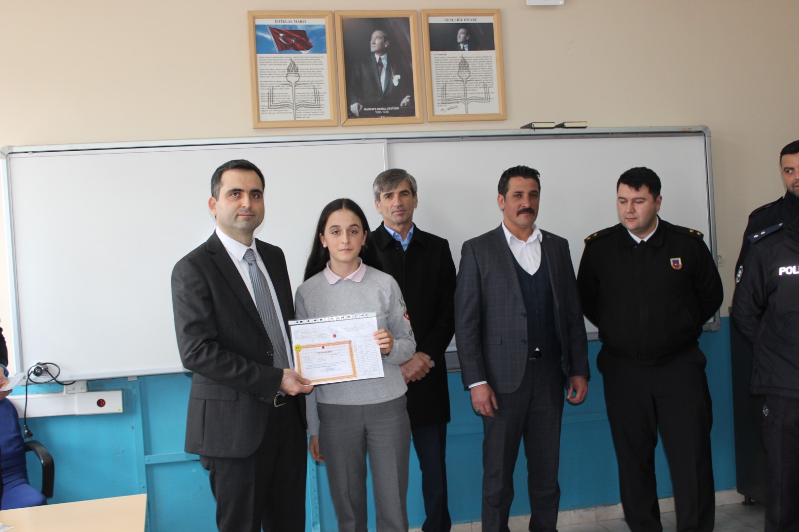 Öğrencilere karne veren ve sevinçlerine ortak olan Kaymakamımız Bahattin Alp Arslanköylü ise “Bugün bu sıralarda oturan öğrencilerimiz yarınlarımıza yön verecekler. Her türlü bilgi birikim ve donanımıyla çağın gereksinimlerine uygun şekilde yetişen evlatlarımız aydınlık Türkiye’nin geleceğidir. Özellikle eğitim öğretim kalitesinin artması ve fiziki ortamların iyileştirilmesi, yeni okul binalarının yapılması eğitim standartlarını en üst seviyeye ulaştırmıştır. Bu sıralarda eğitim öğretim gören evlatlarımız yarın ülkenin dört bir yanında görev alacaklar ve ülkemizi yönetecekler” dedi.