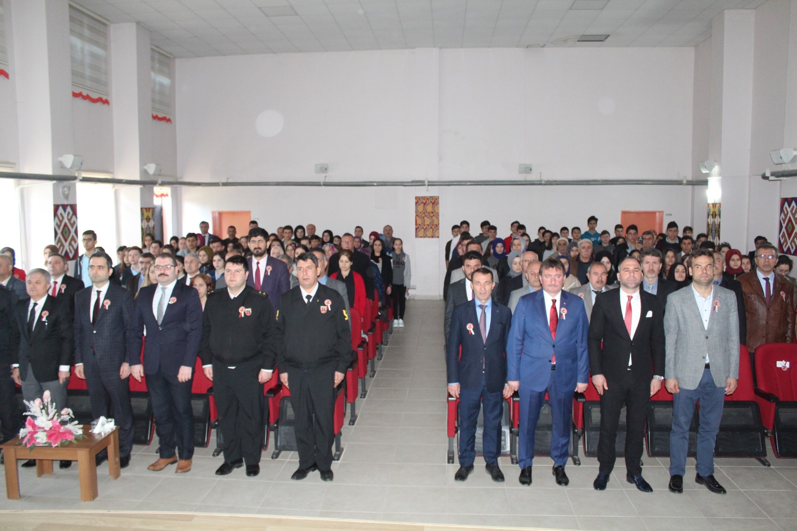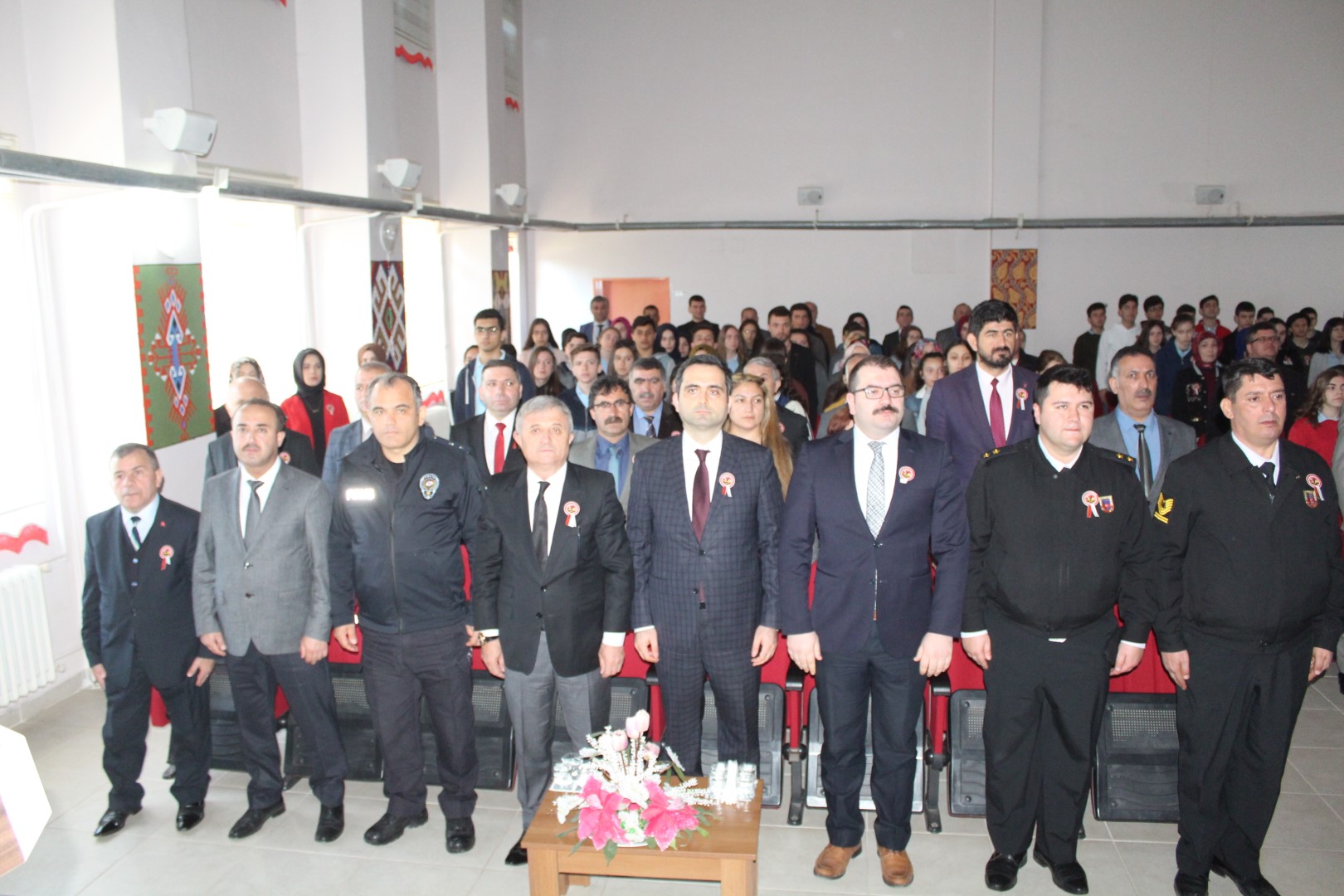Buradaki törenin ardından Çanakkale Zaferi ve Şehitler Günü programı saat 10.30’da Halit Narin Okulu konferans salonunda devam etti.