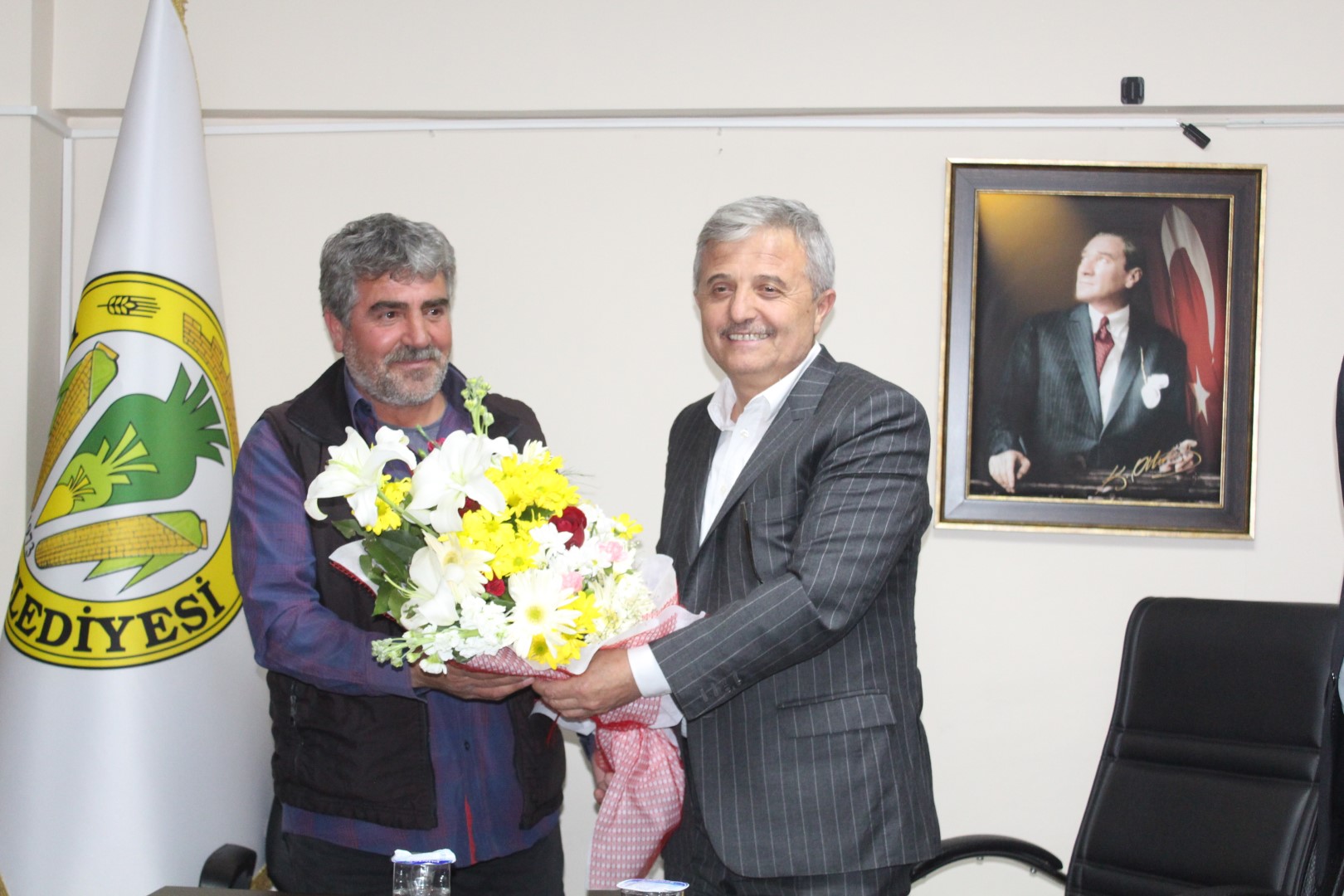 Duygusal anların yaşandığı veda programında personel, Belediye Başkanı Ahmet Soğuk’a çiçek ve tablo takdim etti.
