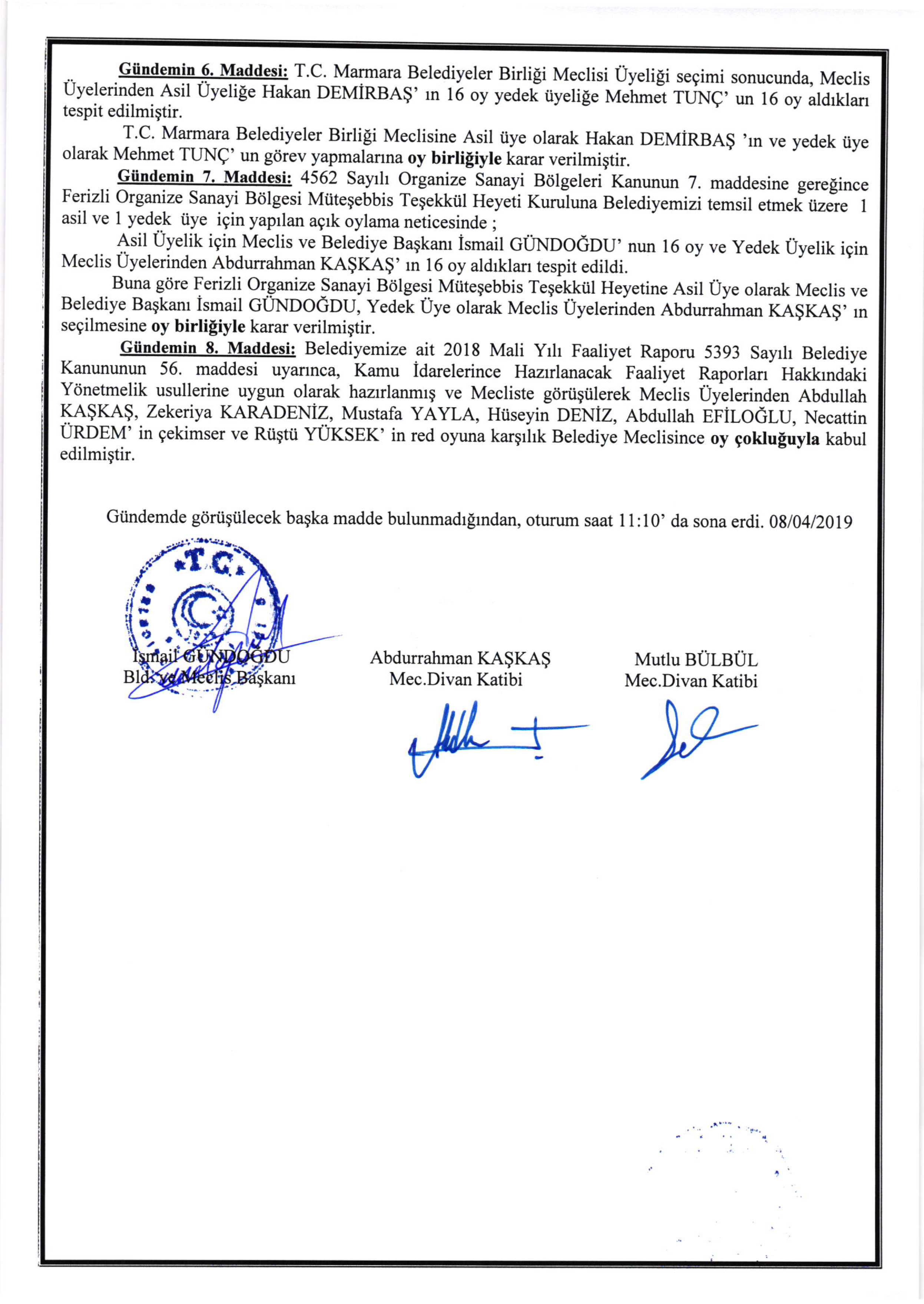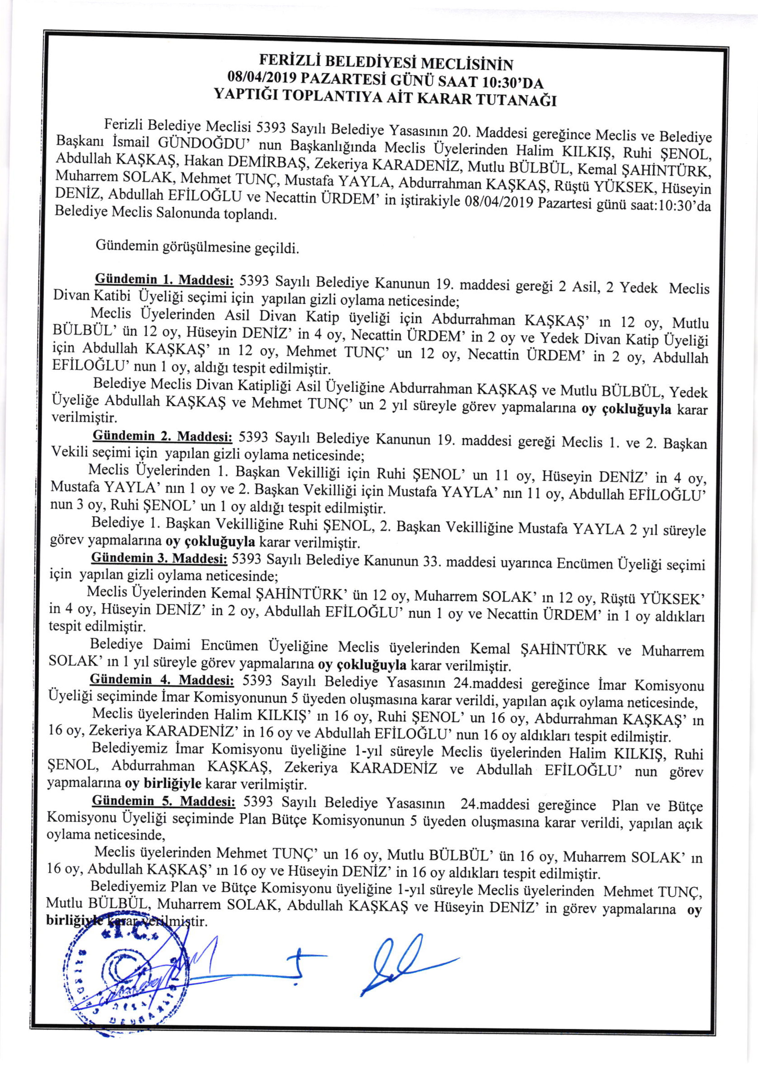 Ferizli Belediyesi Nisan Ayı Meclis Karar Özeti (08.04.2019)