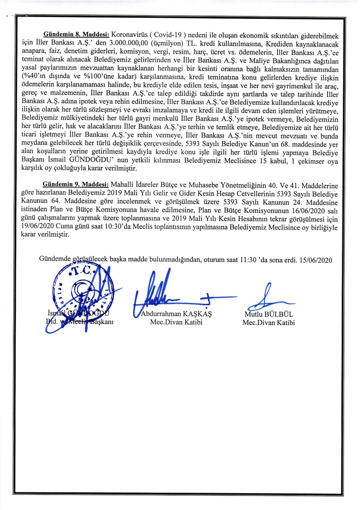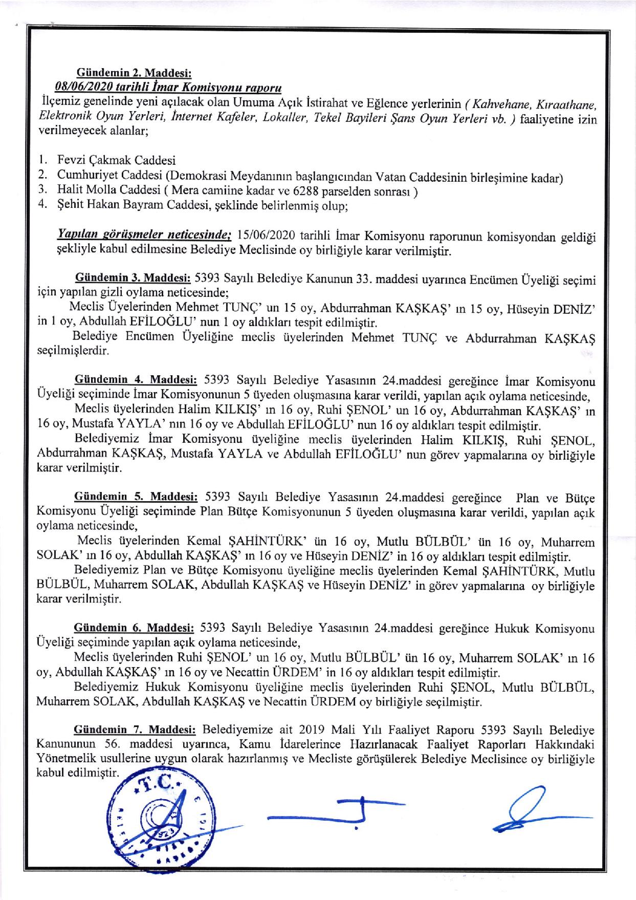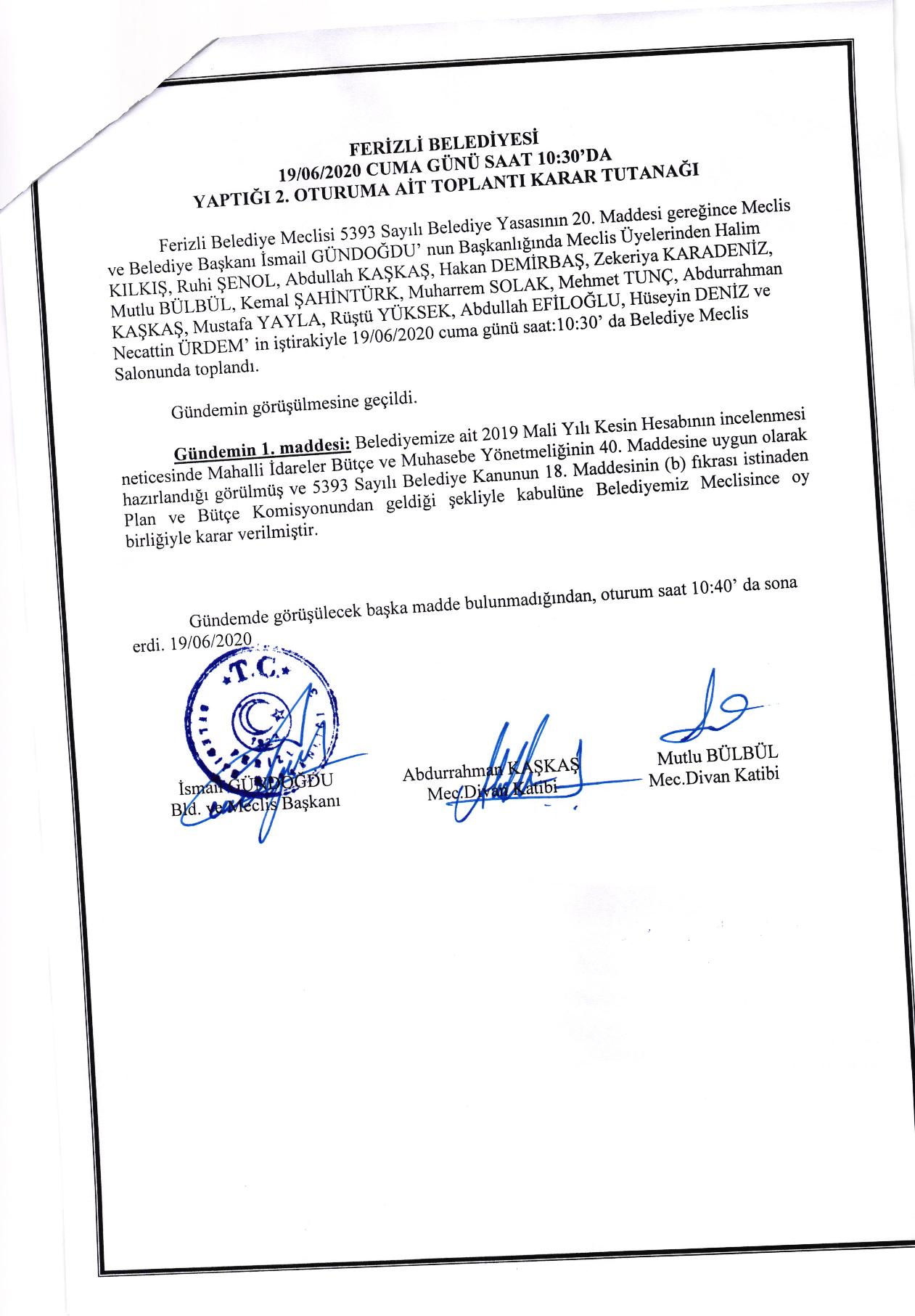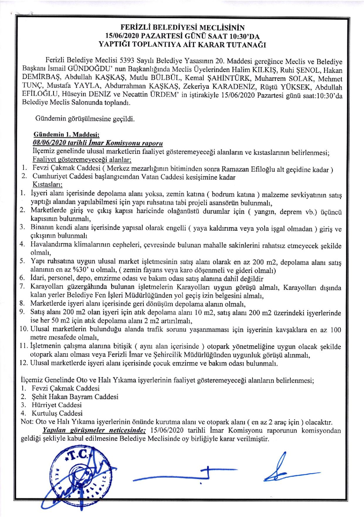 Ferizli Belediyesi Haziran Ayı Meclis Kararları (15.06.2020 Pazartesi)