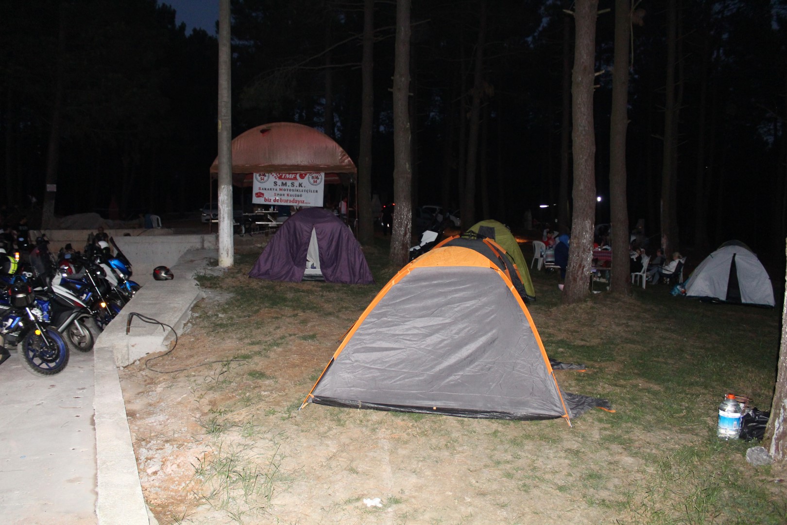 Onlarca motosikletçinin katıldığı kamp, çam ağaçlarının arasına kuruldu. Doğa ile iç içe geçen unutulmaz manzaralar ortaya çıktı.