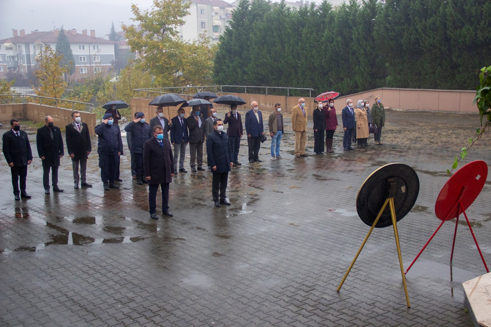 Ferizli’de sabahın erken saatlerinde başlayan yoğun yağmur, Ferizlili vatandaşların Ata’sına olan özlem ve sevgisine mani olmadı. Oldukları yerde saygı duruşuna katılan vatandaşlar ıslanma pahasına da olsa Ata’sına olan özlem ve sevgisini bir kez daha gösterdiler.