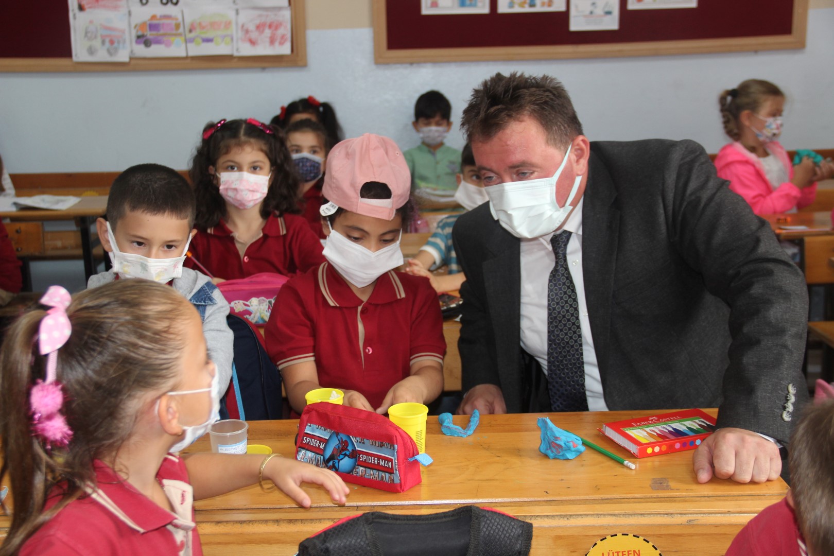 Şehit Hacı Uzun İlkokulu Müdürü Şenay Türk eşliğinde okula ilk adım atan birinci sınıf öğrencilerini ders başı ziyaret eden Başkanımız Gündoğdu, öğrencilere ve öğretmenlerine yeni eğitim-öğretim yılında sağlık ve başarı diledi. Pandemi sürecinin devam ettiğini belirten Başkanımız Gündoğdu, öğrencilere maske, mesafe ve hijyen kurallarına uyulmasının önemine değindi. Çocukların sağlıklı ortamda kaliteli eğitim almaları için ellerinden gelen tüm desteği belediye olarak vermeye hazır olduklarını ifade eden Başkanımız Gündoğdu, “veliler, öğrenciler ve öğretmenler bugün çok heyecanlı. Bizler de bugün bu heyecana ortak oluyoruz. Biz de gerekli hazırlıkları ve çalışmaları yaparak okulların temizliği, dezenfektan gibi önlemlerini aldık. Çocuklarımızın sağlığı ve hassasiyeti bizim için çok önemli. Onların eğitimleri sorunsuz şekilde ilerlesin diye elimizden gelen her şeyi yapacağız” diye konuştu.