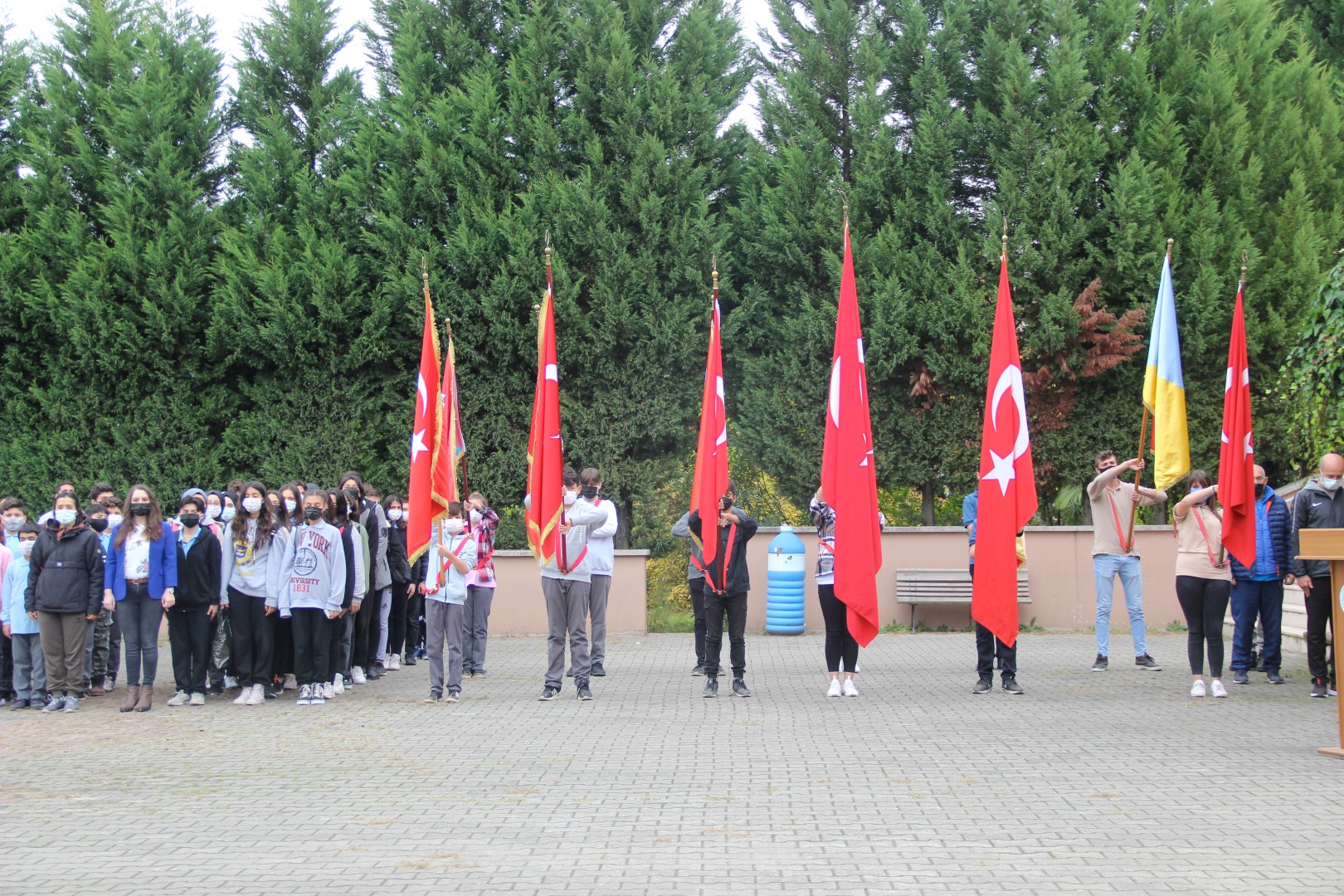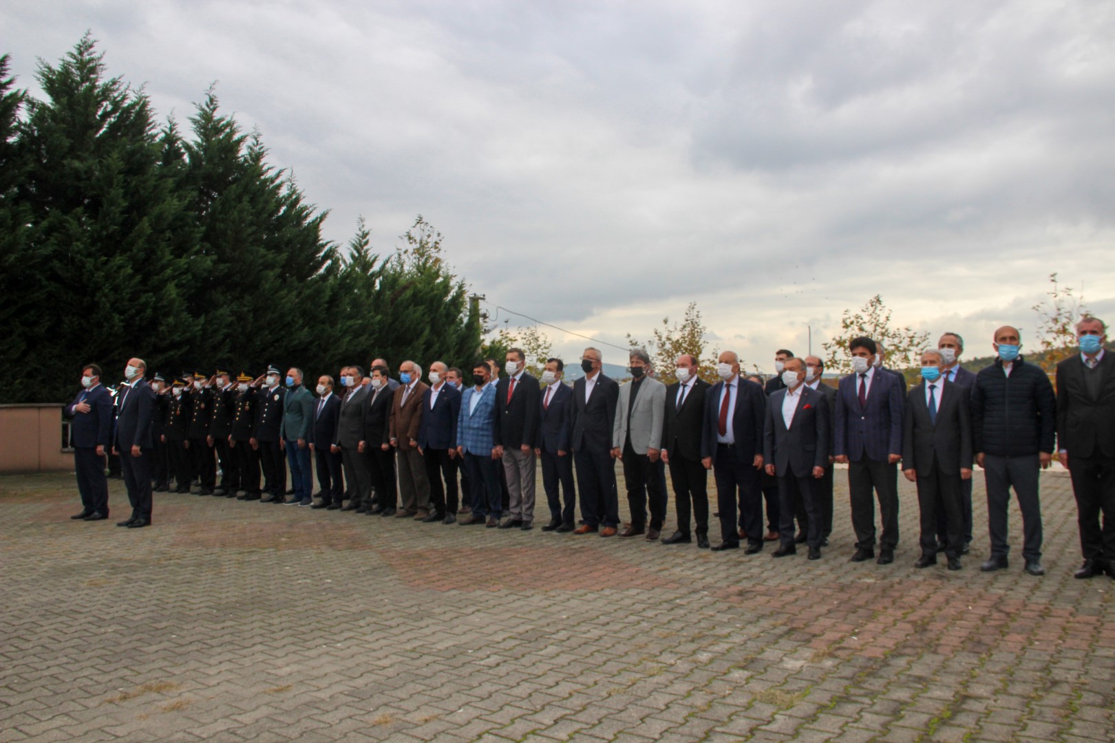 Kaymakamlık Makamı ve Belediye Başkanlığı çelenklerinin sunulmasının ardından saygı duruşunda bulunuldu ve İstiklal Marşımızın okunması ile tören sona erdi.