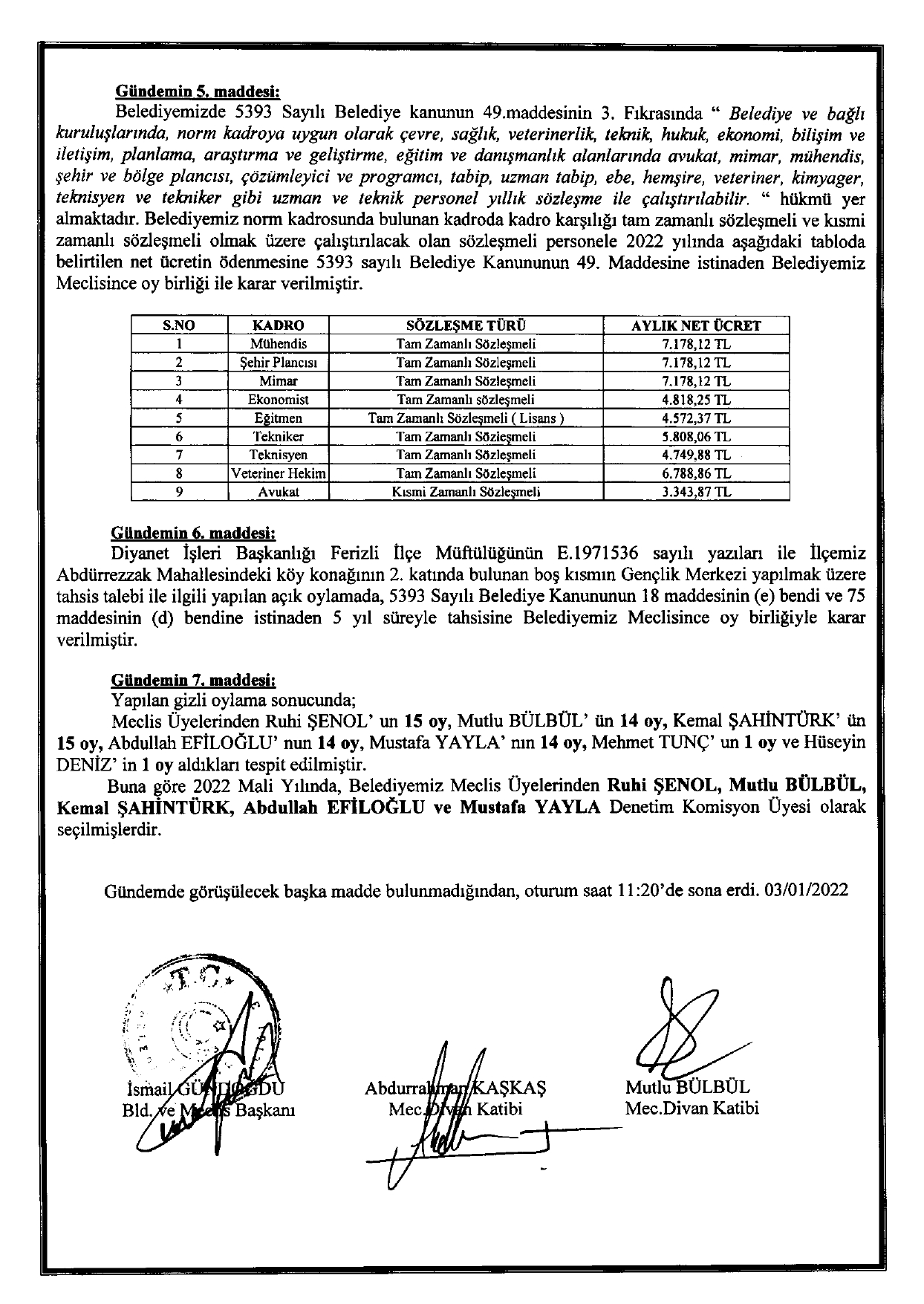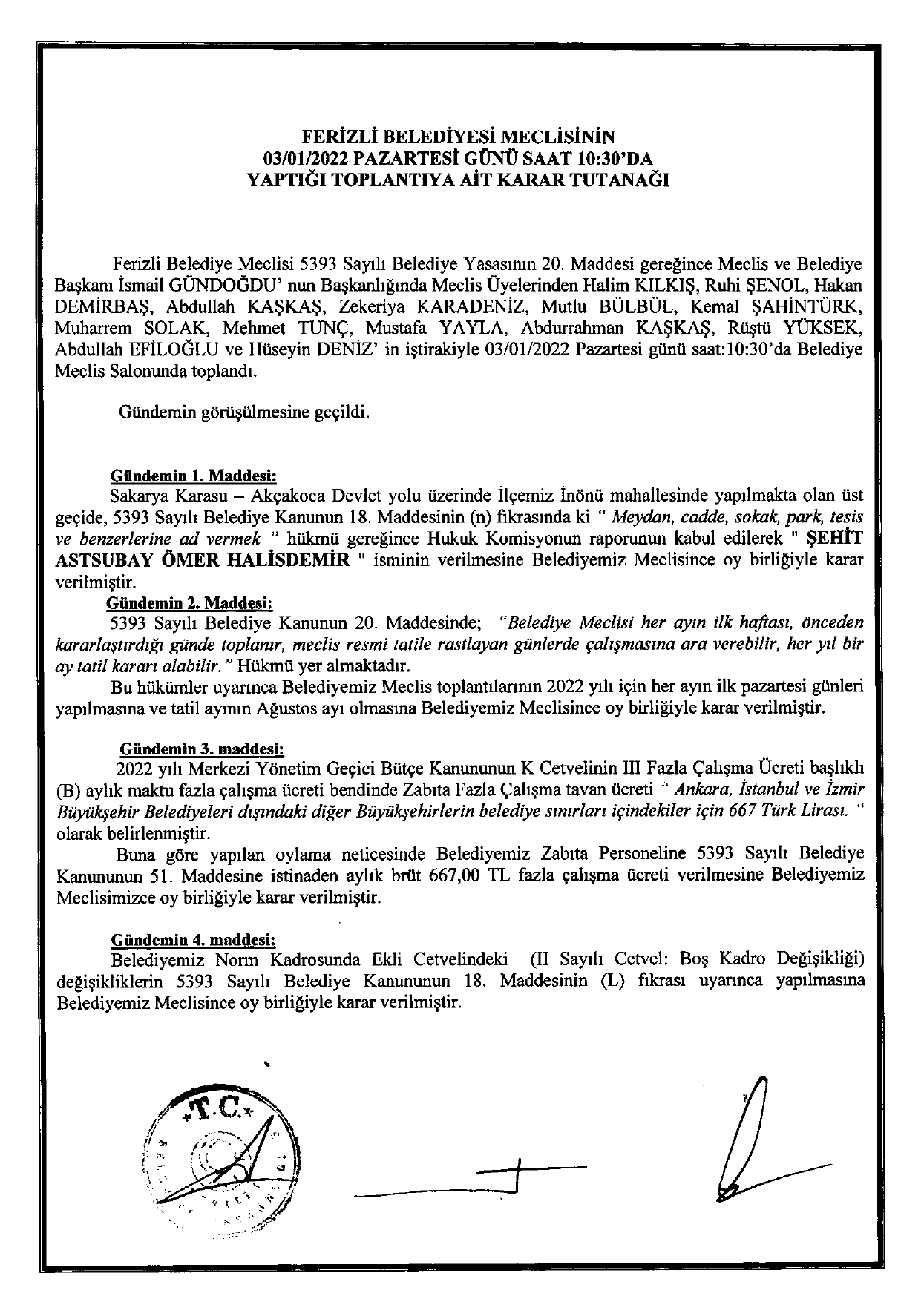 Ferizli Belediyesi Ocak Ayı Meclis Kararları (03.01.2021 Pazartesi)