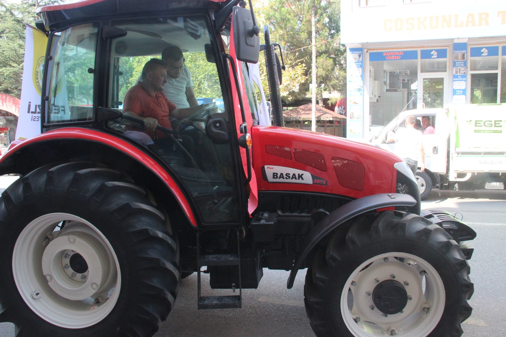 Sanko Holding – Başak Traktör tarafından hibe edilen traktörün teslimi belediye hizmet binası önünde gerçekleştirildi. Gurur ve mutluluğunu kamuoyuyla paylaşan Başkan Gündoğdu, şöför koltuğuna oturarak ilçe merkezinde tur gerçekleştirdi.