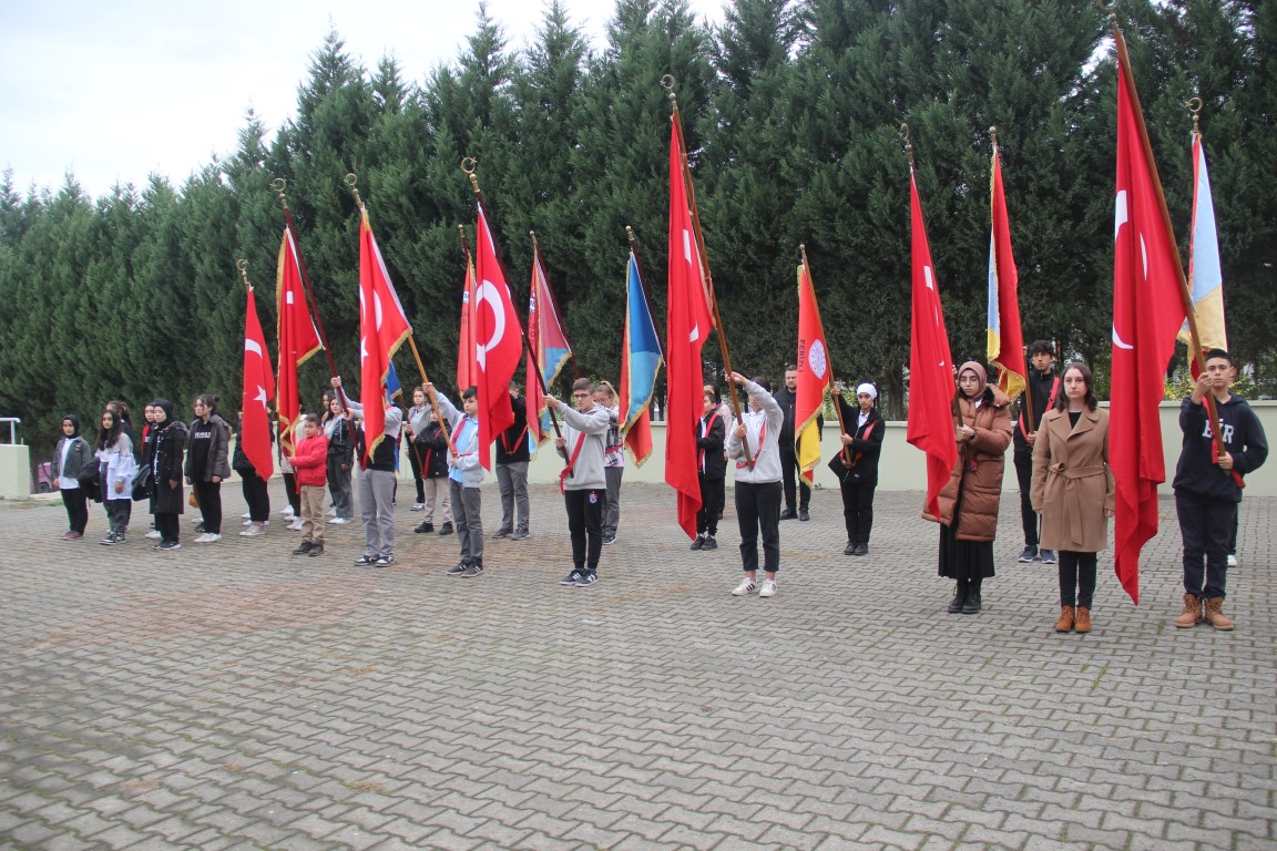 Ferizli İlçe Milli Eğitim Müdürü Soner Yılmaz'ın çelenk sunmasının ardından saygı duruşunda bulunuldu ve İstiklal Marşı okundu.
