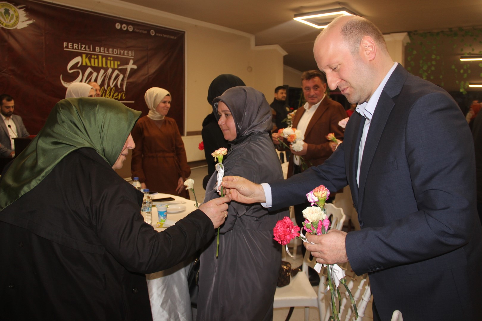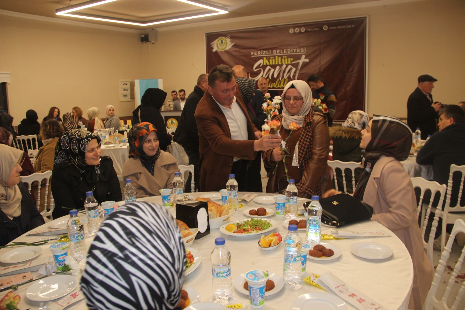 Belediye tarafından Ferizli Belediyesi Sosyal Tesislerinde düzenlenen 8 Mart dünya emekçi kadınlar günü programına; Ferizli İlçe Kaymakamı Hasan Balcı, Ferizli Belediye Başkanımız İsmail Gündoğdu, protokol üyeleri, ilçedeki kadın esnaflar ve aileleri katıldı.
