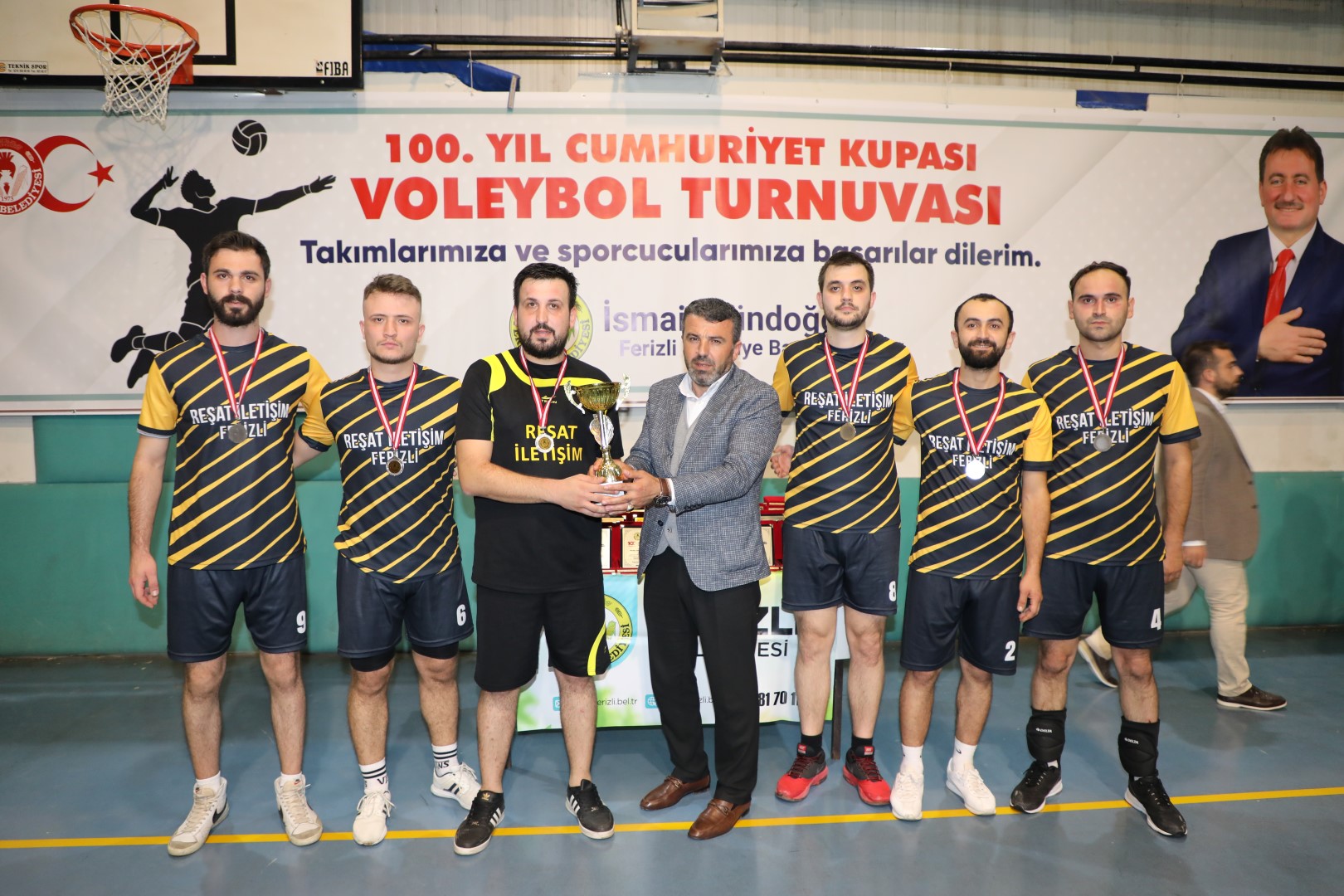 Ferizli Belediye Başkanımız İsmail Gündoğdu, heyecanın dorukta olduğu turnuva töreninde yaptığı konuşmada sporculara, yöneticilere ve her gece salonu hıncahınç dolduran seyircilere teşekkür etti. Turnuvanın birlik ve beraberlik duygusunu güçlendirdiğine dikkat çeken Başkanımız Gündoğdu "Bu özel kupayı, cumhuriyetimizin kuruluşunun 100. yılı anısına ithaf ettik. Sahada yaşanan her set ve her sayı, bu topraklarda bir asırdır var olan cumhuriyet ruhunun bir yansıması olarak karşımıza çıktı. Burada yarışan her sporcu, o büyük mirası temsil ediyor. İlçemizin dört bir yanından gelen takımlar, voleybol heyecanını zirveye taşıyarak bize birlik ve beraberliğin kıymetini yeniden anımsattılar," dedi.