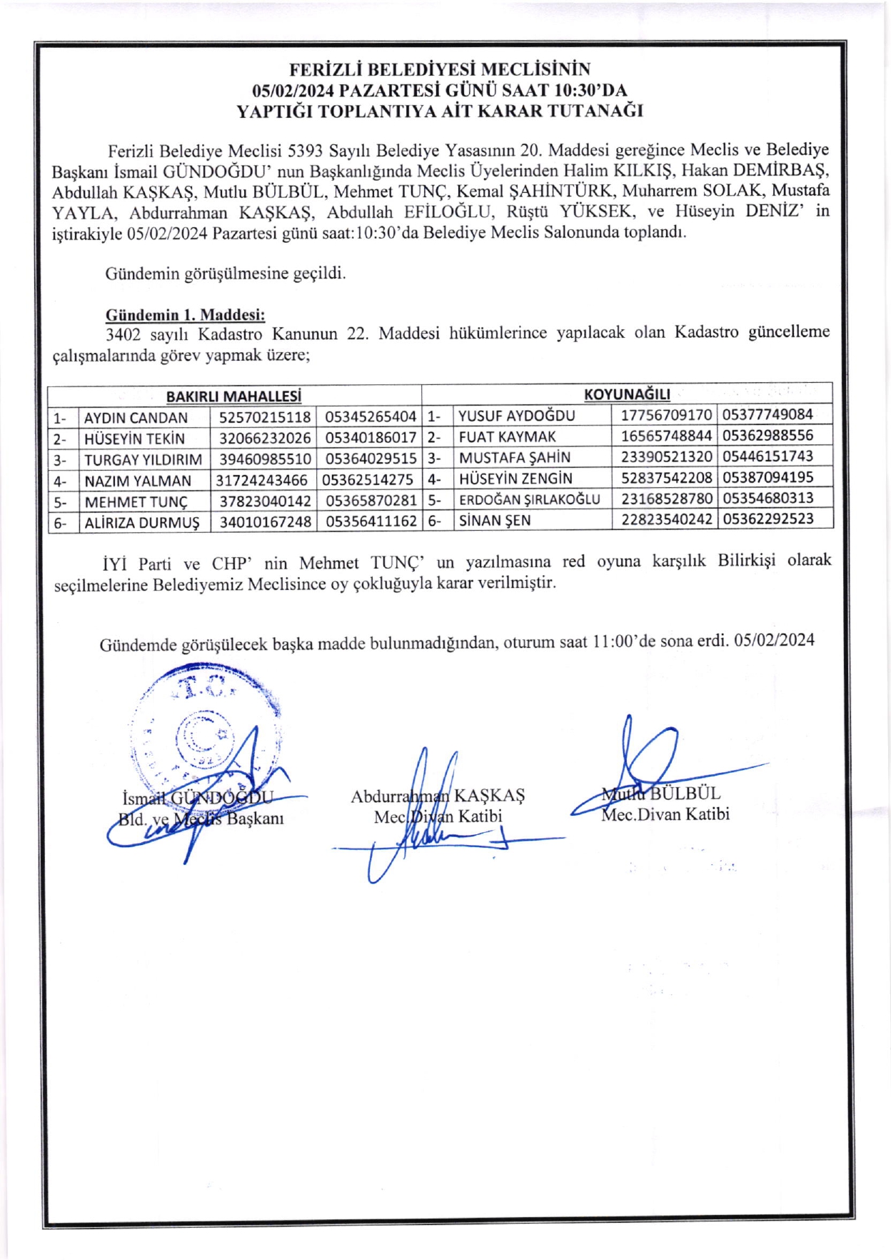 Ferizli Belediyesi Şubat Ayı Meclis Kararları (13.02.2024 Salı)