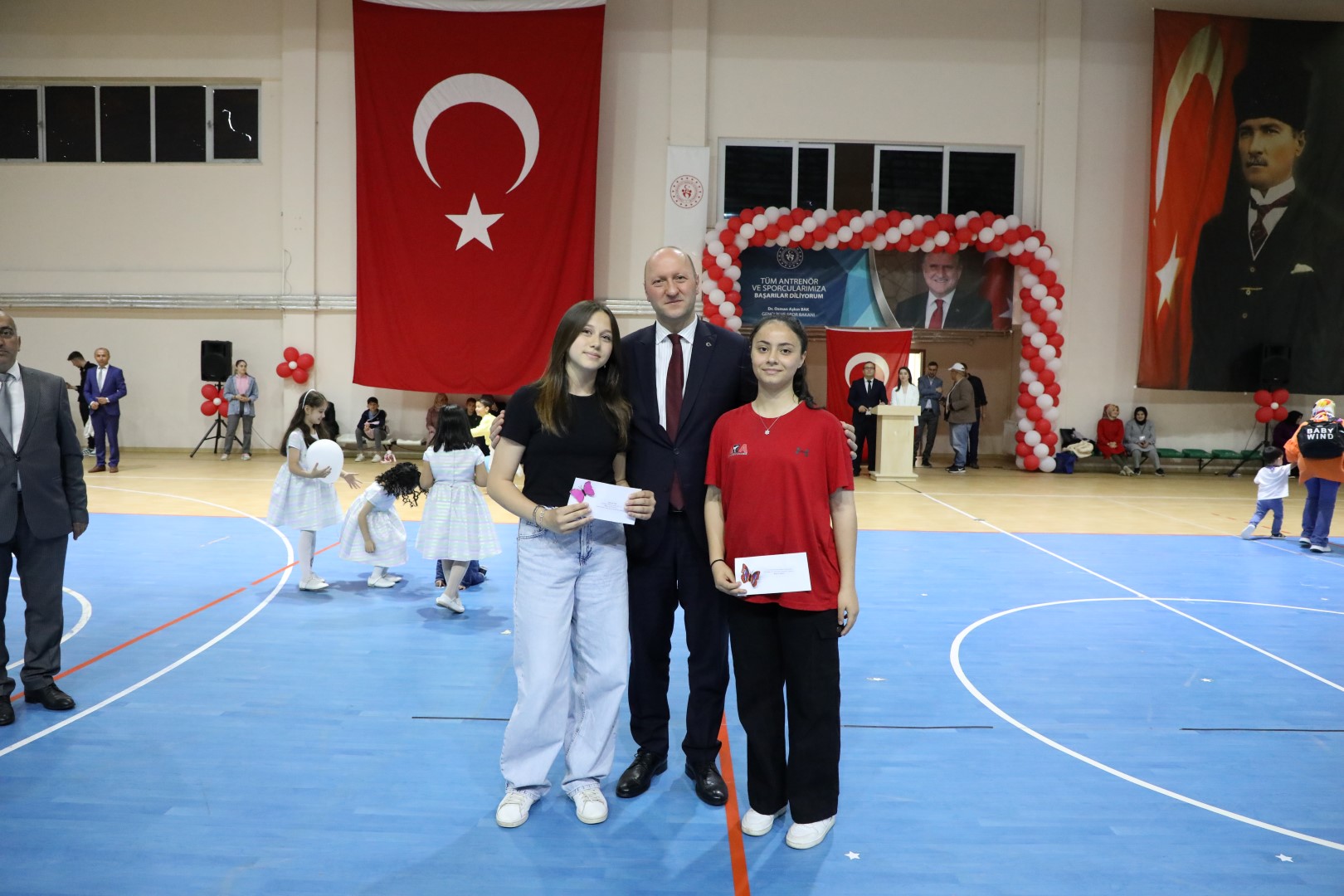 Programın sonunda, 23 Nisan Ulusal Egemenlik ve Çocuk Bayramı kapsamında çeşitli yarışmalarda dereceye giren öğrencilere ödülleri, Kaymakam Hasan Balcı ve Belediye Başkanı Mehmet Ata tarafından verildi.