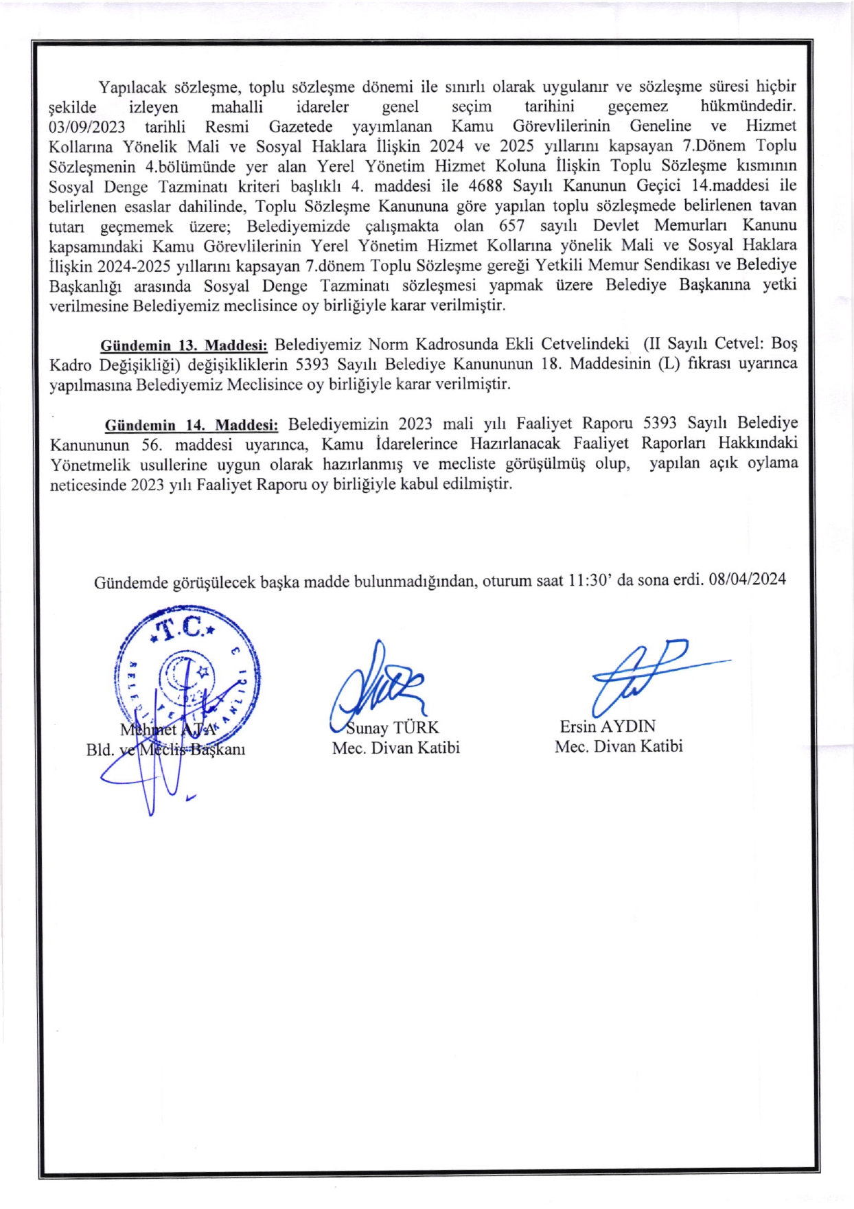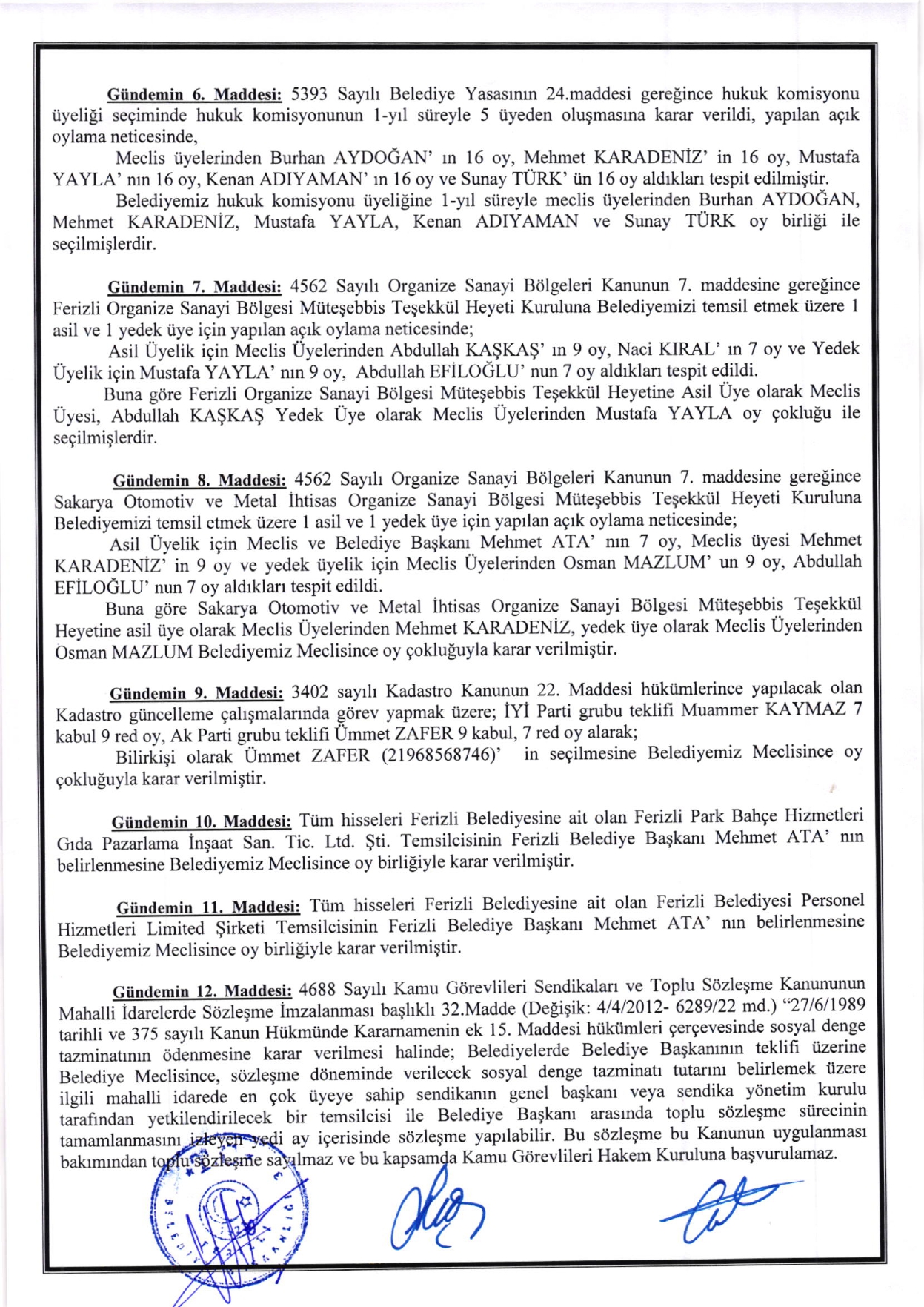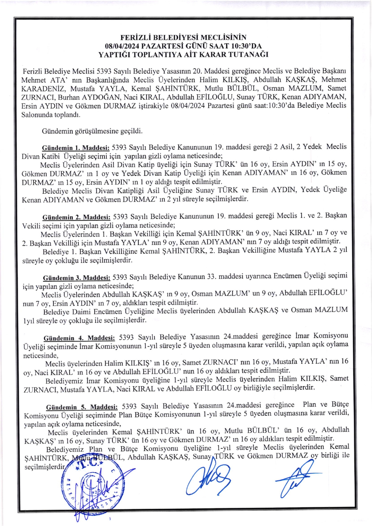 Ferizli Belediyesi Nisan Ayı Meclis Kararları (19.04.2024 Cuma)
