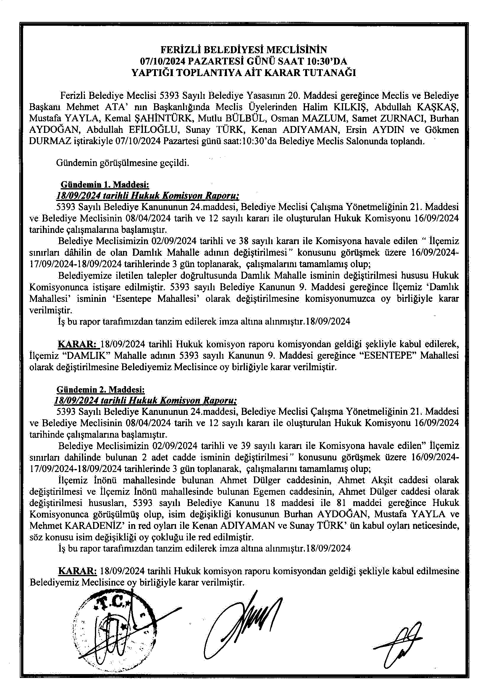 Ferizli Belediyesi Ekim Ayı Meclis Kararları (16.10.2024 Çarşamba) Ferizli Belediyesi Ekim Ayı Meclis Kararları (16.10.2024 Çarşamba) Foto Galeri için tıklayın...