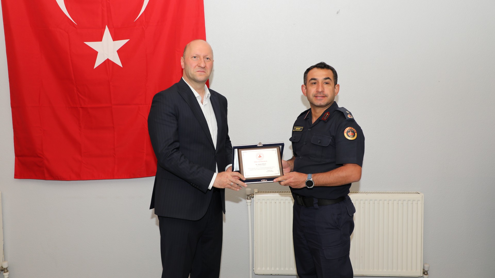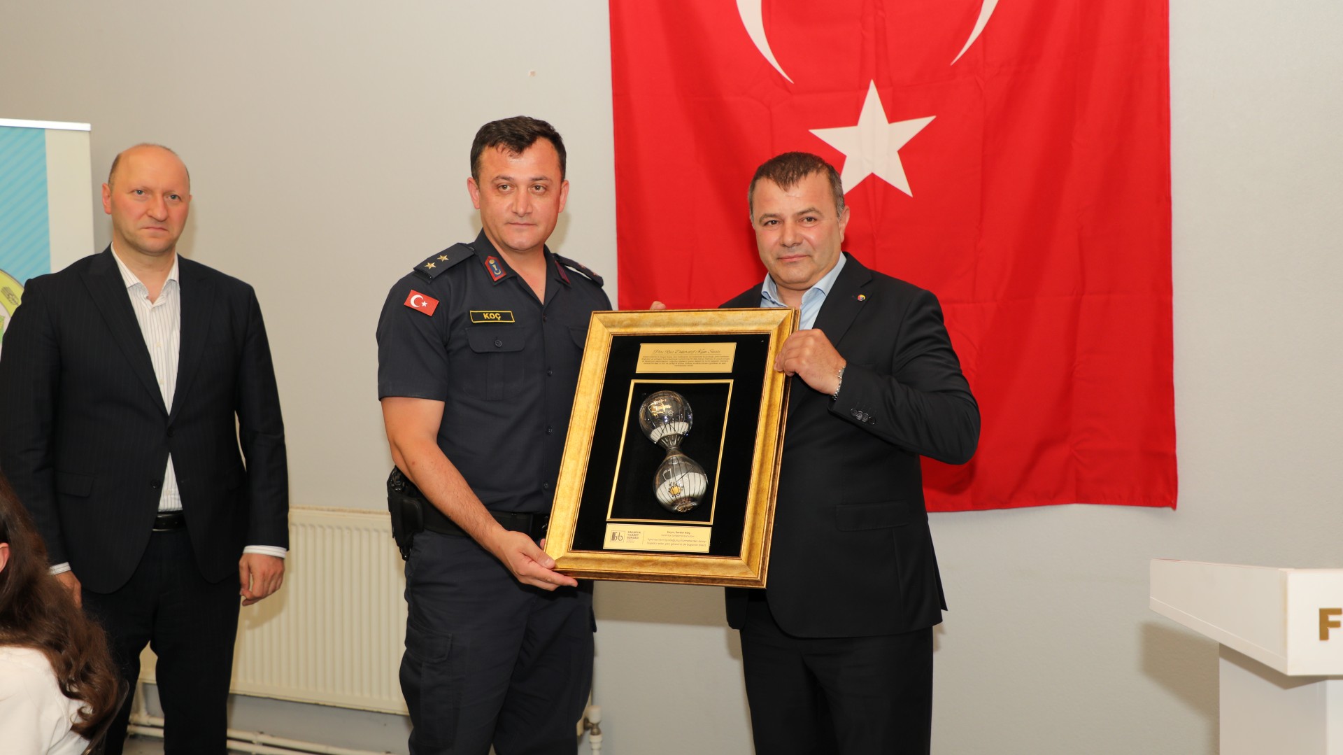 Ayrıca; Ferizli Cezaevi Jandarma Tabur Komutanı Jandarma Binbaşı Durdu Eren kurum müdürleri adına, Muhtarlar Derneği Başkanı Muzaffer Çakır muhtarlar adına, Ferizli Esnaf Odası Başkanı Mehmet Tan ise esnaflar adına Kaymakam Balcı ve Komutan Koç’a teşekkür plaketleri takdim etti.