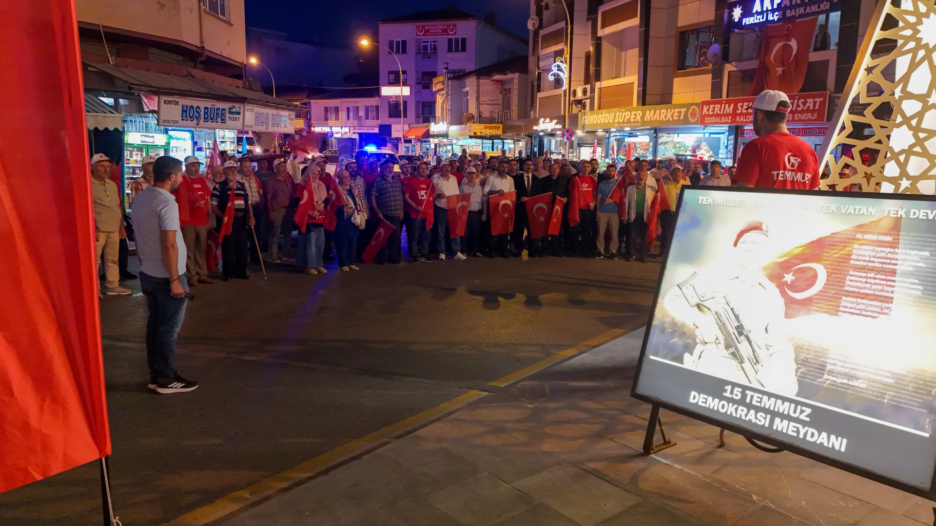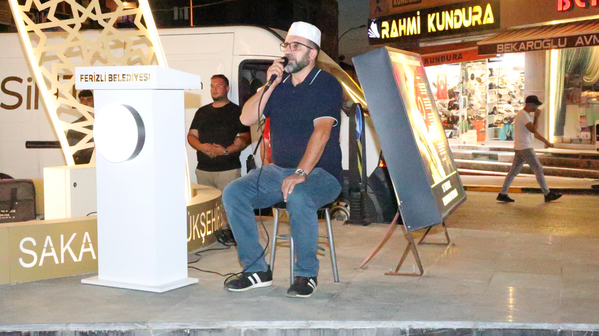 Ferizli Merkez Camii İmam Hatibi Halis Çamoğlu, sunumuyla meydandaki vatandaşlara coşkulu anlar yaşatırken, Kemalpaşa Mahallesi Camii Müezzini Seyfullah Hergül ise okuduğu ilahiyle herkesi duygulandırdı. Etkinlikler, Ferizli Vaizi Halit Işık’ın duasıyla son buldu. Ferizli Belediyesi’nin sunduğu ikramların ardından katılımcılar, Ferizli Belediyesi tarafından sağlanan araçlarla Sakarya Demokrasi Meydanı'na doğru yola çıkarak gece boyunca sürecek etkinliklere katılmak üzere hareket etti.