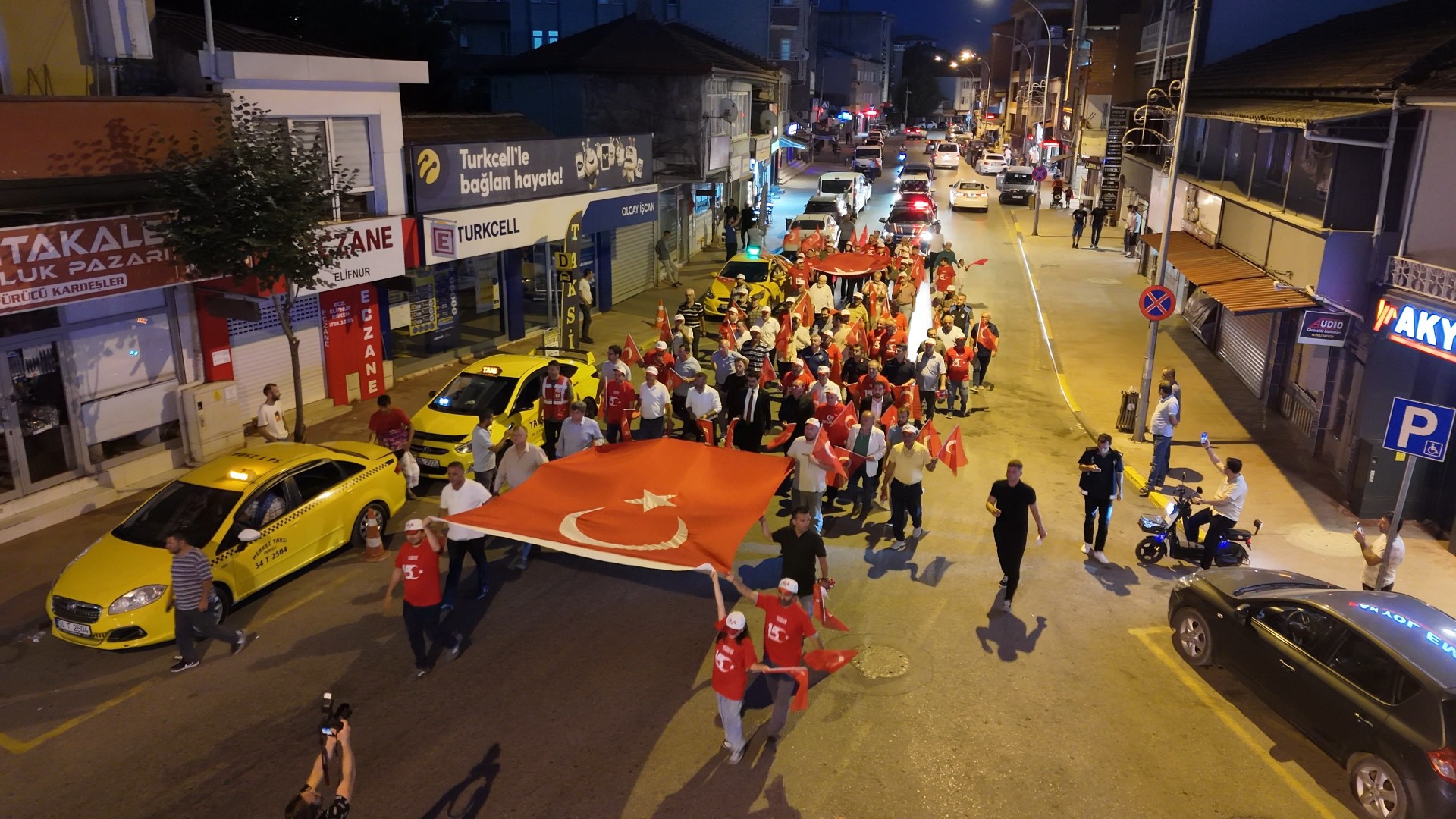 Akşam namazı sonrasında ise Ferizli Merkez Camii önünden başlayarak Ferizli 15 Temmuz Demokrasi Meydanı'na bir yürüyüş düzenlendi. Ferizli Belediyesi tarafından vatandaşlara Türk bayrağı, Zaferin Adı Türkiye temalı tişört ve şapka dağıtıldı. Ellerinde bayraklarla cadde boyunca yürüyen vatandaşlar, FETÖ terör örgütüne lanet yağdırarak demokrasiye olan bağlılıklarını haykırdılar.