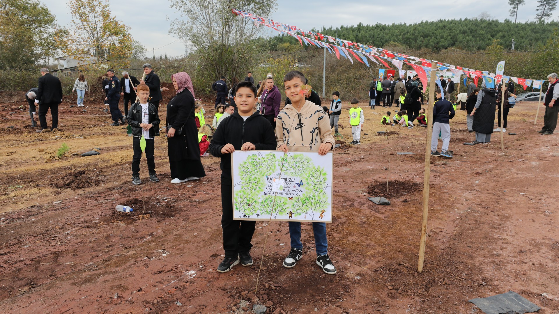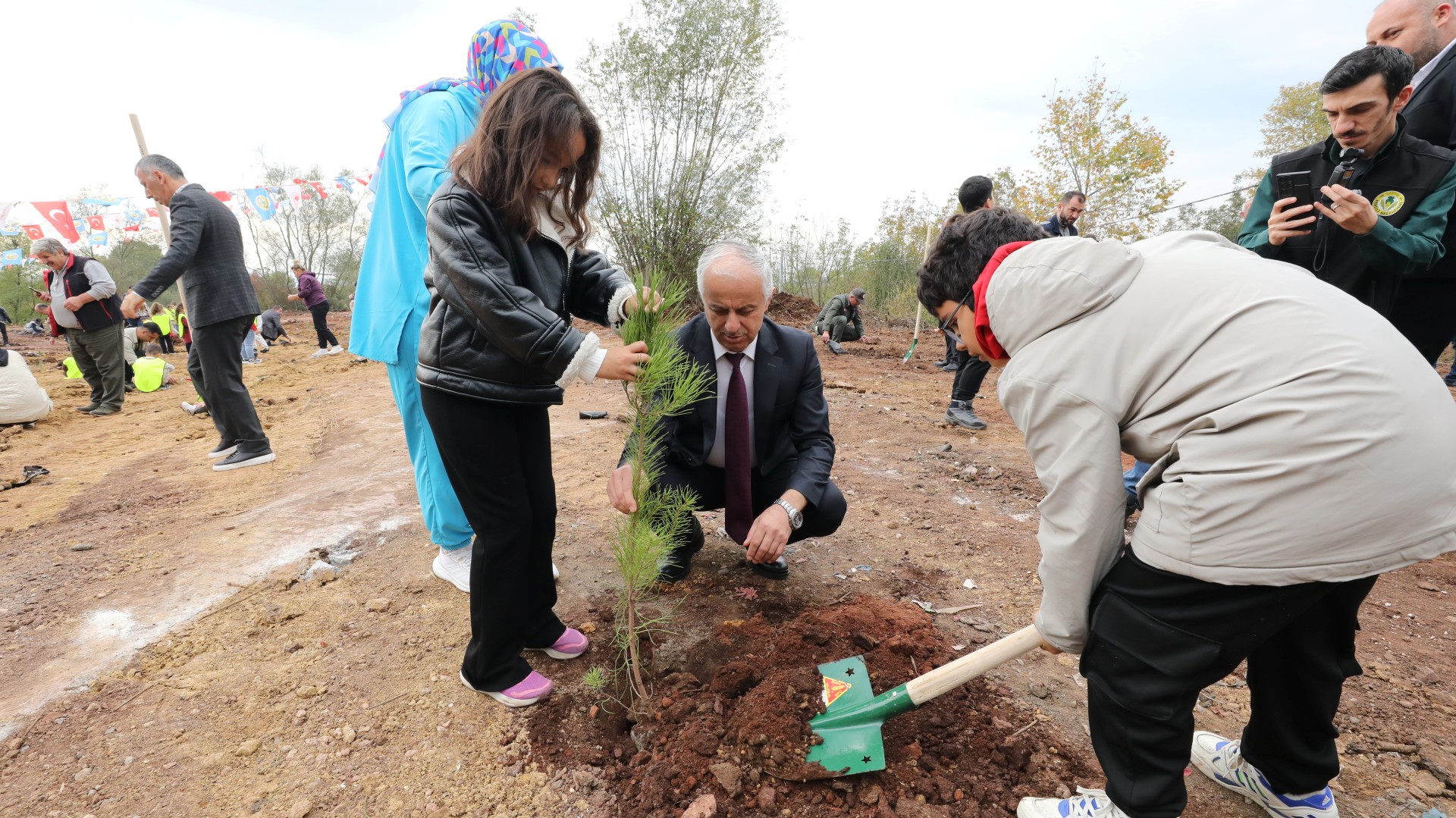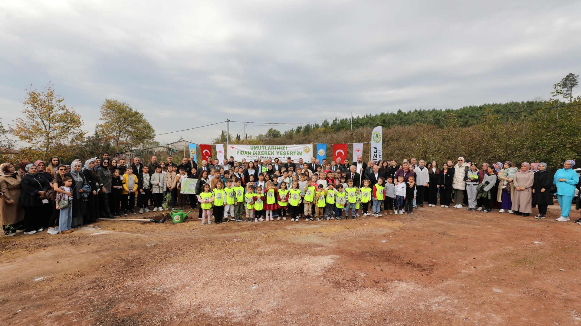 Saatler 11.11'i gösterdiğinde, Sakarya Orman Genel Müdürlüğü tarafından temin edilen 500 fidan, Menderes Bayırı Mevkii'nde toprakla buluşturuldu. Geleceğin teminatı olan minik öğrenciler büyük bir coşkuyla etkinliğe katılarak fidanlarını dikti. Öğrenciler, diktikleri fidanların üzerine kendi elleriyle "Geleceğimiz için", "Yeşil yarınlar için", "Nefes almak için" gibi anlamlı sözler ve dilekler yazarak etkinliğe anlam kattı.