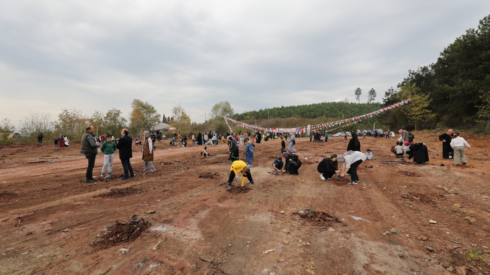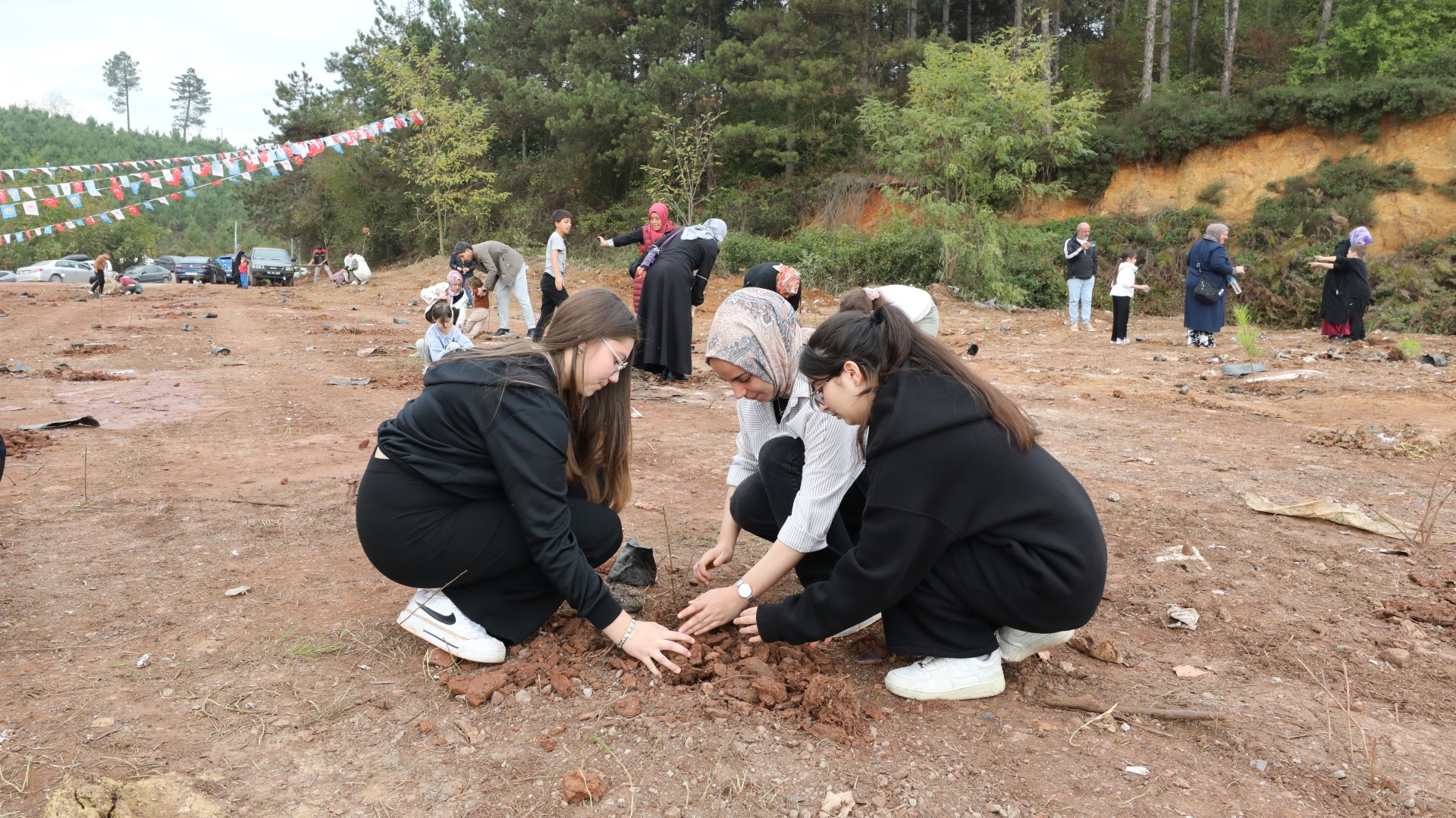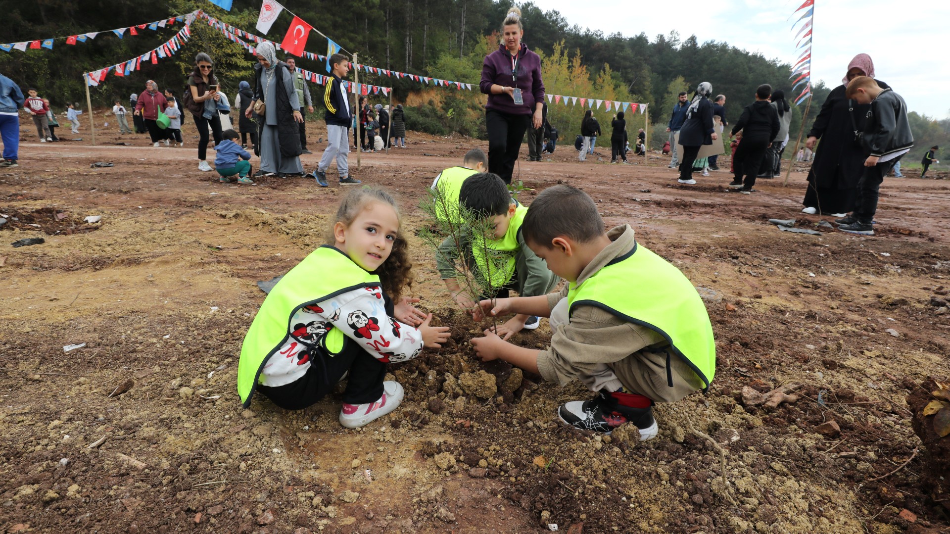 Saatler 11.11'i gösterdiğinde, Sakarya Orman Genel Müdürlüğü tarafından temin edilen 500 fidan, Menderes Bayırı Mevkii'nde toprakla buluşturuldu. Geleceğin teminatı olan minik öğrenciler büyük bir coşkuyla etkinliğe katılarak fidanlarını dikti. Öğrenciler, diktikleri fidanların üzerine kendi elleriyle "Geleceğimiz için", "Yeşil yarınlar için", "Nefes almak için" gibi anlamlı sözler ve dilekler yazarak etkinliğe anlam kattı.