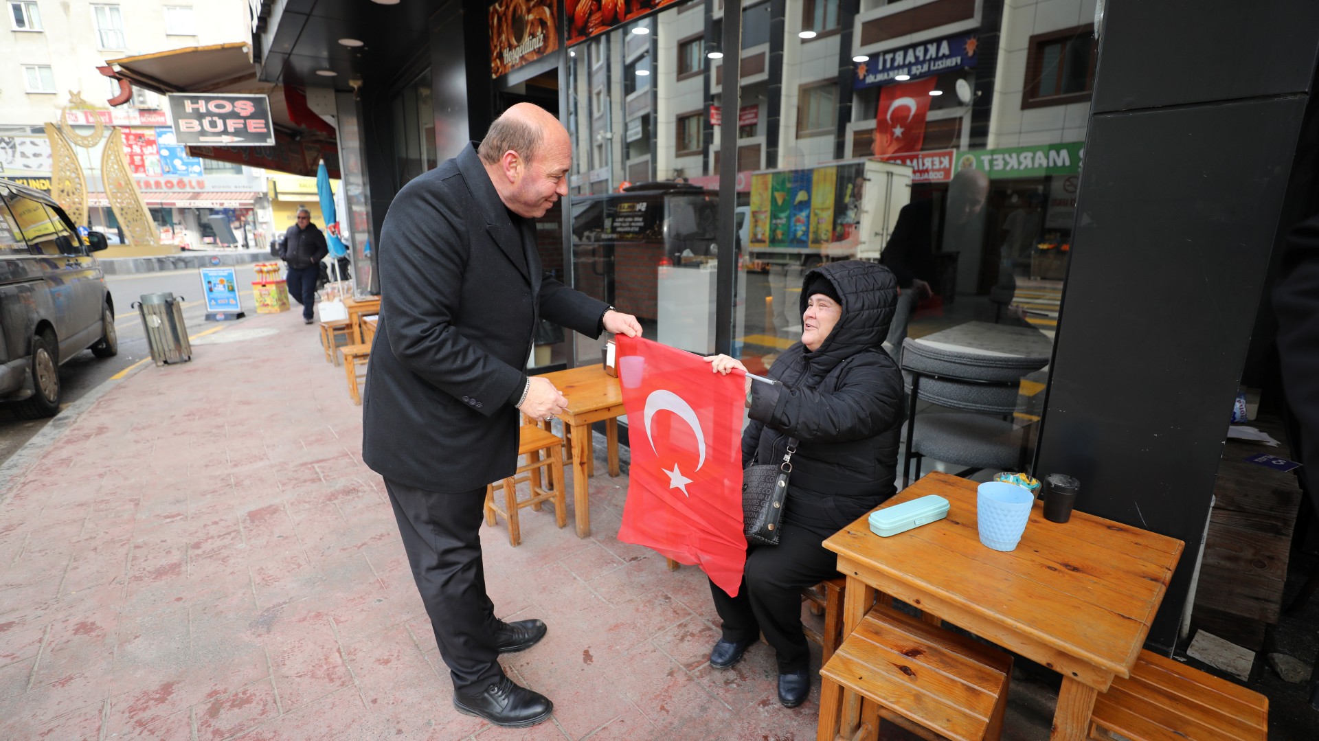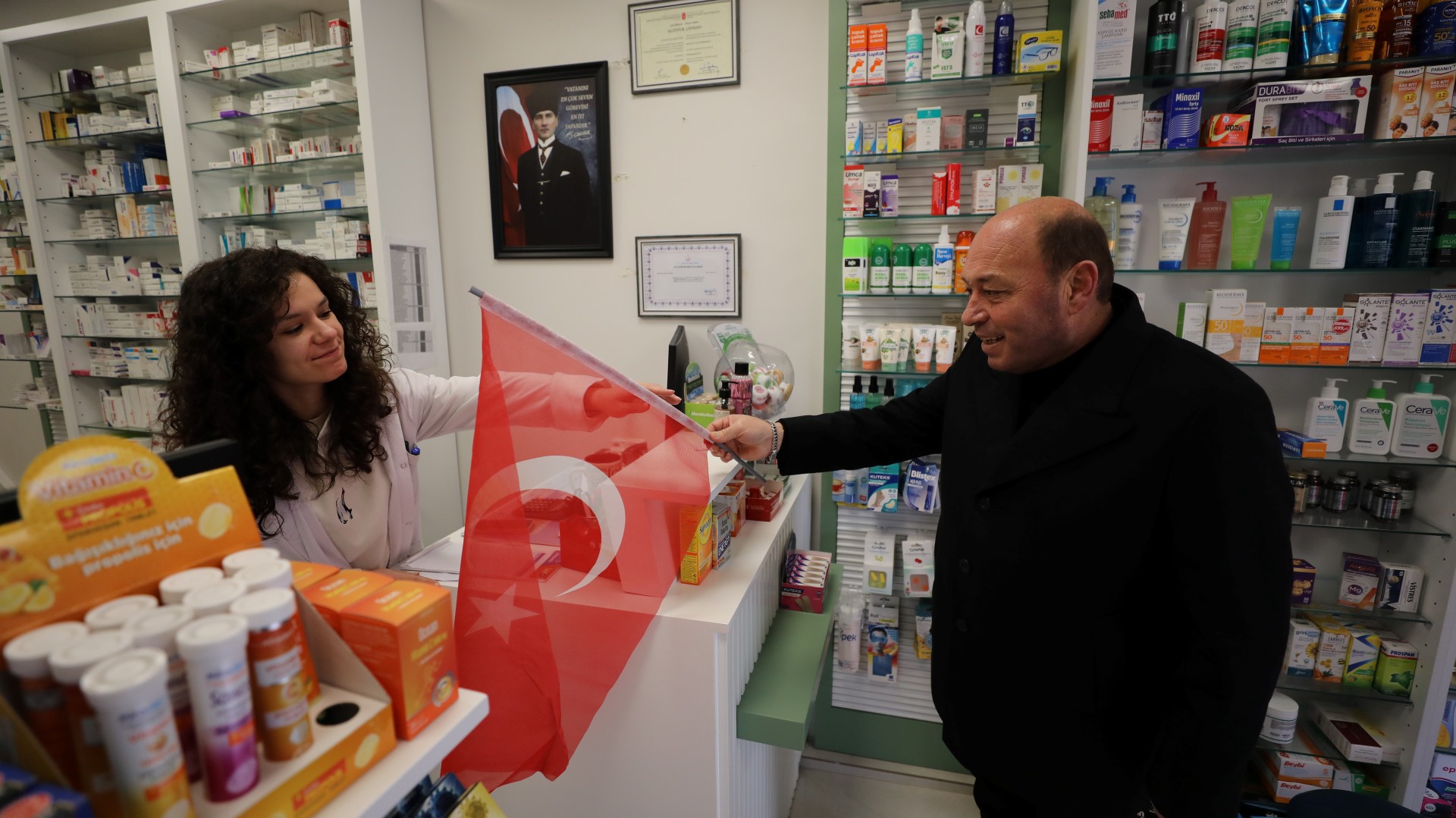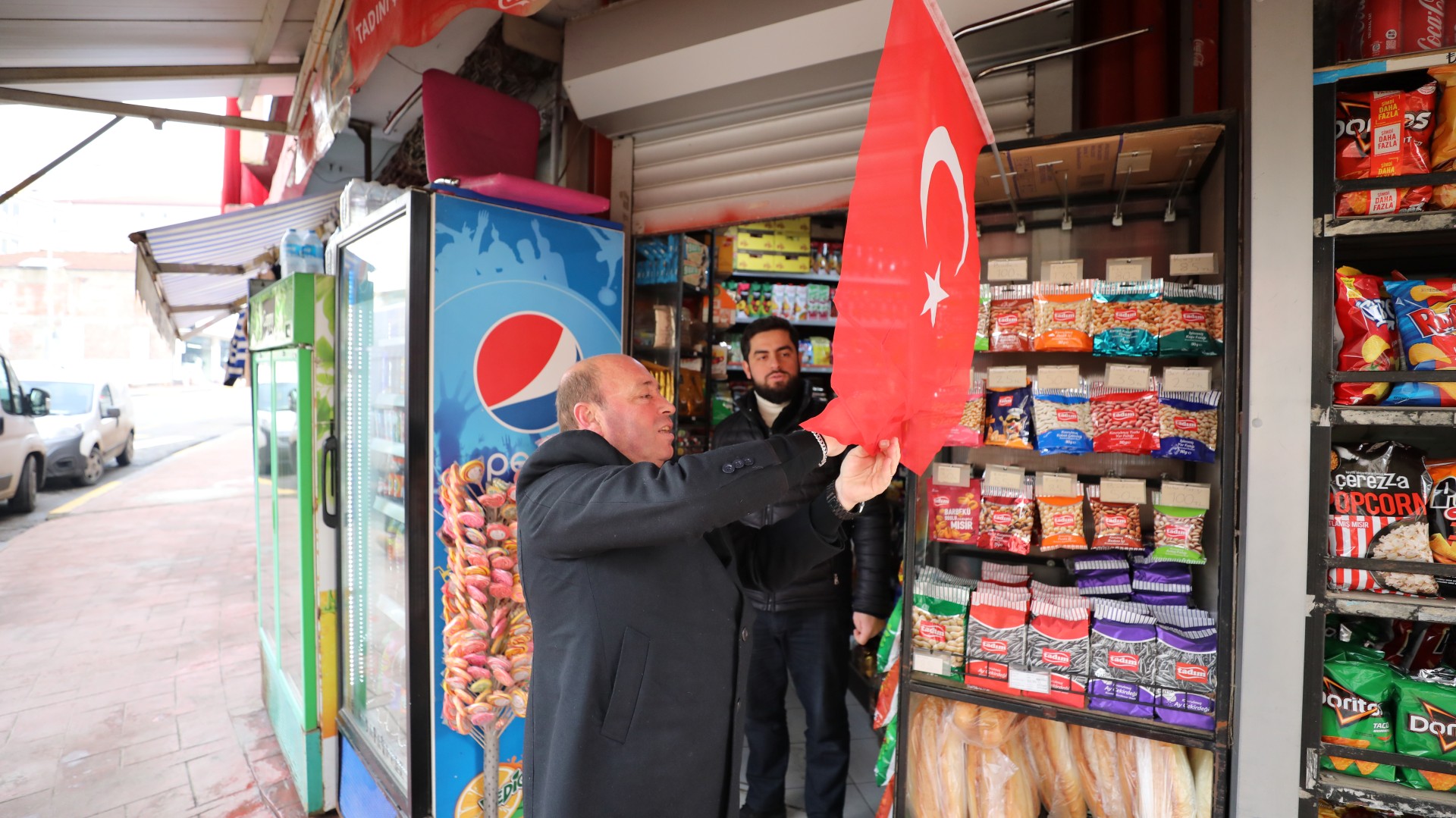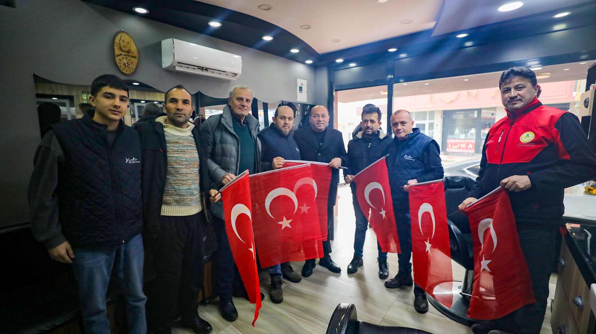 Hain saldırının hemen ardından harekete geçen Başkan Mehmet Ata, belediye ekipleriyle birlikte ilçe merkezindeki esnafı ve vatandaşları ziyaret etti. Birlik ve beraberliğin sembolü olan şanlı Türk Bayrağımızı vatandaşlara hediye eden Başkan Ata, bayrağın sadece bir bez parçası değil, milletin bağımsızlık nişanesi olduğu mesajını verdi.