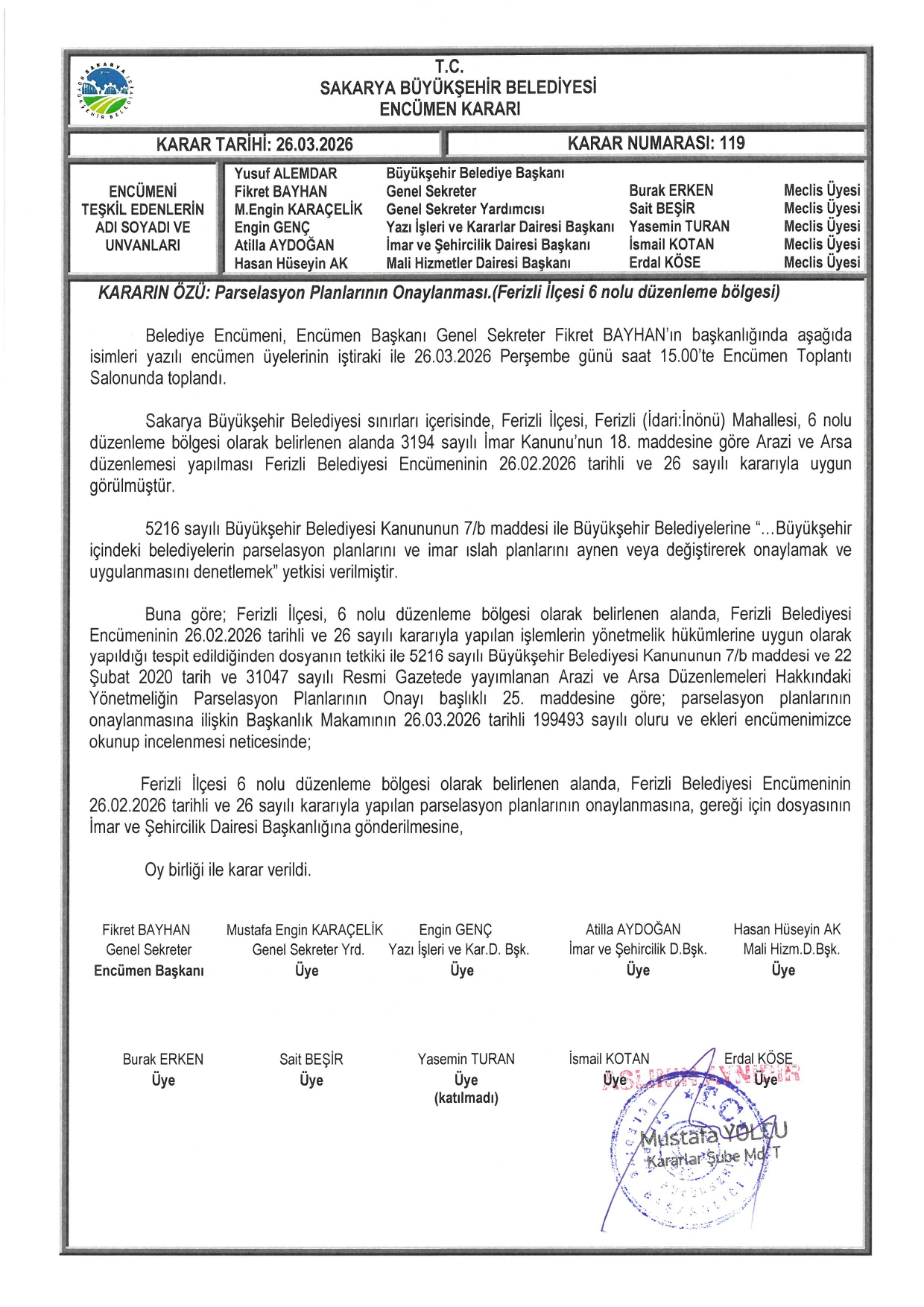 3194 sayılı İmar Kanunu’nun 18. maddesi gereğince hazırlanan 6 Numaralı Düzenleme Sahası Parselasyon Planı, Belediyemiz İmar Müdürlüğü ilan panosunda 10/04/2026 tarihi itibariyle askıya çıkarılmıştır.